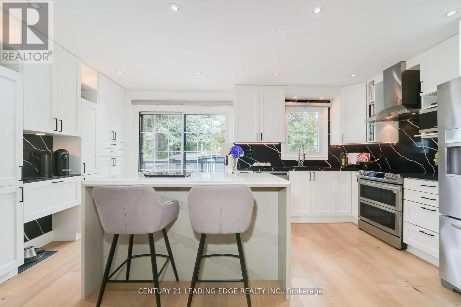 Ellesmere and McCowan Welcome to 4 Aveline where modern design meets effortless living in this fully renovated 4-level side split in desirable Bendale. Every inch of this home has been reimagined and updated for contemporary comfort and style. The open-concept main floor blends a bright living and dining space with a stunning kitchen featuring quartz countertops and backsplash, stainless steel appliances, pantry storage, and walkout onto a new composite wood deck to access the big, private backyard. The home offers four bedrooms, including a main-floor suite with its own 3-piece bath and additional walkout to the backyard-ideal for guests or multi-generational living. Matching hardwood floors, new staircases, smooth ceilings and pot lights throughout create a seamless, elevated aesthetic. The large primary bedroom features a full wall of built-in closets for plenty of storage. A fully renovated 4pc washroom w/ quartz countertops serves the upper level. The lower level adds even more versatility with a spacious rec room and built-in wet bar, plus a large laundry room with new washer and dryer. Extra crawl space means tons of room for even more storage if the extended garage with direct access from the front hall isn't enough! Outside, your private retreat awaits: a fenced backyard with deck, patio, and large heated inground pool complete with pool house(with hydro), new pergola and a separate 2-piece, 3 season washroom. The fully fenced front yard offers additional outdoor living with a patio and hot tub, all framed by a new interlock driveway. Located in the heart of Bendale, just a short walk to Scarborough Town Centre, parks, schools, and transit. Every detail is done-just move in and enjoy modern living at its best. (id:27476)