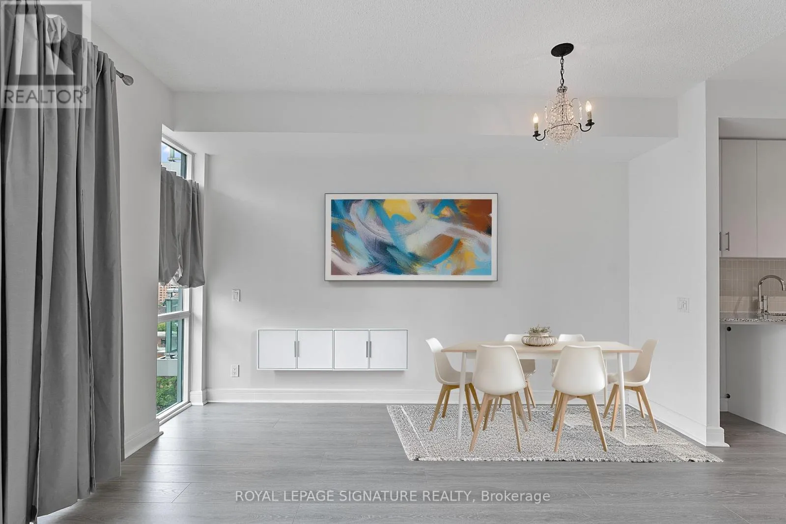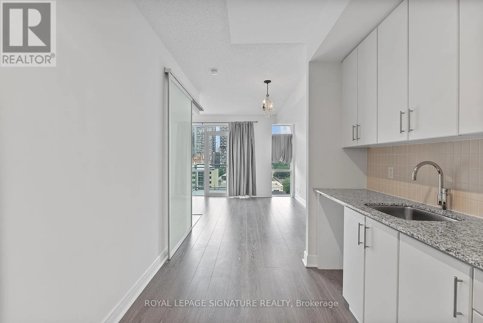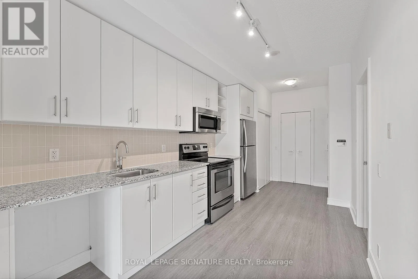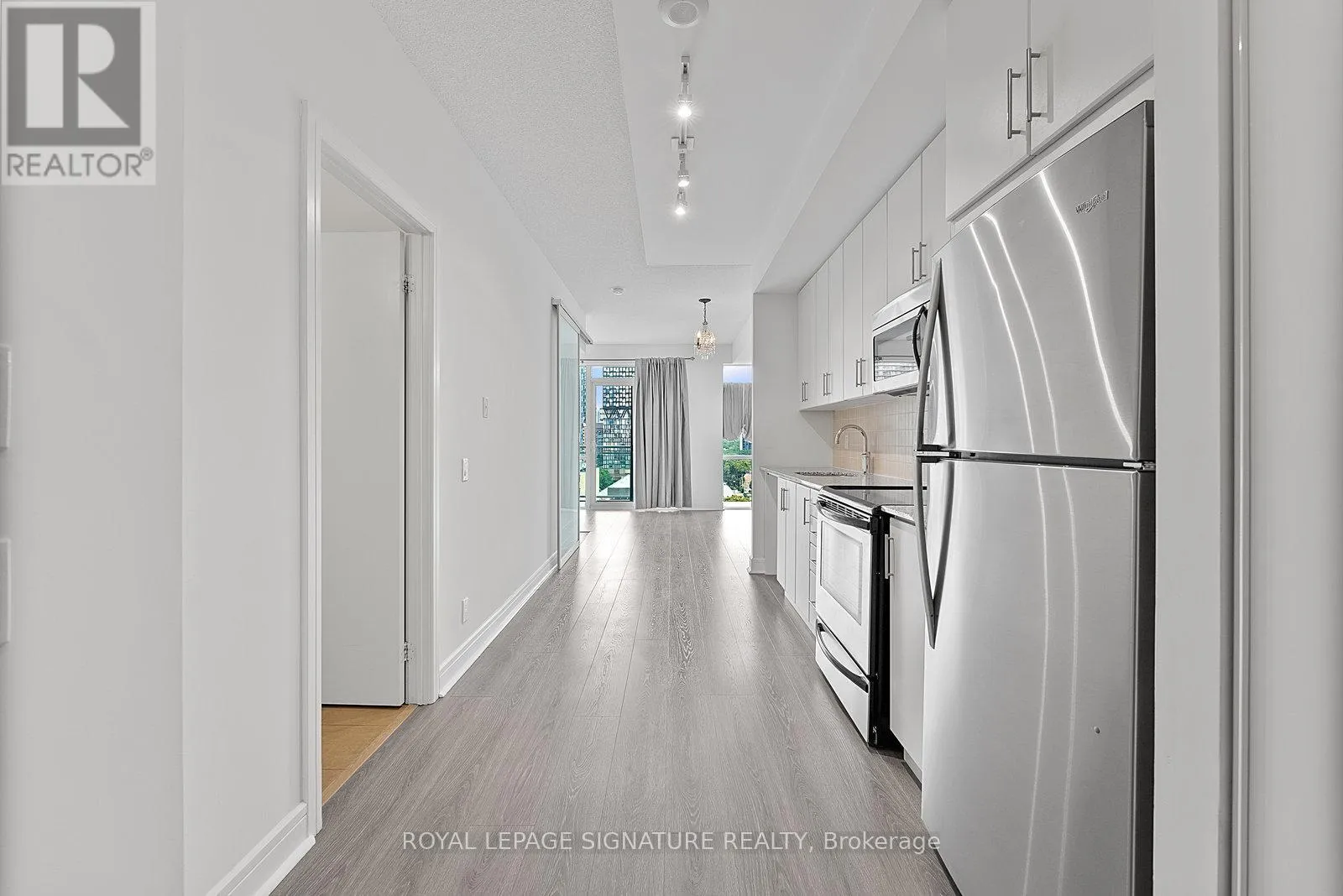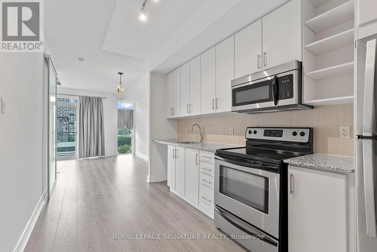 Adelaide & Jarvis Step into this sun-filled one-bedroom suite at Vu Condos, offering stylish downtown living in a well-managed and well-maintained building. Move-in ready unit features a functional floor plan with upgraded neutral-tone flooring throughout, a welcoming foyer with pantry storage, and a modern eat-in kitchen with updated stainless steel appliances and a new washer and dryer. The living room boasts large windows with views of Moss Park and includes a separate area ideal for work-from-home days. The spacious primary bedroom provides added storage and comfort, while the ensuite bath features a large vanity and mirror. Perfectly located just one block from the future Ontario Line subway station and steps to St. Lawrence Market, St. James Park, the Distillery District, Eaton Centre, the waterfront, quick access to the Gardiner Expressway. Shops, restaurants, entertainment, and community library all within walking distance. Excellent amenities including two gyms, party rooms, a rooftop terrace, and more! (id:27476)