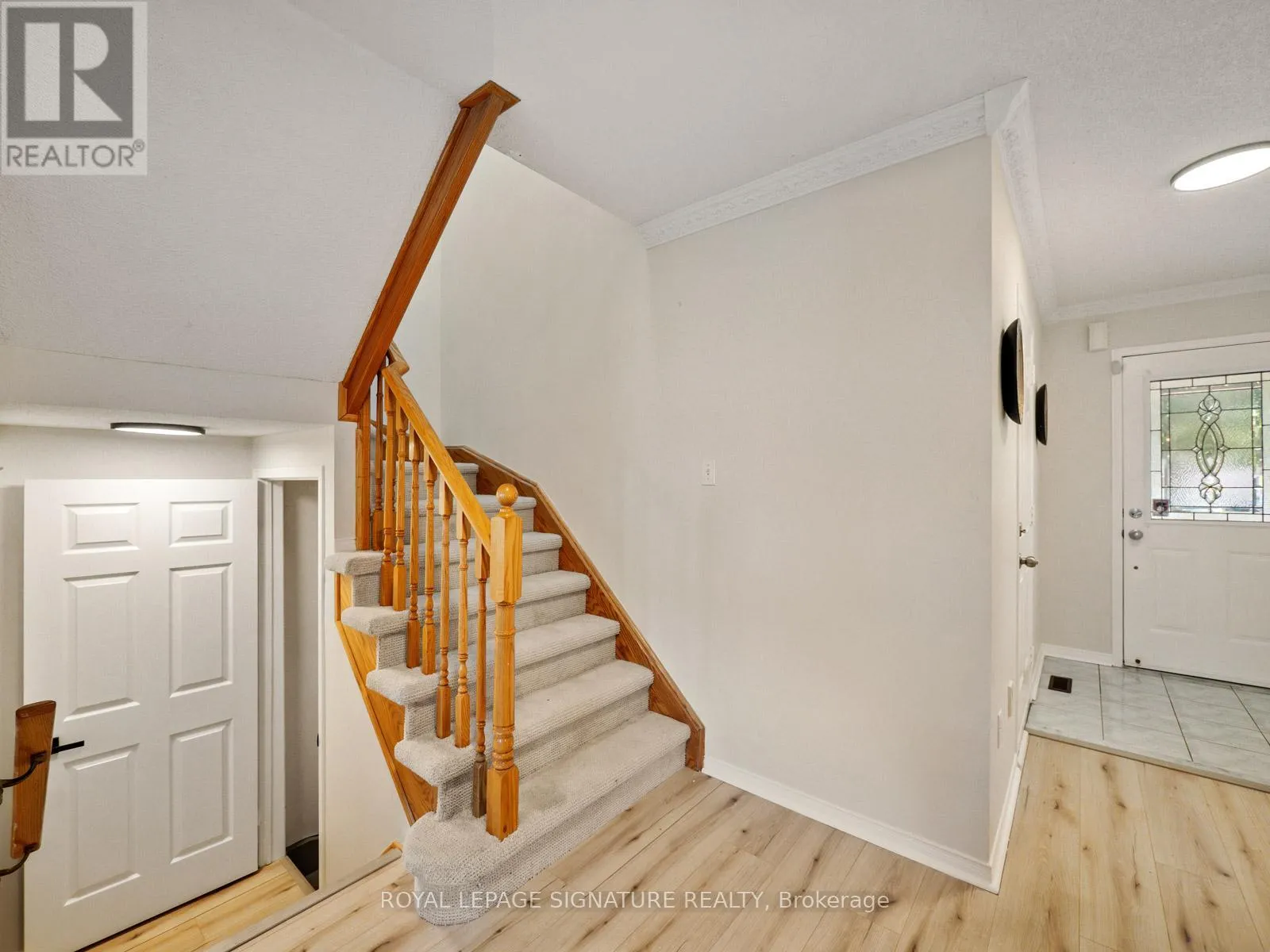 Cross Streets: Morningside Ave & 401. ** Directions: S of 401, W of Morningside. Discover exceptional value at 143 Bonspiel Dr, a detached 3 bed, 3 bath home in the highly sought-after Morningside neighborhood. Offering 1,258 sq ft of above-grade living space, this home combines functionality with charm. The bright main floor features modern laminate flooring, crown moulding, and updated light fixtures throughout. A peek-through from the kitchen to the living room adds a touch of openness, while the breakfast area leads directly to a fully fenced backyard with a west-facing orientationperfect for summer evenings. A convenient powder room completes the main floor. Upstairs, the primary suite is a private retreat with a 4 piece ensuite, while two additional bedrooms share a 4-piece bath - perfect for families. The lower level remains unfinished, offering endless potential for a recreation room, home office, or gym. With a one-car garage, two-car driveway, and a prime location close to schools, shopping, transit, and parks, this home delivers comfort, lifestyle, and investment value. (id:27476)