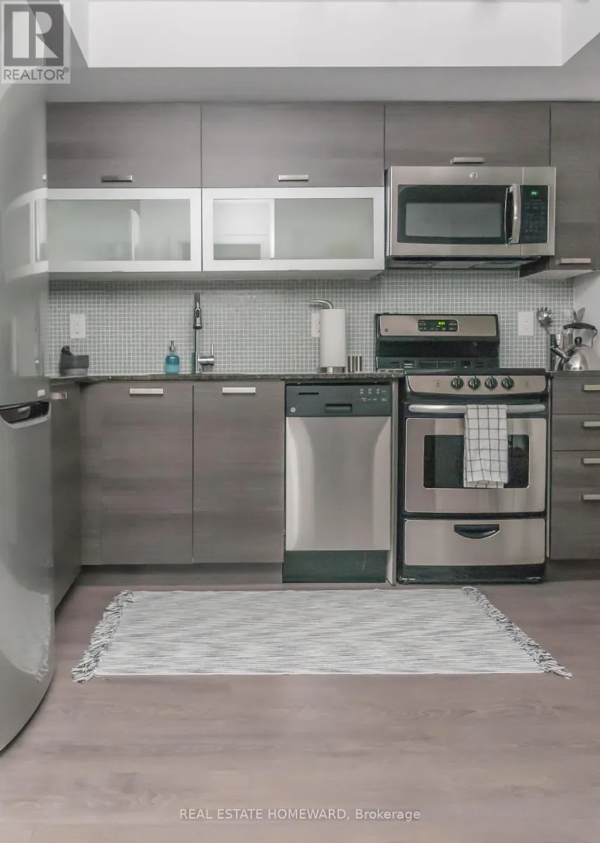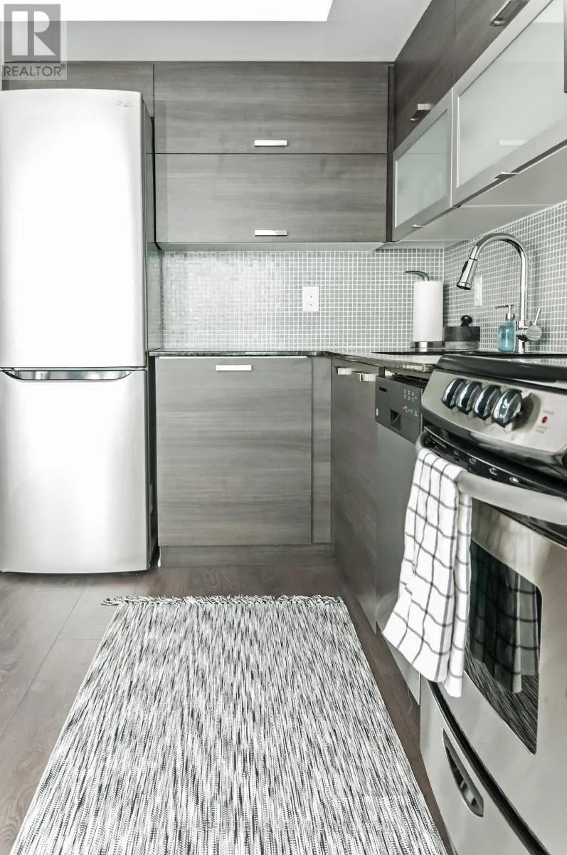Cross Streets: Queen/Dovercourt. ** Directions: Queen to Abell St. Welcome to suite 1812 at The Edge on Triangle Park, a bright and stylish 2 bedroom, 2 bathroom condo situated high on the 18th floor with west facing views in the heart of Queen West. Expanisve floor-to-ceiling windows fill the space with natural light and showcase unobstructed views and a private 30+ft balcony with amazing afternoon sun and views of Lake Ontario. The open-concept kitchen features granite countertops stainless steel appliances ad amble storage, flowing seamlessly into the living and dining area to create an inviting space for both daily living and entertaining. The functional split-bedroom layoiut offers ideal privacy, with the primary bedroom featuring it/s own 4-piece ensuite and large closetmw hile the second bedroom has direct access to the main bathroom, excellent for roommates, guests or a dedicated office set-up. In-suite laundry adds to the covenience, and a private locker provides valuable extra storage. Residents enjoy access to building amenities including concierge service, a fitness room,, and party/meeting space, all in a location surrounded by parks, transit, grocery stores, cafes, boutiques, restuarants, and the unmistakable creative energy that defines Queen West. Suite 1812 offers a turnkey lifestyle where contemporary comfort meets urban excitement, perfect for first-time buyers, investors, or anyone seekin a modern home in a truly iconic neighbourhood. (id:27476)