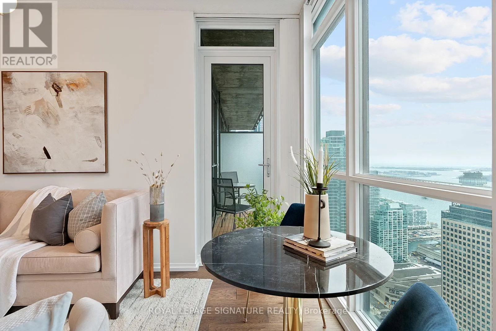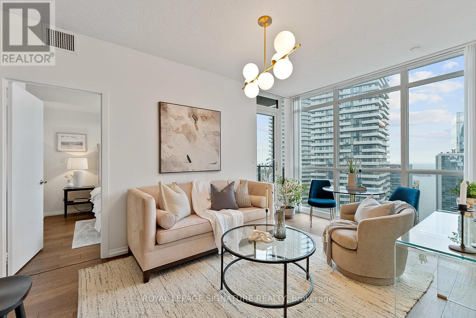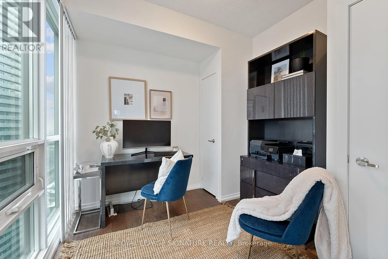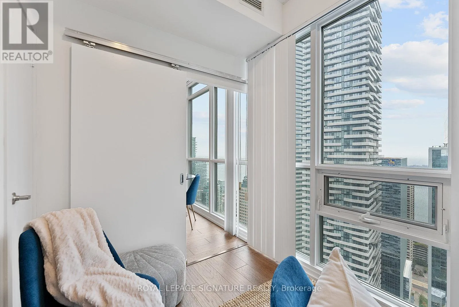 York/Bremner Welcome to suite 4301. Enter into the foyer with front hall closet space. Overlooking the modern kitchen with stainless steel appliances, generous cabinetry, and a breakfast bar overlooking the open-concept living/dining area. Floor-to-ceiling windows fill the space with natural light including a walkout to the balcony with gorgeous city views.The split-bedroom layout provides added privacy, with the primary suite featuring additional closet space and a 4pc ensuite. The second bedroom includes his-and-hers closets and a sliding door for flexibility and light. A separate den offers a versatile space for a home office or extra storage, all serviced by an additional 3pc bath. Steps to the Harbourfront, Financial District, dining, nightlife, and transit. Building amenities include two pools, a gym, theatre, party room, and 24-hour concierge. (id:27476)