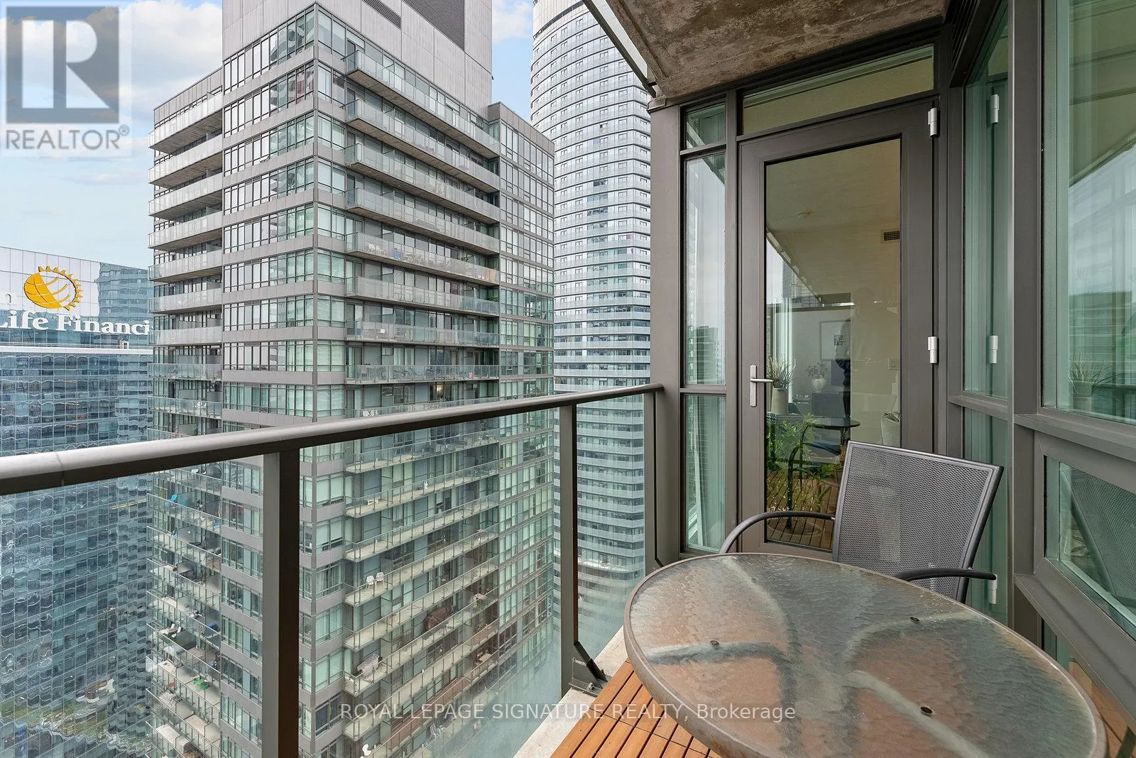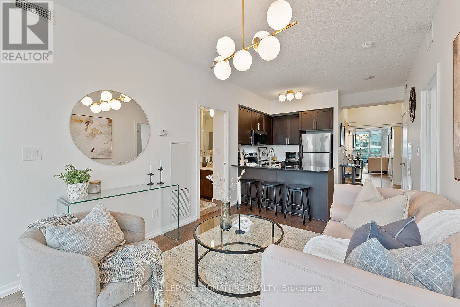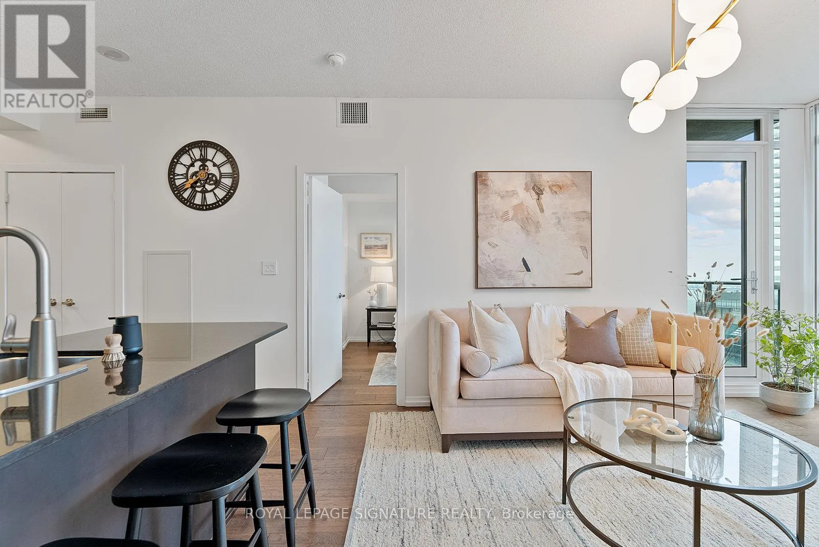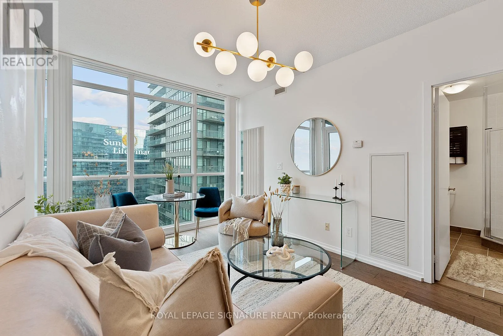 York/Bremner Welcome to suite 4301. Enter into the foyer with front hall closet space. Overlooking the modern kitchen with stainless steel appliances, generous cabinetry, and a breakfast bar overlooking the open-concept living/dining area. Floor-to-ceiling windows fill the space with natural light including a walkout to the balcony with gorgeous city views.The split-bedroom layout provides added privacy, with the primary suite featuring additional closet space and a 4pc ensuite. The second bedroom includes his-and-hers closets and a sliding door for flexibility and light. A separate den offers a versatile space for a home office or extra storage, all serviced by an additional 3pc bath. Steps to the Harbourfront, Financial District, dining, nightlife, and transit. Building amenities include two pools, a gym, theatre, party room, and 24-hour concierge. (id:27476)