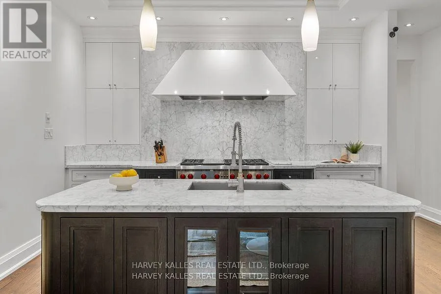 Bathurst St and Ava Rd Experience the timeless sophistication of a New York brownstone, reimagined in the heart of midtown Toronto. This bespoke builders own residence showcases hand-finished limestone architecture and over 4,200 sq. ft. of interiors defined by 11 main floor ceilings, elegant proportions, and meticulous craftsmanship. An inviting marble mosaic entry hall introduces the home, where elegant French pocket doors reveal the chefs kitchen. At its centre, bespoke cabinetry is paired with book-matched marble, a large island, and a sun-filled breakfast area. A discreet walk-through pantry offers abundant storage along with a wine fridge, bar, and display. Expansive glass doors extend the living space to a private deck and landscaped yardideal for both refined entertaining and everyday living. Elegant curves throughout, including a sweeping staircase, lend architectural drama, while solid core wood doors and a built-in Bose surround system underscore the homes quiet luxury. A dedicated space alongside the staircase also allows for the addition of a private elevator. Upstairs, with soaring 10 ceilings, the oversized primary suite is a sanctuary complete with an expansive dressing room and dual spa-inspired ensuites joined by a dramatic walk-through shower. Two additional bedroomseach with its own ensuitecomplete this level, including one with a private study ideal for a home office, reading nook, or serene retreat. The versatile lower level features a bright recreation room/gym, guest bedroom, full bath, laundry, and direct access to the double garage. This home delivers a rare blend of convenience and sophistication. Perfectly positioned close to synagogues as well as Torontos elite public and private schools, this residence offers both lifestyle and locationjust moments from downtown. A residence of rare distinction for those who value timeless design, craftsmanship, and modern comfort. (id:27476)