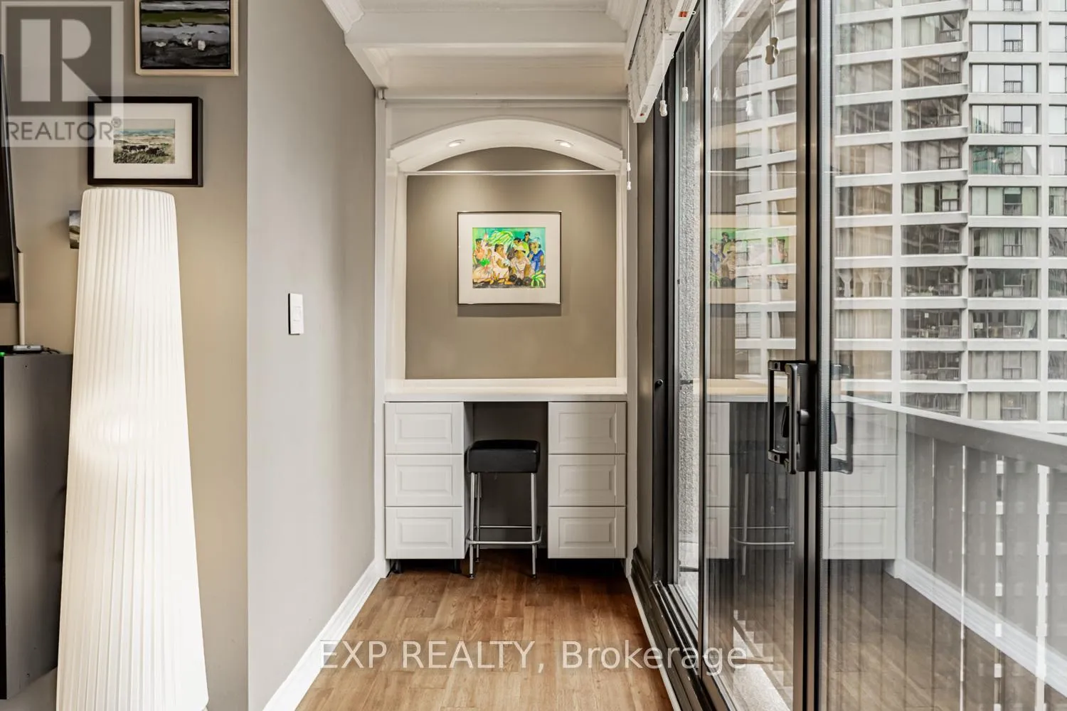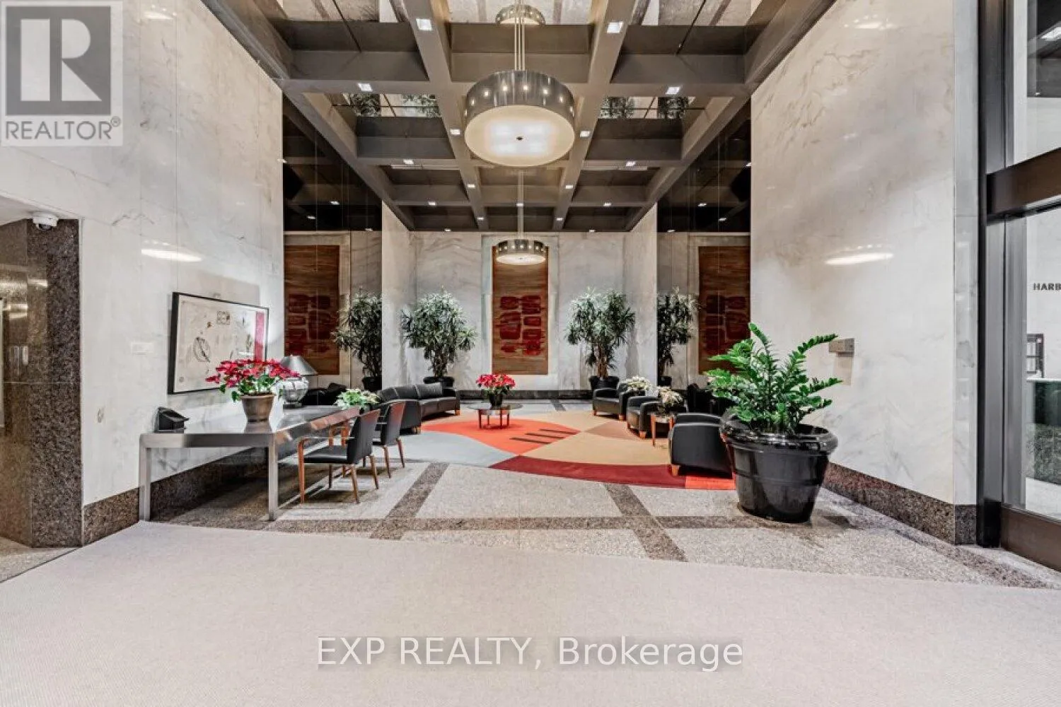 Bay St & Queens Quay W Live the waterfront lifestyle you've been dreaming of. This stunning One bedroom + den suite combines effortless downtown living with resort style amenities and unbeatable access to Toronto's Harbourfront. Rare 16ft floor to ceiling sliding glass door spans the width of the living space, flooding the unit with natural light and showcasing beautiful city skyline views. The open-concept layout features hardwood flooring throughout, a modern kitchen with stainless steel appliances, an eat-in breakfast bar, and a comfortable living area perfect for relaxing or entertaining. The den offers flexibility as a dedicated work from home space or guest area. Residents enjoy access to an impressive array of amenities that elevate the lifestyle experience, including a saltwater indoor pool, full fitness centre, squash courts, billiards room, kids playroom, party/meeting rooms, landscaped outdoor terrace and garden with BBQ stations, along with 24/7 concierge, on-site security, workshop access, Car wash station, guest suites & visitor parking. Maintenance fees include a private shuttle service, offering convenient transportation throughout the downtown core, a unique perk rarely found in Toronto condos. The location is unmatched: directly on the waterfront boardwalk, with immediate access to trails, parks, Harbourfront Centre, restaurants, cafés, marinas, and the ferry to Toronto Island. Steps to the PATH, LRT, Billy Bishop Airport, and other daily conveniences. Walk to Union Station, Bay Street, Scotiabank Arena, Rogers Centre, and everything downtown Toronto has to offer. Whether you're a professional seeking the perfect urban home, a downsizer looking for simplicity, an investor pursuing a high-demand property, or someone seeking a stylish pied-à -terre for effortless city living, this suite checks all the boxes. Stylish, bright, move in ready, with the lifestyle to match. Enjoy the convenience of in suite laundry, parking & a locker, making this unit completely turnkey. (id:27476)