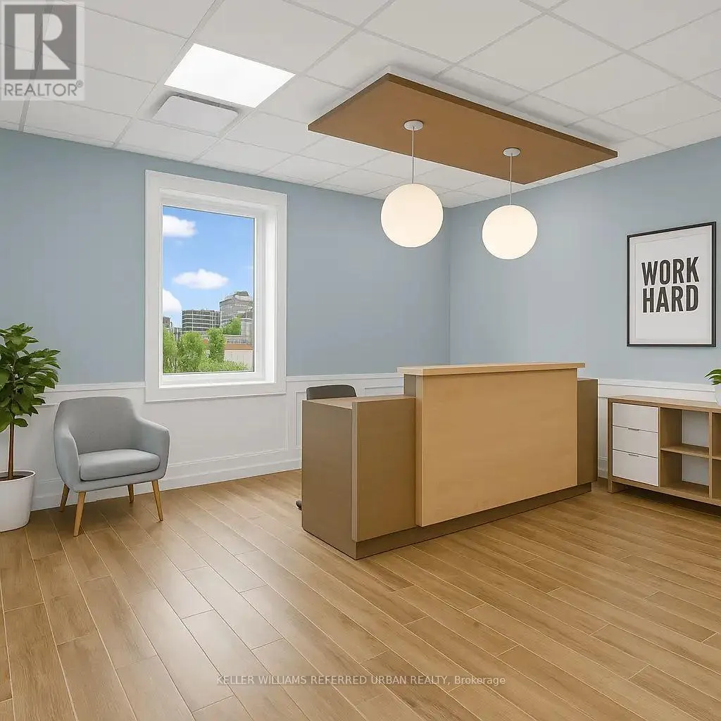 Queen st E and River St Calling all Medical, Dental, Health and Beauty, and all other Professionals. This place was specifically built out for your business. Plug and Play. Modern-style office space with brand-new laminate floors, all built-in high-end furniture, and multiple windows to make the space feel very bright and airy. This suite occupies the entire 2ndfloor, with all plumbing roughed-in in every room, featuring a beautiful, inviting front desk and waiting room area with 2 washrooms, 3 medical working rooms, a private office, and a partially enclosed area built out for sterilization or it can be turned into a kitchenette. Private entrance on the Queen St E side, with an impressive staircase that leads you to the 2nd floor. Freestanding corner building with excellent signage potential on the second floor. 1 free parking spot can be included in the rent at the back of the building. Plenty of short-term paid parking on the street or paid parking nearby for the day. Strategically located near the DVP & Gardiner Expressway.Most of the hard work has been done for you; come and experience how seamlessly your business can thrive in this beautiful, modern space that is a pleasure to work in. Perfect place for the following professionals: Dentists,Hygienists, Periodontists, Orthodontists, Oral Surgeons, RMT Massage Therapists, Social Workers, Architects, Medical Imaging, Cardiologists, Aesthetics and Injections, Cosmetic Surgery and Botox, Fertility Clinics, Dental Hygiene,X-ray and Ultrasound Clinics, Chiropractors, Physiotherapists, Osteopaths, Accountants, Law Offices , Vet Clinic and many more. TMI is $14.89 per sq ft forecasted for 2025. (id:27476)