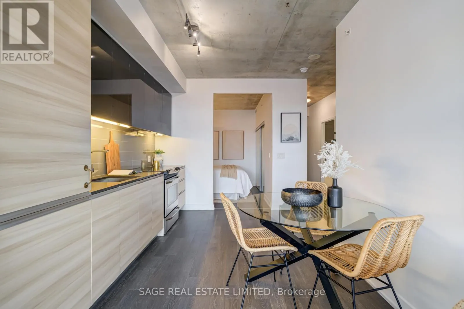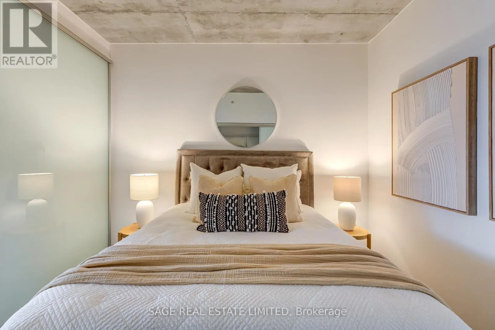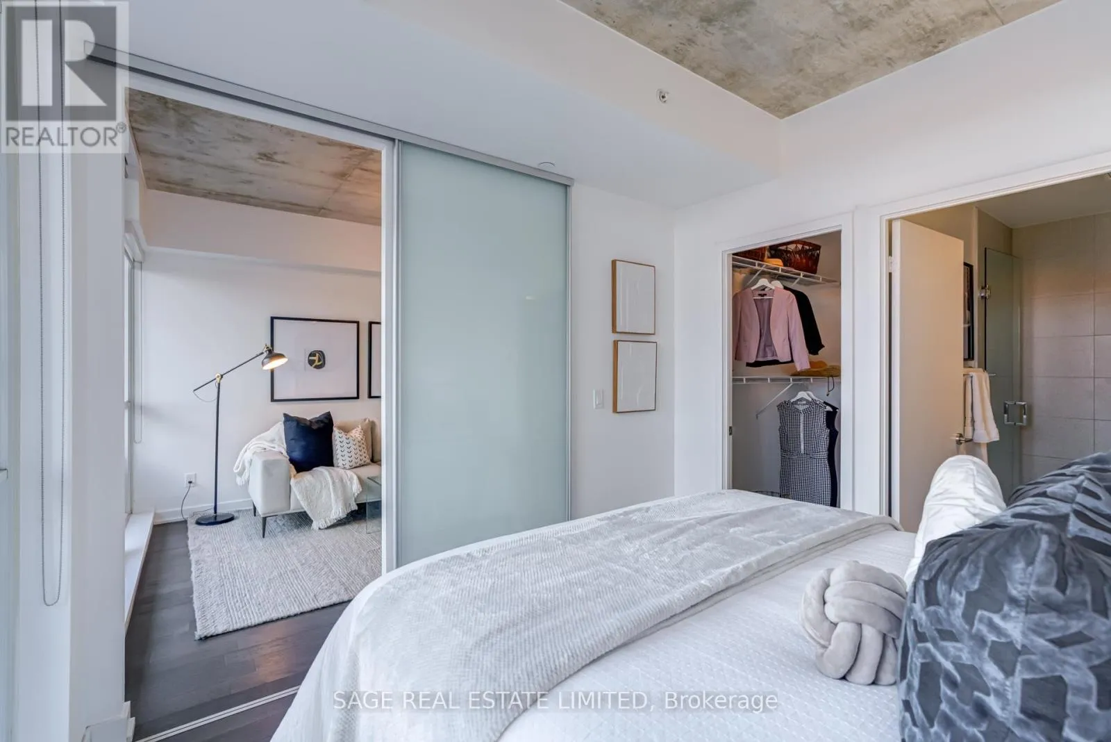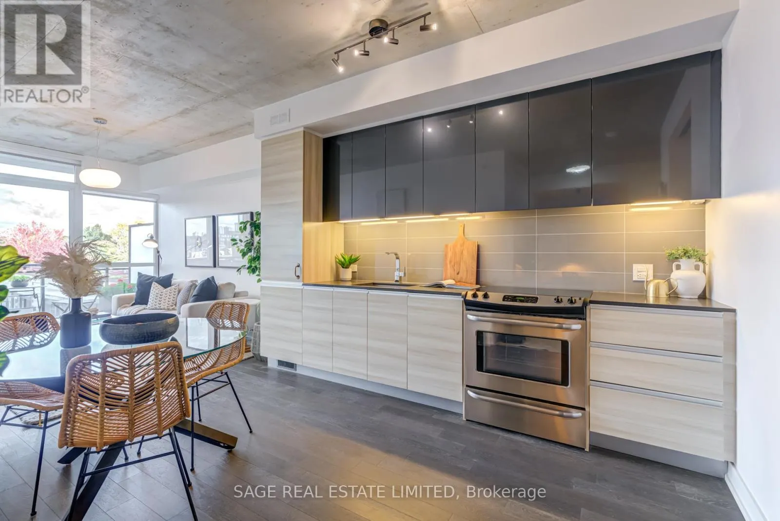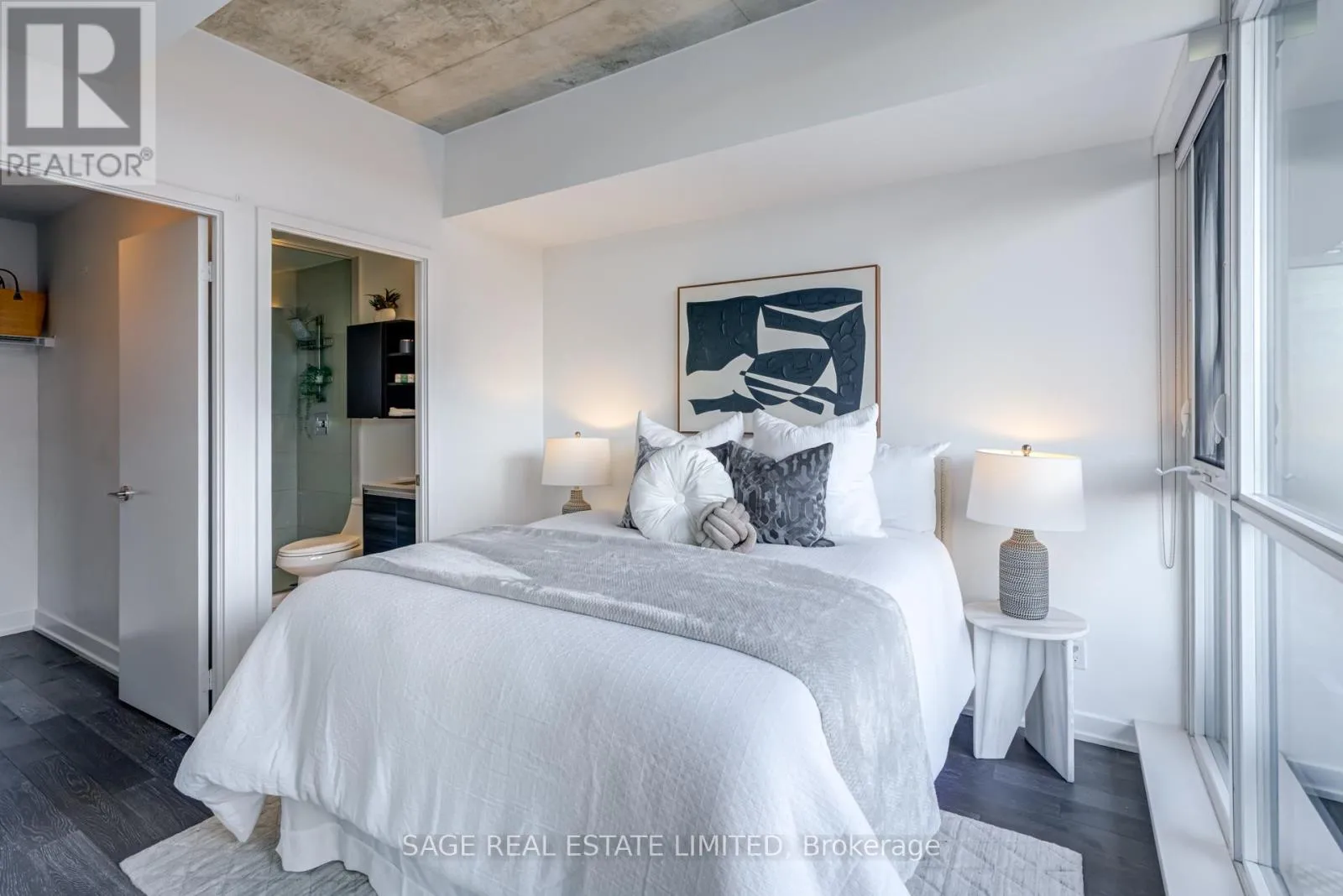 Cross Streets: Carlaw Ave & Dundas St E. ** Directions: East. Bright, airy, and impeccably designed. This loft at The Carlaw offers two generous bedrooms, two full bathrooms, and a den that can serve as a dedicated home office or flex space. It's perfectly suited for modern living with 9-foot exposed concrete ceilings, floor-to-ceiling windows, and a north-facing balcony with a gas hookup. The open-concept layout is ideal for both entertaining and daily comfort. The upgraded kitchen features quartz countertops, extended cabinetry, and full-size stainless steel appliances, all finished in a contemporary palette. Hardwood flooring flows seamlessly throughout the space. The locker is conveniently located on the same floor as the unit. Building amenities include a rooftop terrace with a picture-perfect City Skyline View, a fully equipped gym, a party room, and a 24-hour concierge. This loft offers a rare blend of effortless living in the East End, with Crows Theatre and the newly opened Piano Piano just downstairs. The best of Leslieville's shops, cafes, parks, and transit are within steps. Don't miss out on this incredible opportunity. Welcome home. (id:27476)
