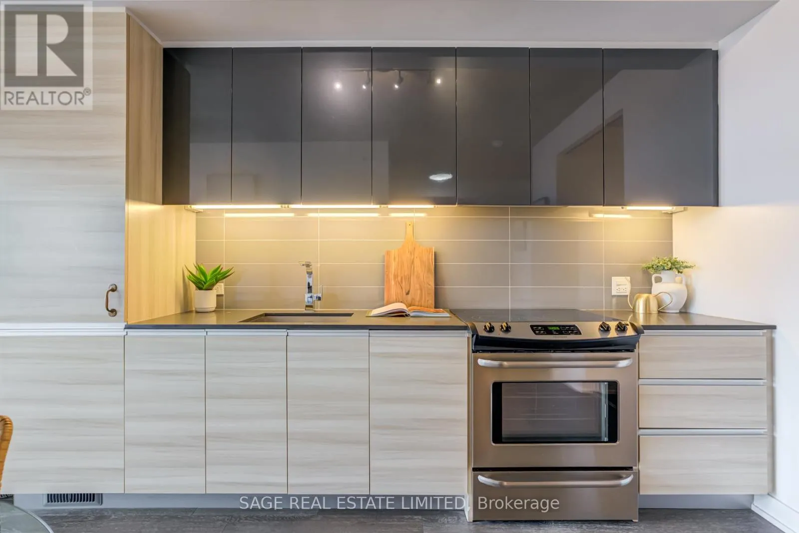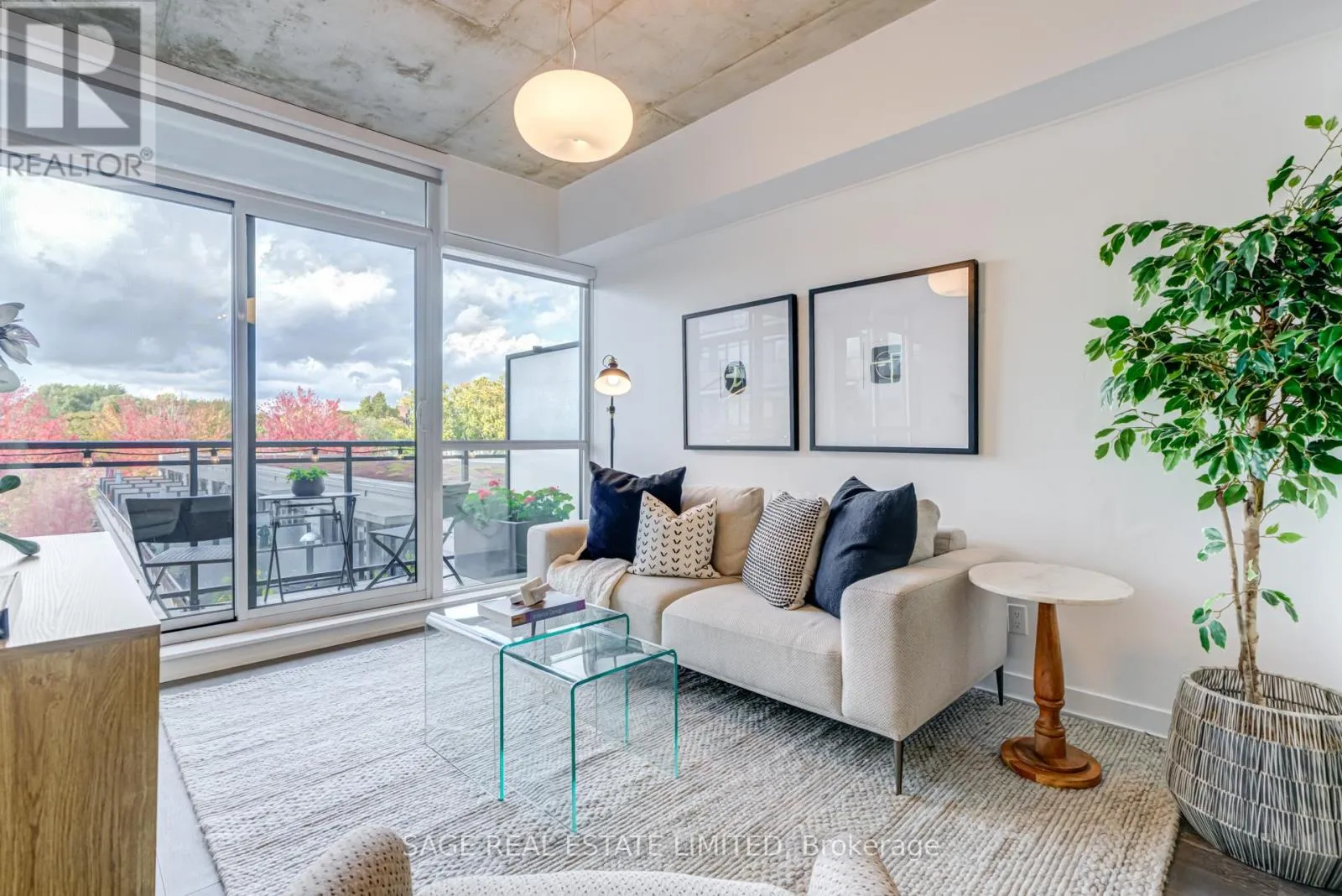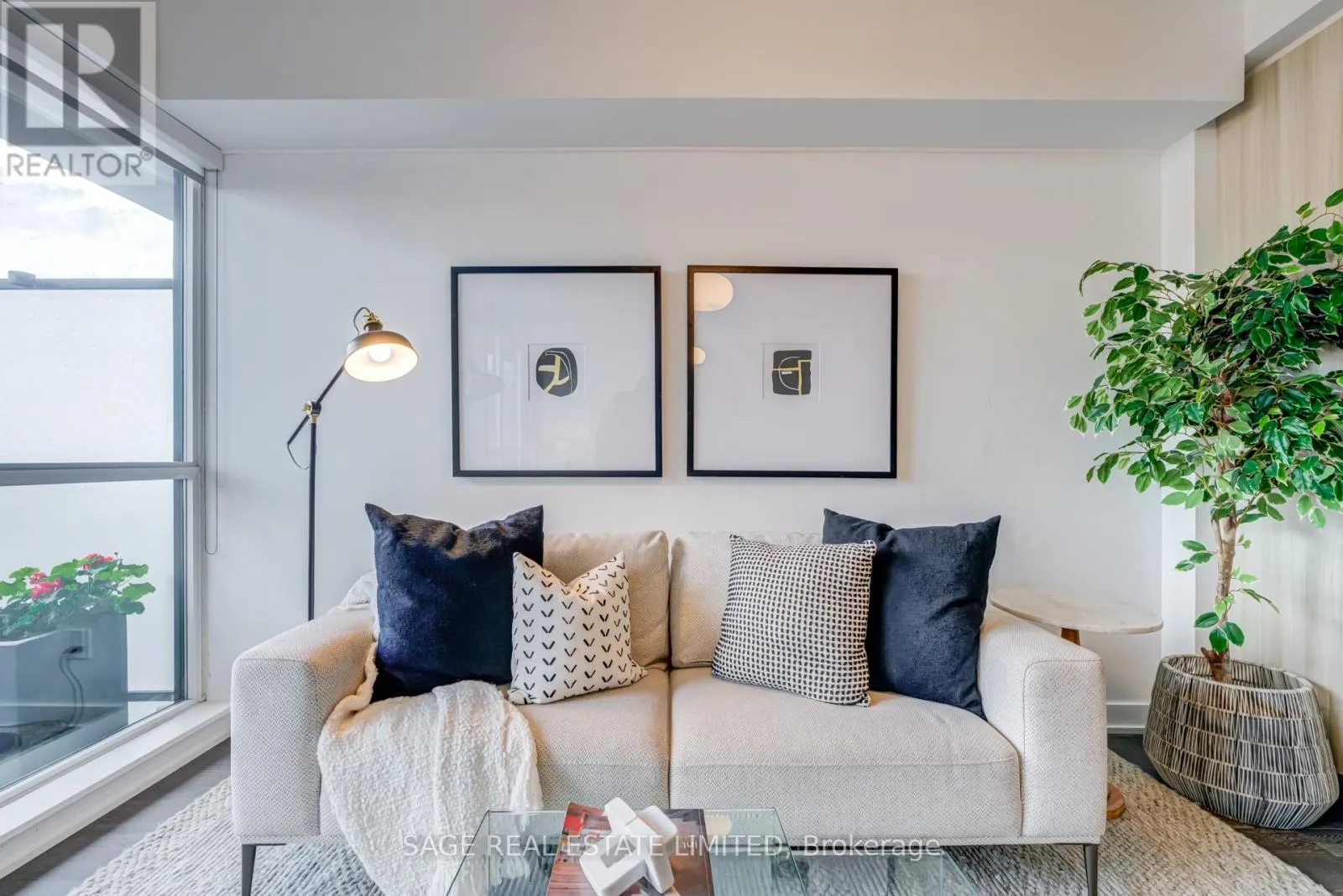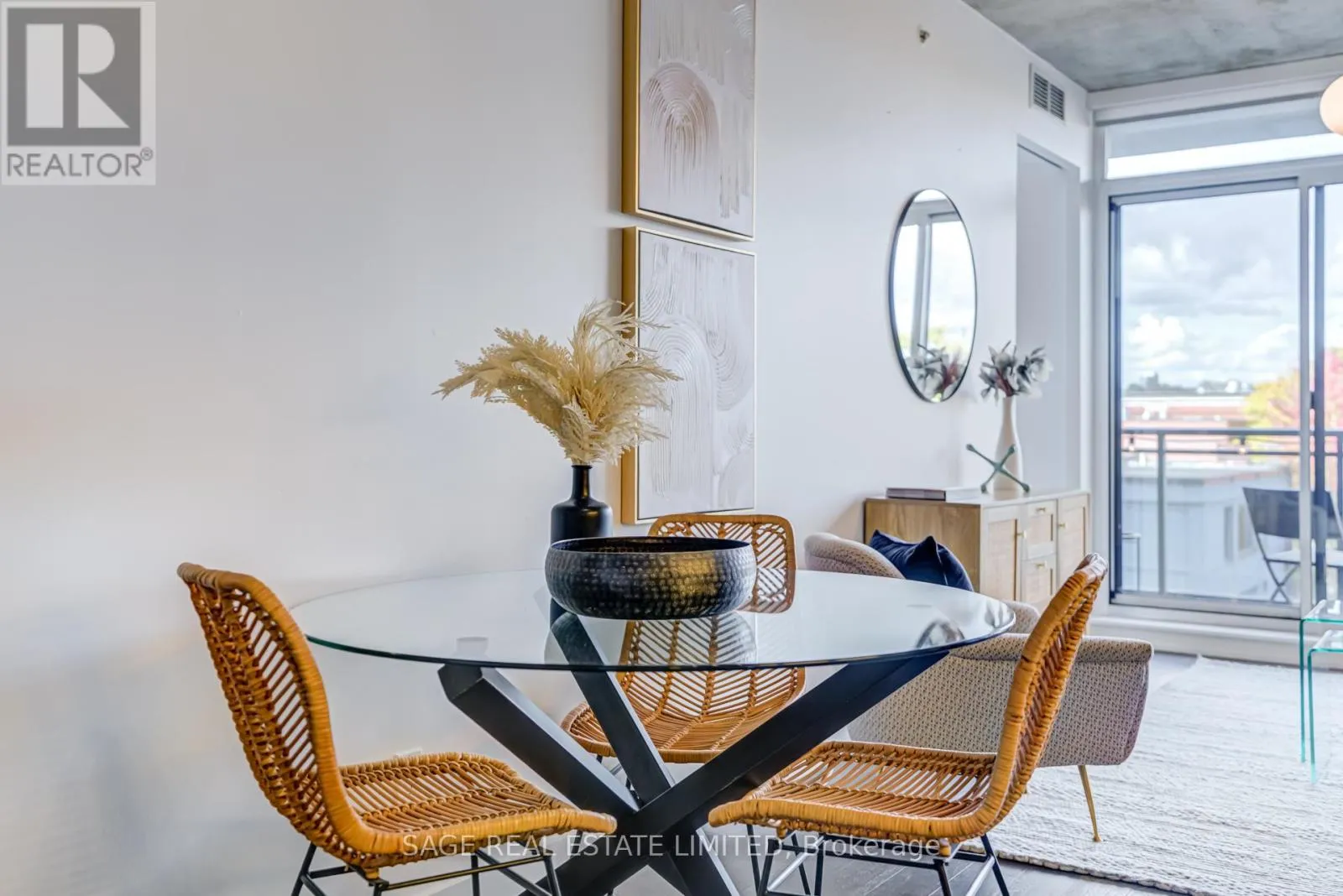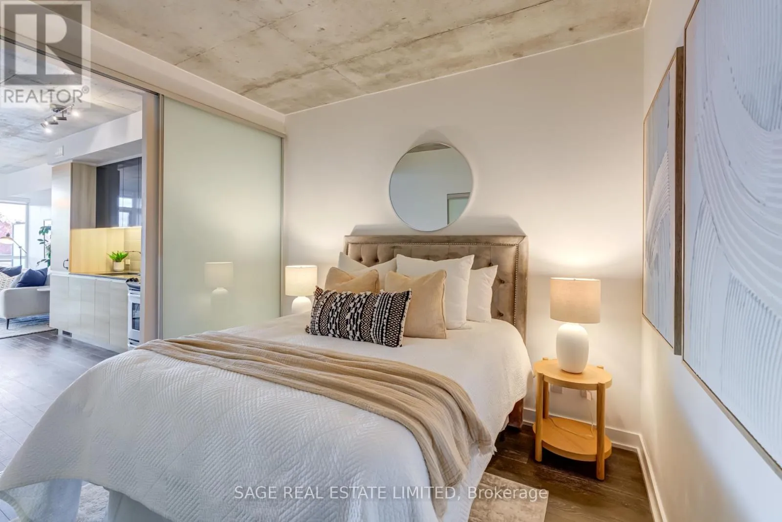 Cross Streets: Carlaw Ave & Dundas St E. ** Directions: East. Bright, airy, and impeccably designed. This loft at The Carlaw offers two generous bedrooms, two full bathrooms, and a den that can serve as a dedicated home office or flex space. It's perfectly suited for modern living with 9-foot exposed concrete ceilings, floor-to-ceiling windows, and a north-facing balcony with a gas hookup. The open-concept layout is ideal for both entertaining and daily comfort. The upgraded kitchen features quartz countertops, extended cabinetry, and full-size stainless steel appliances, all finished in a contemporary palette. Hardwood flooring flows seamlessly throughout the space. The locker is conveniently located on the same floor as the unit. Building amenities include a rooftop terrace with a picture-perfect City Skyline View, a fully equipped gym, a party room, and a 24-hour concierge. This loft offers a rare blend of effortless living in the East End, with Crows Theatre and the newly opened Piano Piano just downstairs. The best of Leslieville's shops, cafes, parks, and transit are within steps. Don't miss out on this incredible opportunity. Welcome home. (id:27476)