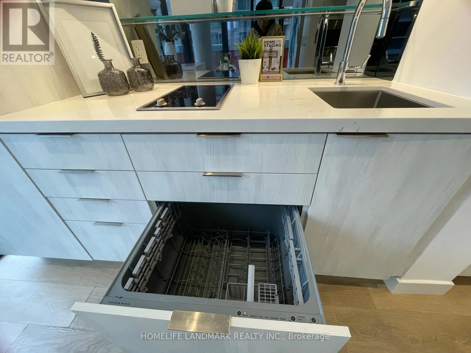 Cross Streets: Queen / University. ** Directions: West of University on Queen. Practical Junior One Bedroom in Prime Queen West,Rarely available layout with Parking and bright southwest exposure,9-foot ceilings and floor-to-ceiling windows - warm and full of sunlight.Functional and efficient design with plenty of built-in storage and built-in appliances.The building offers excellent amenities including a gym, party room, and guest suites.Fresh Painting. Perfect for self-use or investment.Right next to the new Ontario Line - Osgoode Station.Located in the heart of Toronto's vibrant Queen West, one of the city's most famous entertainment and lifestyle districts.Convenient transit access and a dynamic neighbourhood at your doorstep. (id:27476)