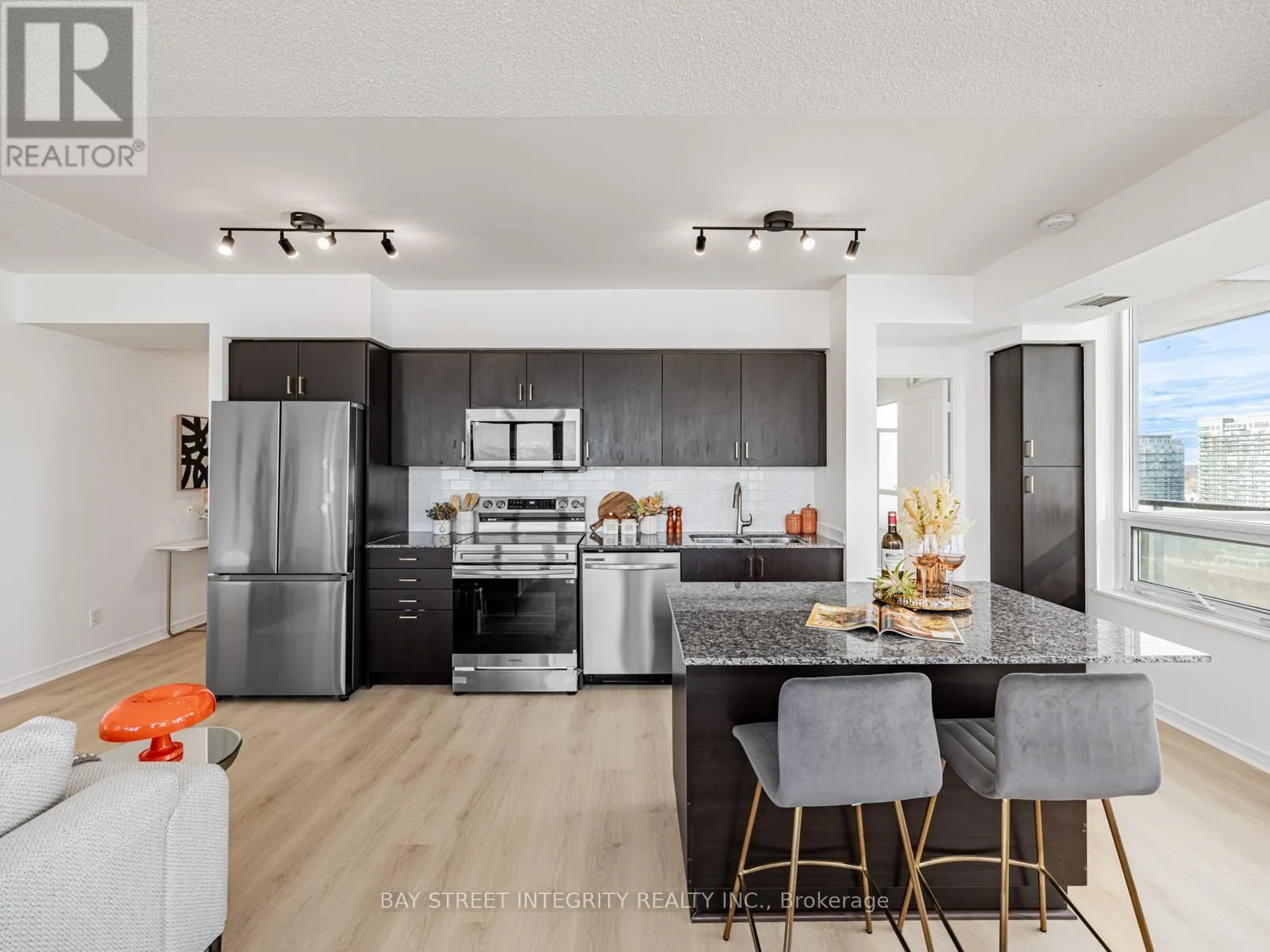 Lakeshore & Parklawn EVERYTHING NEW! EXTENSIVELY UPGRADED with all-new appliances, brand-new flooring, fresh paint, and modern lighting throughout, this ~1,000 sq ft southeast-facing corner condo at 2230 Lakeshore Blvd W delivers a truly elevated living experience. Perched high above the city, it offers sweeping, unobstructed views of Lake Ontario and the Toronto skyline, complemented by an open, sun-filled layout.Enjoy first-class amenities and exceptional building management, including an indoor pool, hot tub and sauna, two fully equipped fitness centres, a rooftop terrace with BBQs, guest suites, and 24-hour concierge service.Perfectly situated in vibrant Humber Bay Shores, you're steps from waterfront trails, parks, cafés, restaurants, and shops, with easy access to the Mimico GO Station, TTC, Gardiner Expressway, and downtown Toronto. (id:27476)