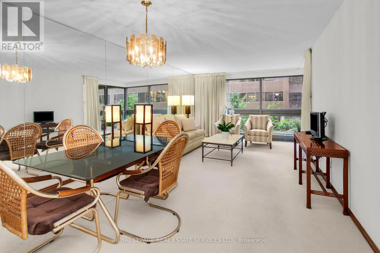 Yonge / St Clair Ave W Granite Place...A unique chance to be at Granite Place (Four Seasons Built)!! This luxurious address off of St Clair Avenue West is nestled amongst the lush gardens and mature foilage, access is from St Clair Avenue West through the driveway engulfed with mature trees, a magnificent setting. This one bedroom suite boasts approx 816 sf, floor to ceiling windows over looking the lush recently upgraded gardens. The suite features an updated kitchen with stainless steel appliances and an expansive wide entrance foyer with abundance of storage closets, and a balcony with walk-outs from the combined living room/dining room and primary bedroom. Granite Place offers 24/7 concierge services, saltwater pool, whirl pool, sauna, exercise room, party room. (id:27476)