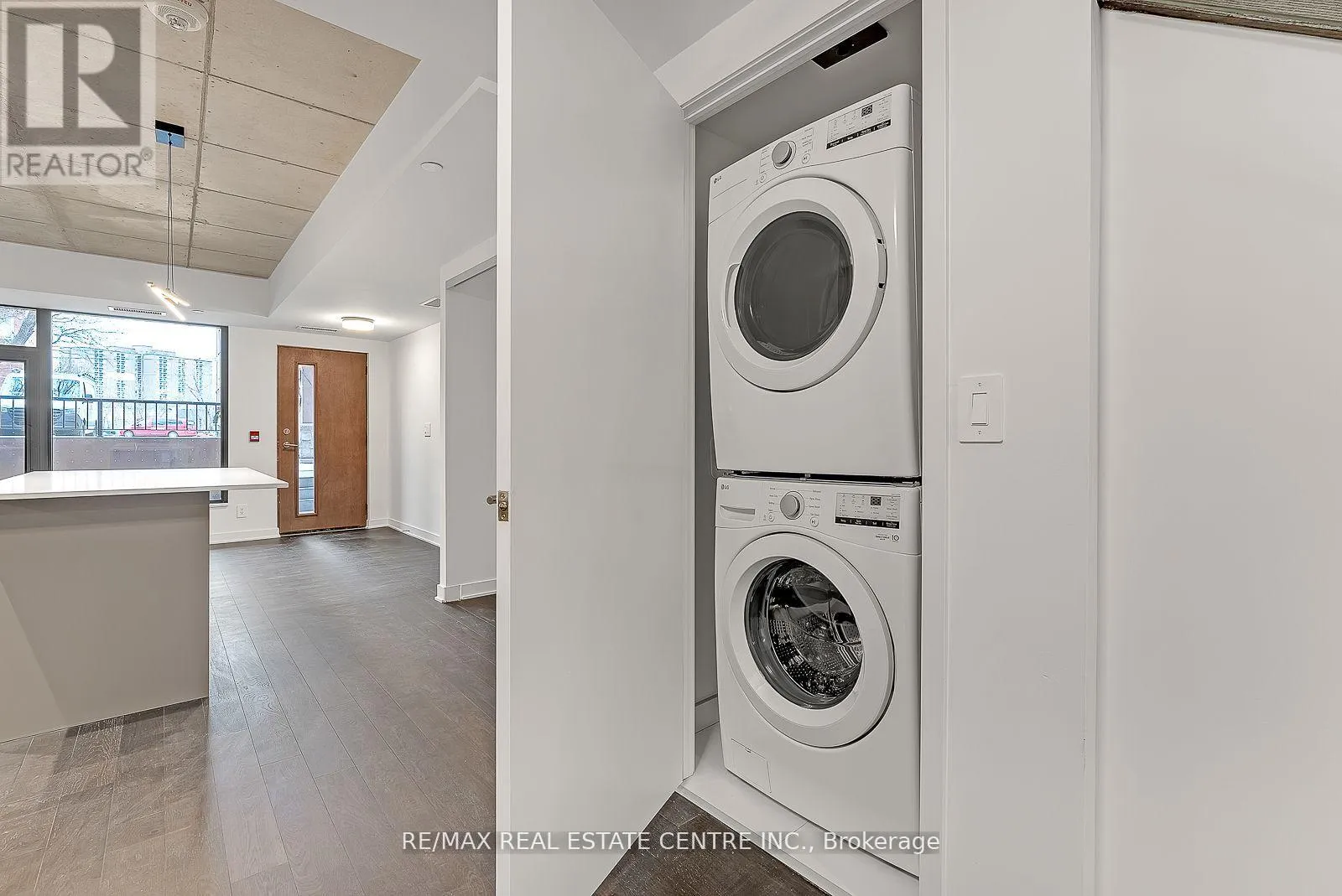 Dundas St W/ Dupon St Welcome to this modern 2-storey townhouse-style condo in the heart of Toronto's vibrant Junction area! Offering approximately 1,100 sq. ft. of stylish living space, this bright and spacious home features 2 bedrooms plus a den - ideal for a home office or guest room. Enjoy a contemporary open-concept layout, a sleek kitchen with stainless steel appliances, and a large terrace perfect for outdoor relaxation. Two full washrooms, ensuite laundry, and an owned locker add convenience. Located steps from Dundas West & Dupont, with easy access to TTC, schools, parks, shops, and trendy cafés. Building amenities include a gym, party room, and visitor parking. Perfect for professionals or a small family seeking urban comfort and convenience. (id:27476)