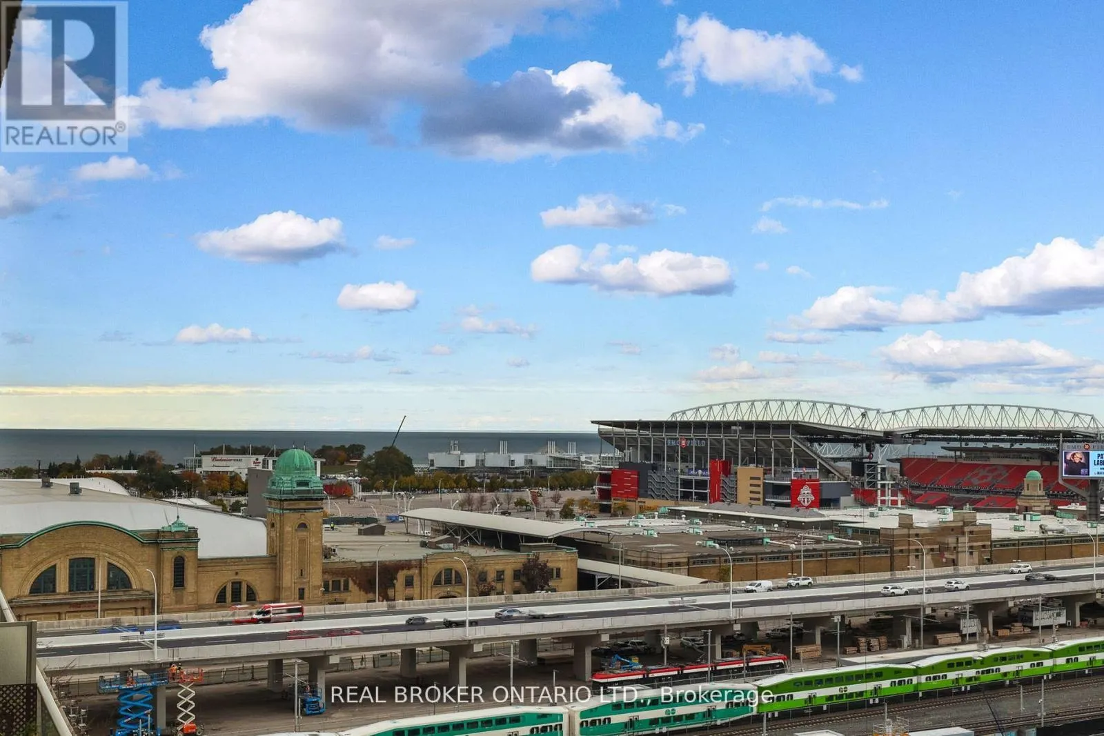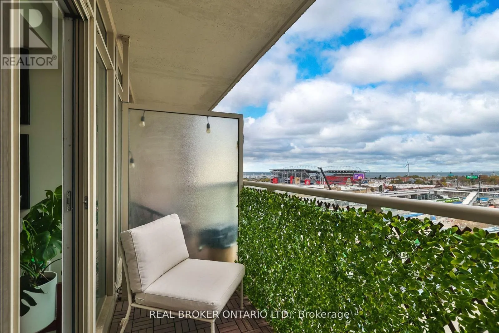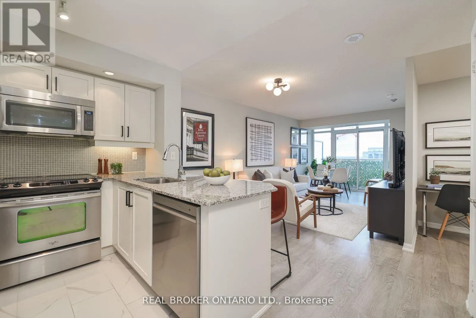 King St W and Strachan Ave This beautifully maintained modern one bedroom plus den condo combines comfort, space, and style in one of Toronto's most vibrant neighbourhoods. The open-concept layout is bright and functional, with fresh paint throughout and new tile floors added in the entry and kitchen. The den is much larger than a typical den, offering the versatility to be used as an office or a second bedroom. Large windows frame impressive city views, and every detail reflects care and pride of ownership, creating a home that feels welcoming from the moment you step inside. Located right in the heart of Liberty Village, you're surrounded by everything that makes downtown living so effortless. Groceries, cafes, restaurants, parks, and the waterfront are all just steps away, with public transit at your door for easy access across the city. Enjoy a full range of amenities including a 24-hour concierge, indoor pool, gym, virtual golf, bowling alley, movie theatre, guest suites, rooftop deck, and party room. With parking and a locker included, this condo delivers an easygoing lifestyle with all the comforts of home. Largest layouts in the building. (id:27476)