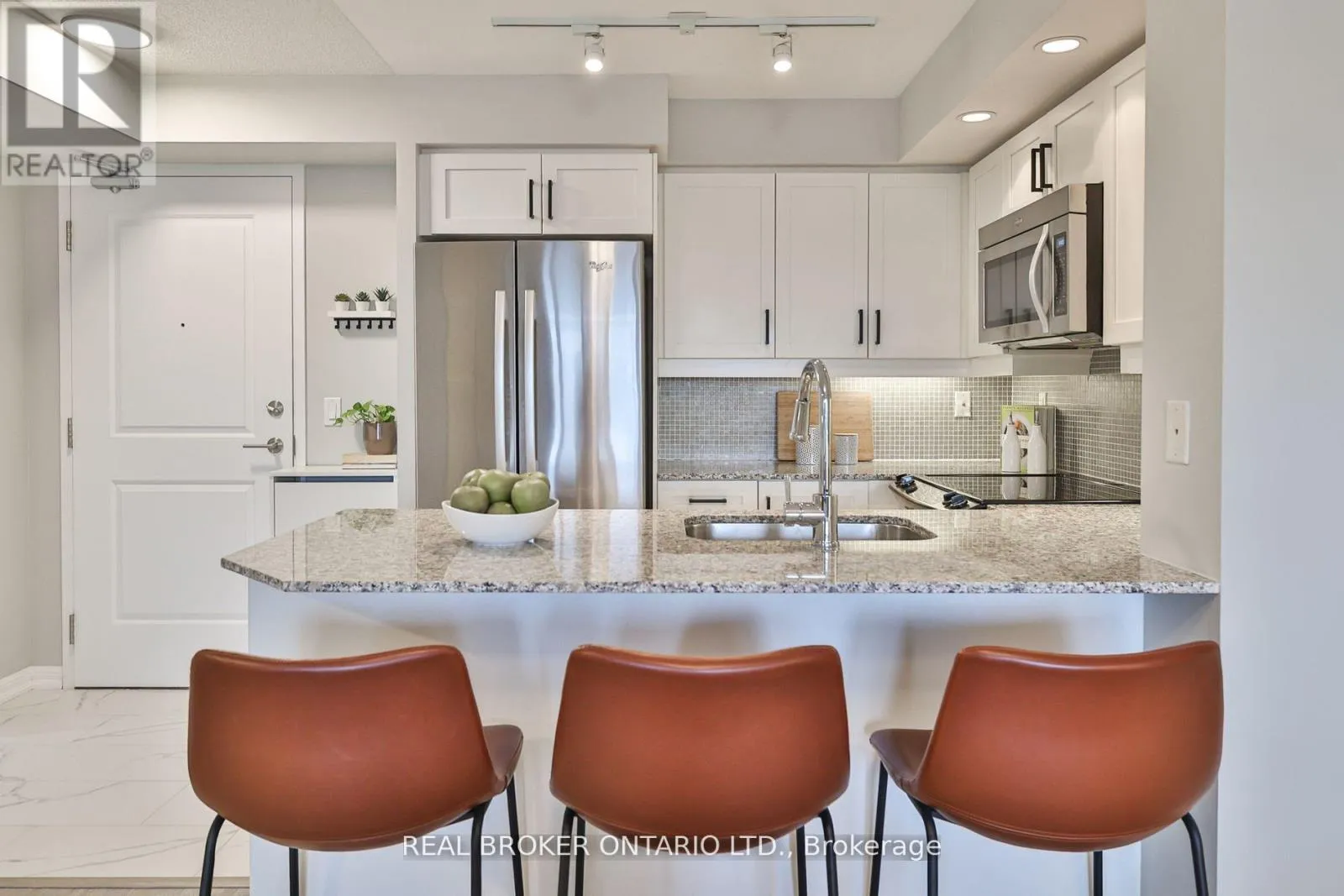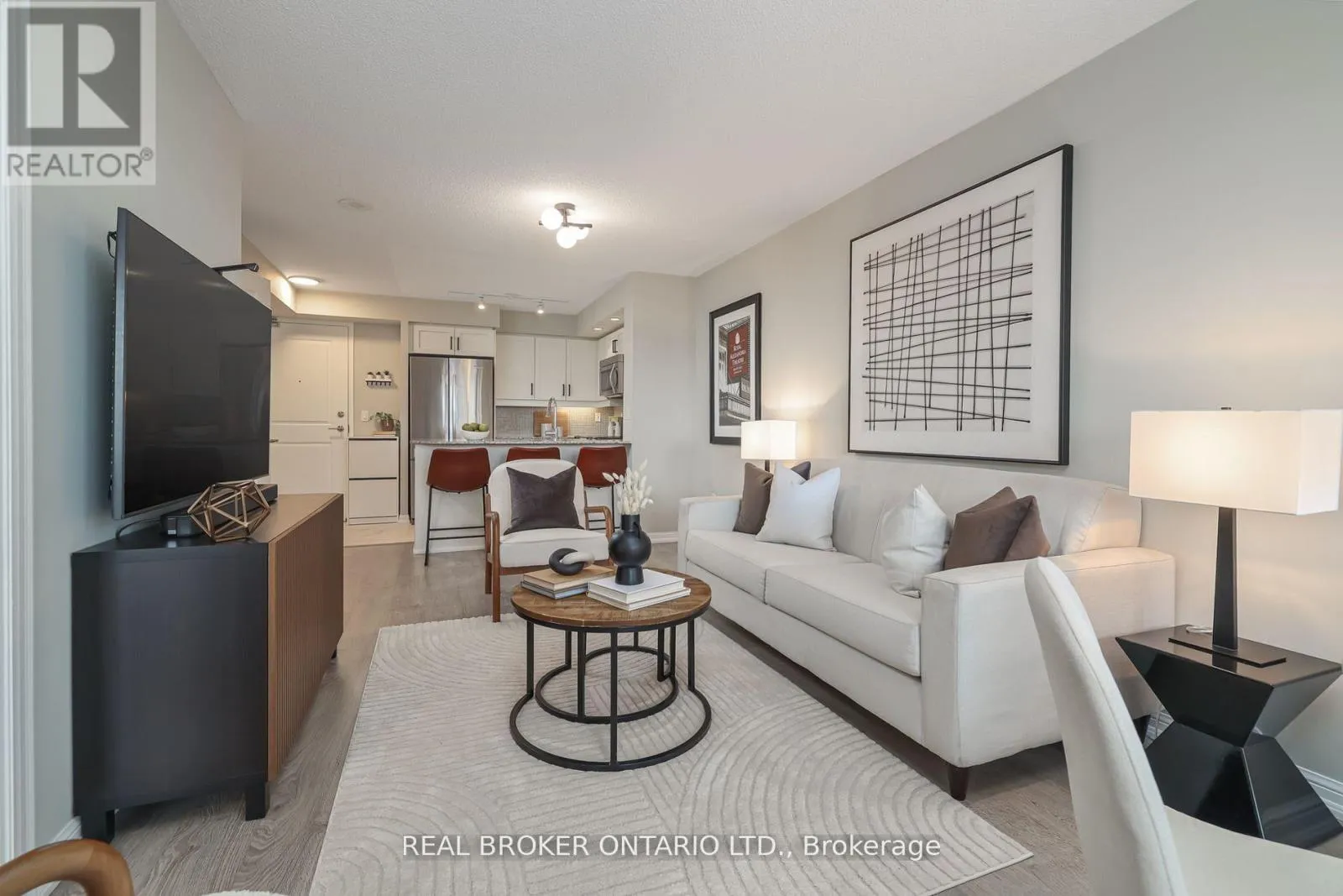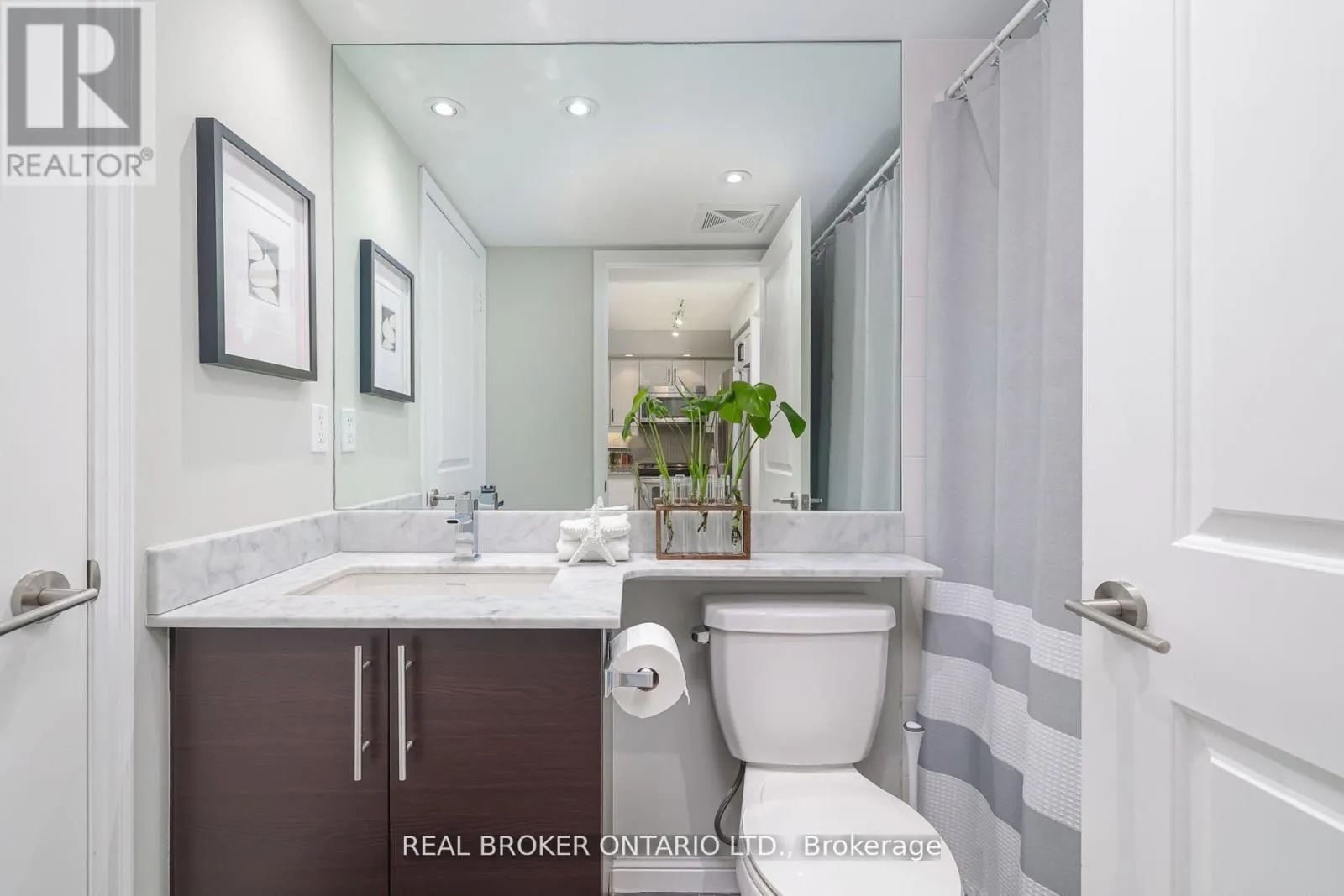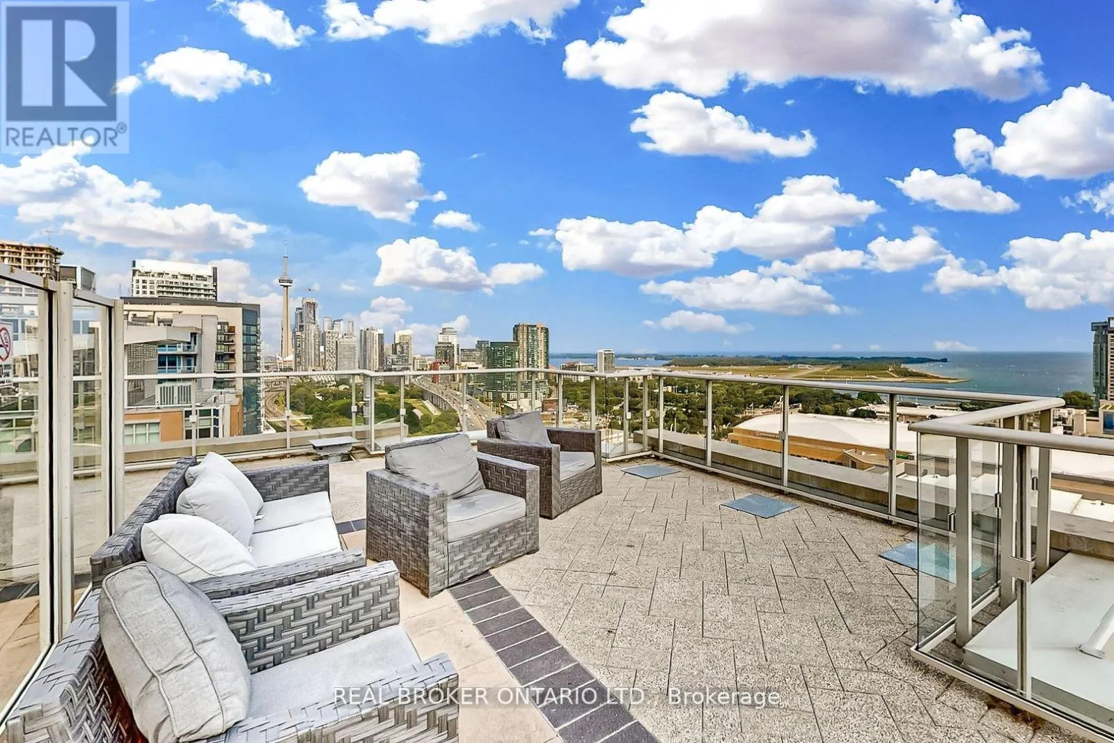 King St W and Strachan Ave This beautifully maintained modern one bedroom plus den condo combines comfort, space, and style in one of Toronto's most vibrant neighbourhoods. The open-concept layout is bright and functional, with fresh paint throughout and new tile floors added in the entry and kitchen. The den is much larger than a typical den, offering the versatility to be used as an office or a second bedroom. Large windows frame impressive city views, and every detail reflects care and pride of ownership, creating a home that feels welcoming from the moment you step inside. Located right in the heart of Liberty Village, you're surrounded by everything that makes downtown living so effortless. Groceries, cafes, restaurants, parks, and the waterfront are all just steps away, with public transit at your door for easy access across the city. Enjoy a full range of amenities including a 24-hour concierge, indoor pool, gym, virtual golf, bowling alley, movie theatre, guest suites, rooftop deck, and party room. With parking and a locker included, this condo delivers an easygoing lifestyle with all the comforts of home. Largest layouts in the building. (id:27476)