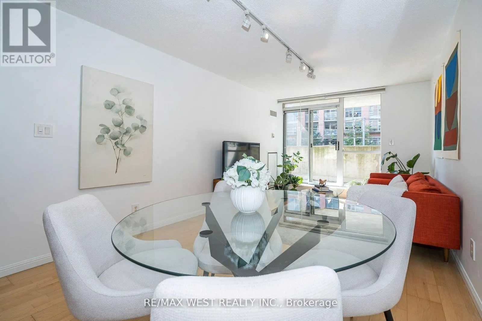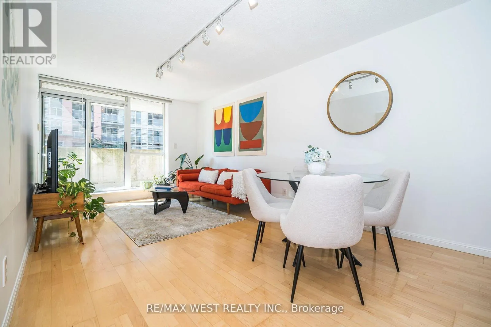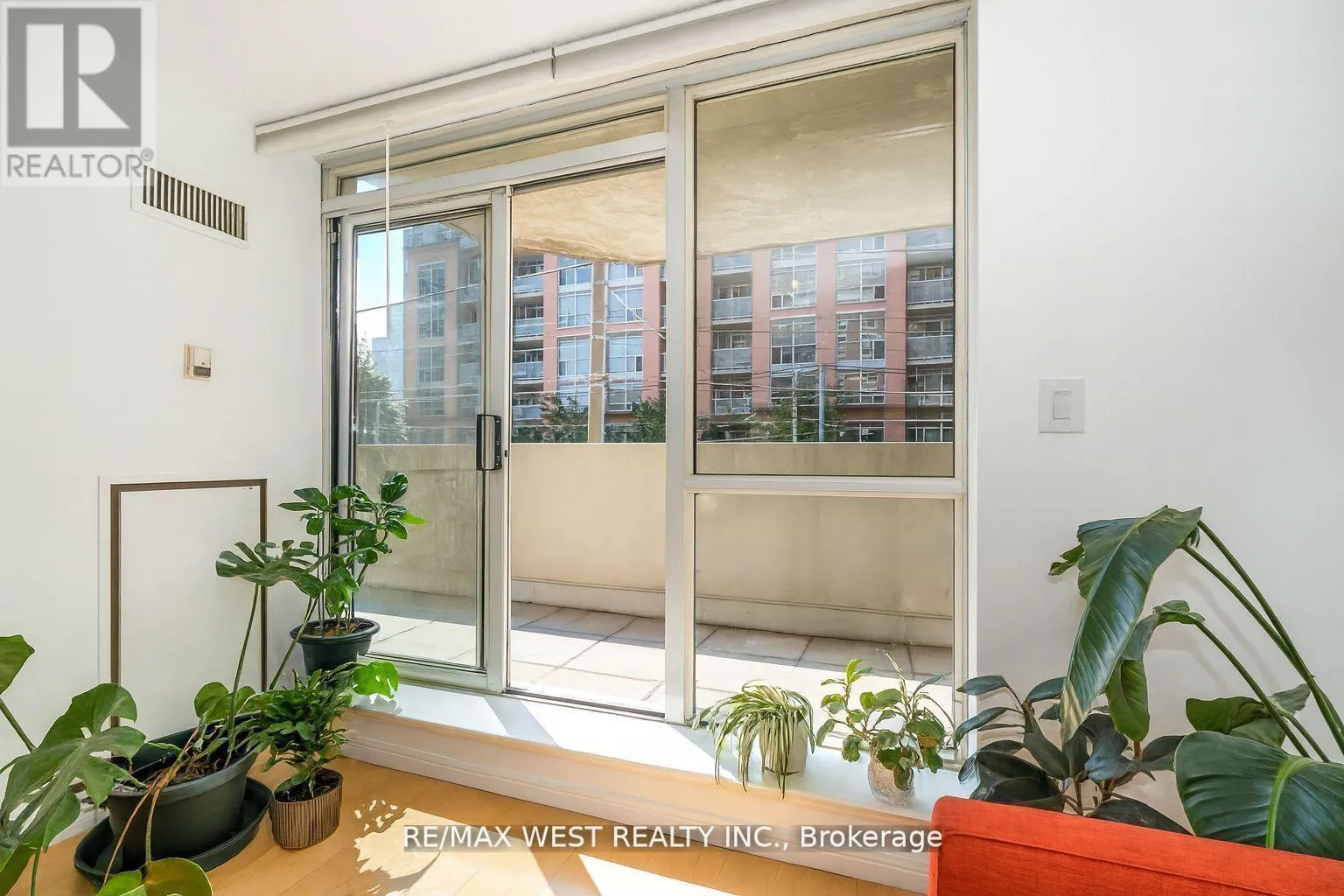 Cross Streets: King St W & Shaw St. ** Directions: East Of Shaw. Spacious 740 Sq.Ft | 1 + Den (2nd Bedroom) | Parking + Locker Included! Welcome to one of King West Village's most desirable boutique residences - where community charm meets urban sophistication. This bright, south-facing 740 sq.ft. suite offers a thoughtful, open layout featuring a generous den large enough to serve as a true second bedroom or home office. The kitchen boasts abundant cabinetry and counter space, flowing seamlessly into the open-concept living and dining area - ideal for entertaining or unwinding at day's end. Step onto your private south-facing terrace, a perfect extension of your living space - morning coffee in the sunshine, a bit of container gardening, or evening conversations over a glass of wine.Parking and locker are included, and the building's low maintenance fees/Sqft make this not just a lifestyle choice, but a smart, value-driven investment in one of Toronto's most dynamic neighbourhoods.Celebrated for its boutique, community-oriented atmosphere, this building offers a true sense of connection within the downtown core. Steps from grocery stores, cafés, gyms, and green spaces - including Stanley Park and Trinity Bellwoods - with the lakefront, TTC, and upcoming Ontario Line King/Bathurst Station all within easy reach.Experience the essence of King West Village living - boutique comfort, urban convenience, and timeless value. (id:27476)