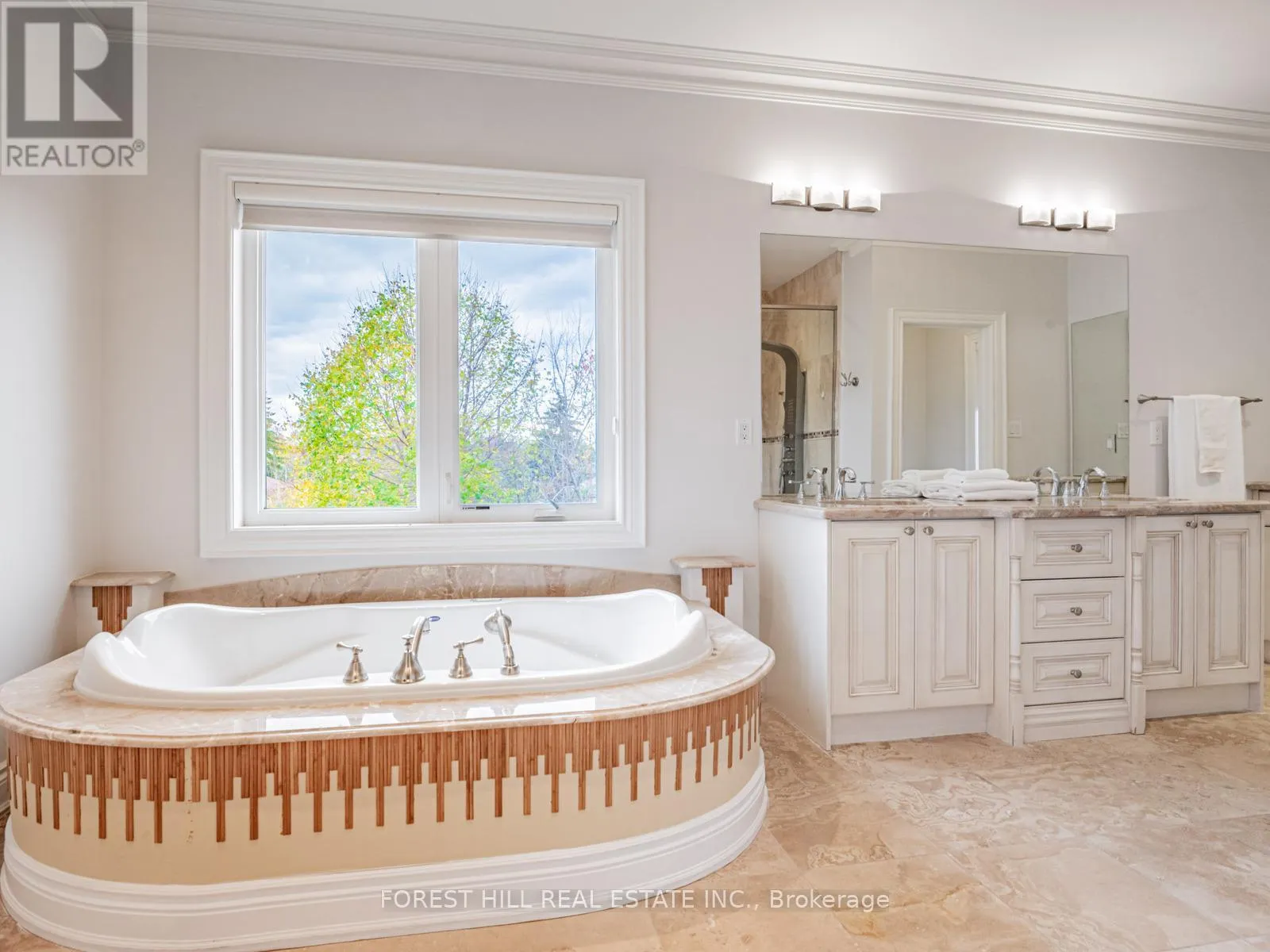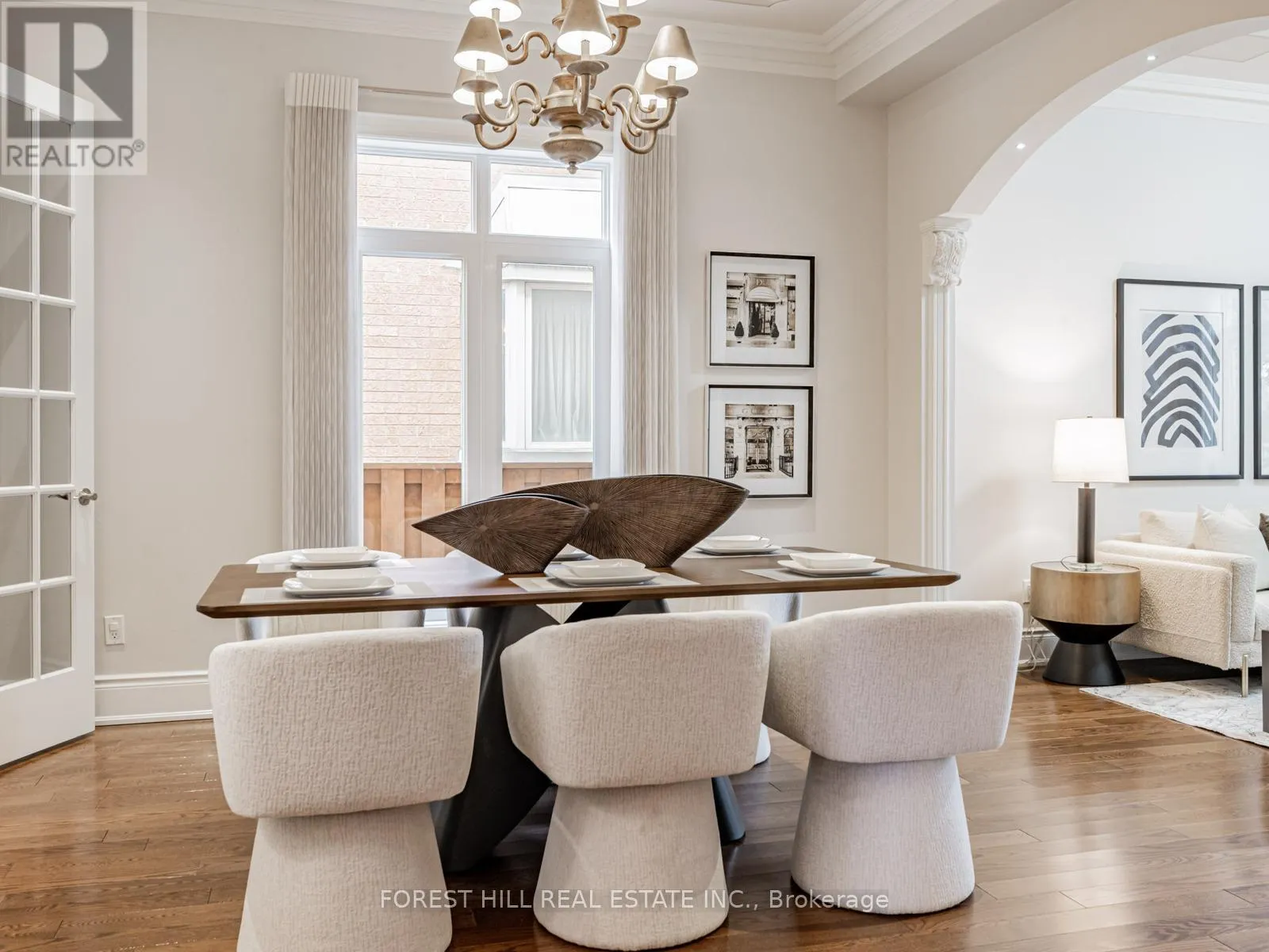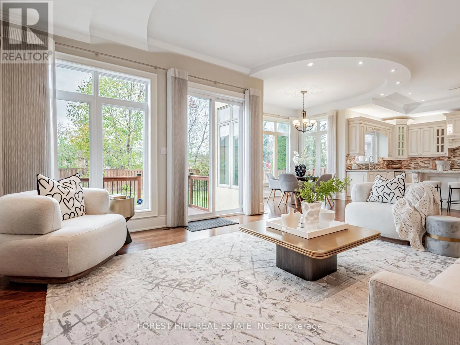 E.Bathurst St & South of Finch Ave W ***An Architecturally Striking C/B Home In The Heart of North York ***Set on a Premium 50 X 127 Ft Lot, Blends Timeless Elegance With Superior Craftsmanship and High-end Finishes Throughout. **Approximately 4000Sf(1st/.2nd Floors) + Fully Finished Basement & 10-ft Ceilings On Main, Rich Hardwood Floors Throughout, and an Open-concept Living and Dining Area Anchored by a Cozy Gas Fireplace-perfect for Both Family Living and Entertaining. The Chef's Kitchen Boasts a Large Center Island, Granite Counters, Stainless Steel Appliances, Custom Backsplash, and Ample Built-ins. ***A Bright Sun-filled Breakfast Area Overlooks the Landscaped Backyard With a Walk-out to the Deck and Patio, Ideal for Indoor/outdoor Enjoyment. ***4 Good Size Bedrms On 2ND Lvl, Including a Primary Retreat Features a 6Pcs Spa-inspired Ensuite and Large Walk-in Closet. **A Second-floor Laundry Brings You The Convenience. ** While Elegant Iron Railings, Wide Wood Steps, and an Octagon Skylight Enhance the Home's Refined Character. The NEWER Finished Basement Extends the Living Space With a Recreation Room, Wet Bar, and Guest Suite-perfect for Family or Visitors. Additional Features Include a Security System, Custom Millwork, and a Thoughtfully Designed Layout That Balances Style and Function. (id:27476)