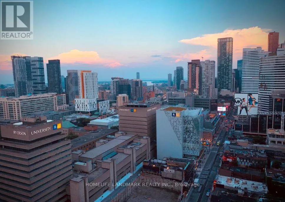 Cross Streets: YONGE/GERRARD. ** Directions: Between College and Gerrard. Welcome to Aura Condominiums, one of the most sought-after buildings in the heart of College Park! This functional 2-bedroom suite offers an ideal layout with two well-sized, separated bedrooms, providing excellent privacy. The spacious primary bedroom includes a 4-piece ensuite, while a 3-piece bathroom conveniently serves the second bedroom.Enjoy floor-to-ceiling windows and hardwood flooring throughout, filling the unit with abundant natural light. The designer kitchen features stainless steel appliances, granite countertops, and a centre island - perfect for cooking and entertaining. Residents enjoy 24-hour concierge service and exclusive access to the Aura Fitness Club, a theatre room, lounge, party rooms, and an outdoor rooftop terrace with a tanning deck and BBQs. just minutes to Yorkville, cafés, restaurants, U of T, TMU/Ryerson, Hospital, College Park shops, TTC subway, Yonge-Dundas Square, and the Eaton Centre. (id:27476)