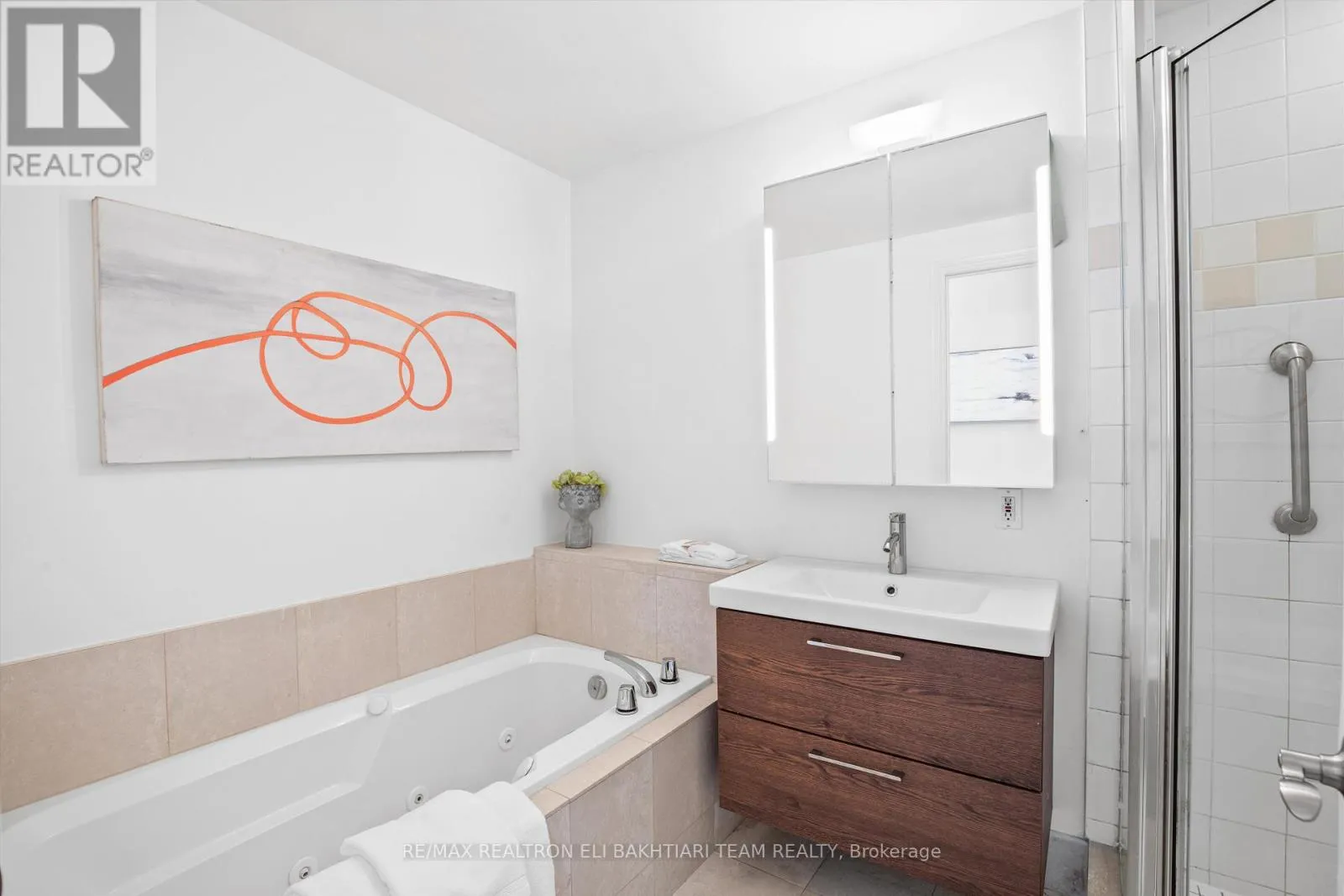 Yonge / Yorkmills Welcome to this beautifully appointed 2-bedroom, 2-bathroom suite in the highly sought-after **Hogg's Hollow neighbourhood ** one of Toronto's most prestigious and picturesque communities. Offering ** over 1,000 sq. ft. of thoughtfully designed living space, this bright and airy residence showcases **9-ft ceilings**, a functional open-concept layout, and large, oversized windows that flood the home with natural light. The modern kitchen features ample cabinetry and breakfast bar seating, ideal for casual meals and entertaining. The primary bedroom is a true retreat, complete with a walk-in closet and a spa-inspired 4-piece ensuite, providing both comfort and privacy. The versatile second bedroom can easily serve as a guest room, home office. The open-concept living and dining areas flow seamlessly onto a , private balcony, perfect for enjoying serene greenbelt views, morning coffee, and spectacular sunsets. Residents of this luxury, pet-friendly building enjoy an array of premium amenities, including a state-of-the-art fitness centre, indoor pool, sauna, hot tub, 24-hour concierge service, guest suites, and an elegant party room. Located just steps from York Mills Subway Station, as well as premier shopping, fine dining, and top-rated schools, with easy access to Hwy 401 commuting is a breeze. Outdoor enthusiasts will appreciate proximity to nature trails, parks, and the Don Valley Golf Course, offering an active lifestyle just minutes from home. Maintenance fees include High-Speed Internet and Cable TV, providing added value and convenience. An exceptional opportunity to own in one of Torontos most coveted enclaves a perfect blend of urban living and natural beauty! (id:27476)