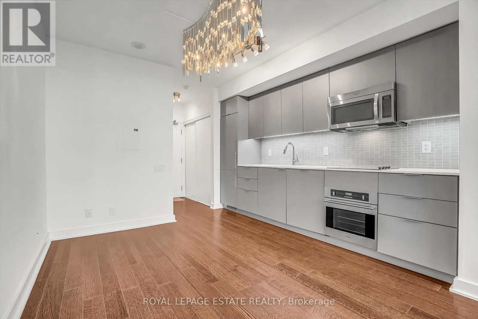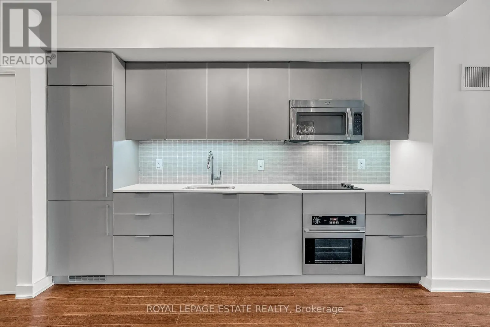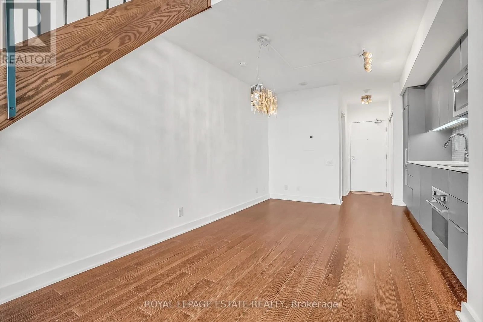 King & Strachan Stunning loft perfectly situated in Liberty Village. This exceptional two-level loft boasts towering 17-foot ceilings and features over 800 square feet of breathtaking, open-concept living and dining space-ideal for entertaining. The unit includes one bedroom, two bathrooms, a large south-west facing private balcony, parking, and locker. The dreamy European kitchen features modern cabinetry and top-of-the-line appliances. Premium engineered hardwood flooring runs throughout the unit. The second-floor master suite is a true retreat, offering a private ensuite bath and a giant walk-in closet with custom built-in cabinetry. Residents enjoy state-of-the-art amenities, including a fully-equipped gym, basketball court, business centre, party room, and 24-hour concierge service. The location is unbeatable, with restaurants, coffee shops, high-end home retail, grocery stores, banks, gyms, yoga studios, LCBO, TTC, GO Train, BMO Field, and The Ex! - all just steps away. This is an opportunity to enjoy sophisticated loft living in one of Toronto's most sought-after neighbourhoods. (id:27476)