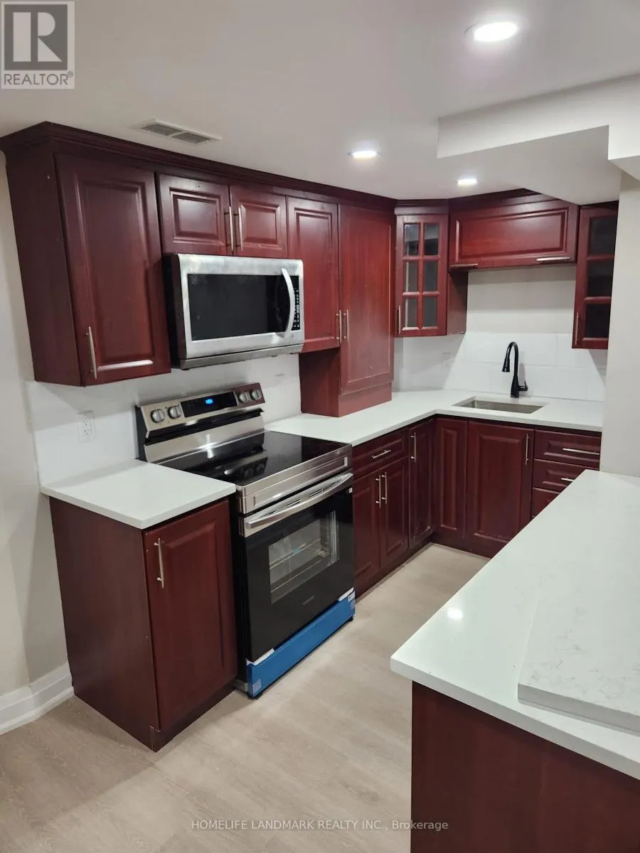Morrish Rd and Ellesmere Rd Beautifully renovated 2-bedroom basement apartment in the sought-after Highland Creek community. This spacious unit features a modern full kitchen with refrigerator and stove, a 3-piece washroom with glass shower, in-suite laundry, and one parking space on the driveway. Located just minutes from Highway 401, Rouge Hill GO Station, U of T Scarborough, and PAN AM Sports Centre. Walking distance to Old Kingston Road, offering restaurants, coffee shops, and access to Rouge Valley trails. Ideal for professionals or small families. (id:27476)