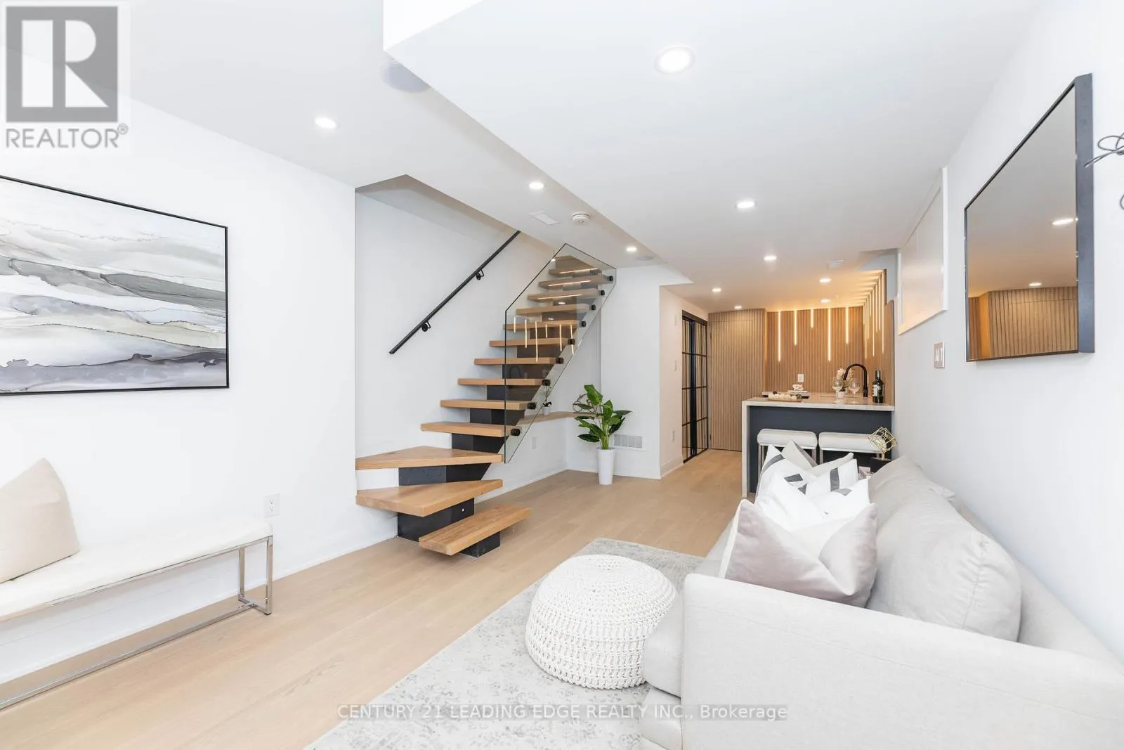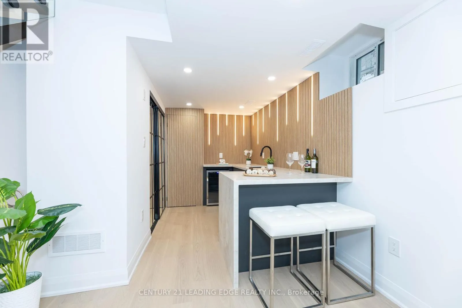 Leslie St. & Eastern Ave. Welcome to 12 Marigold, a true custom home in South Riverdale where modern design meets everyday comfort. Natural light pours in through the skylight, brightening an open main floor anchored by a sleek fireplace and a striking mono stringer staircase with glass railings. The kitchen and bar are designed to impress, pairing style with function to make daily living and entertaining effortless. Upstairs, calm and inviting bedrooms are complemented by a spa-like ensuite with heated floors, while the lower level stands out with soaring ceilings, a custom bar with wine fridge, built-in speakers, and elegant wall paneling. The details continue beyond the living spaces: an electric heated porch with custom cabinetry, engineered hardwood throughout, and a seamless flow that ties every room together. Step outside to a private urban retreat with a large deck, 10-foot privacy fencing, interlocked yard, and a refined stucco exterior. At the laneway, a garage with roll-up door and built-in EV charging adds convenience for modern living. Every corner of this home reflects thoughtful design and lasting quality, offering both elegance and comfort in one of Toronto's most sought after neighbourhoods. (id:27476)