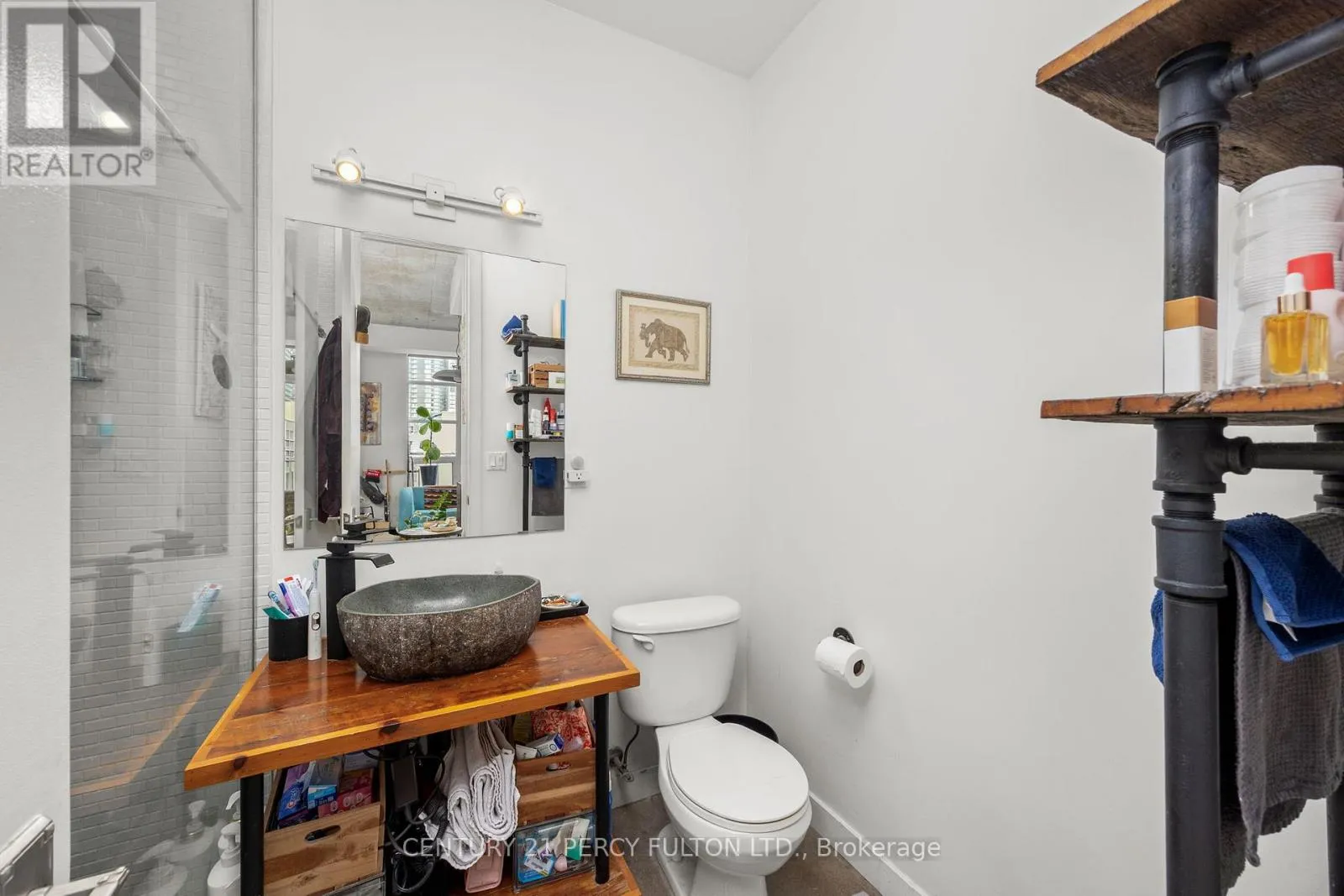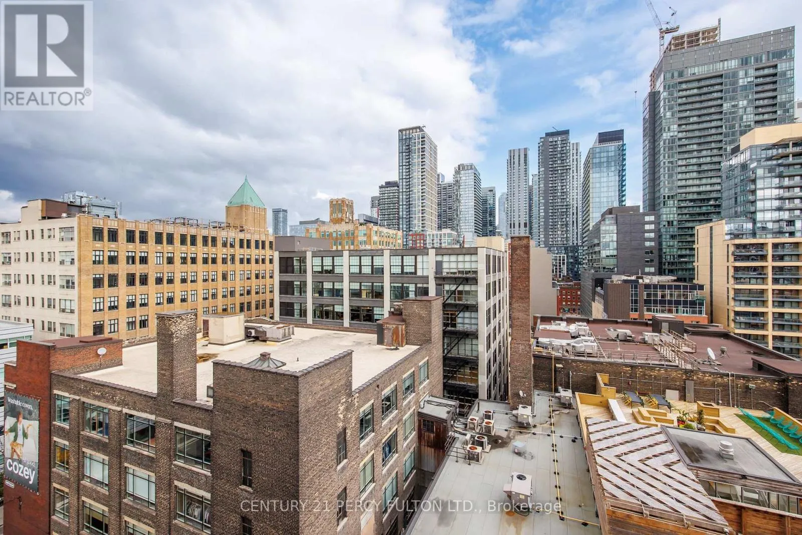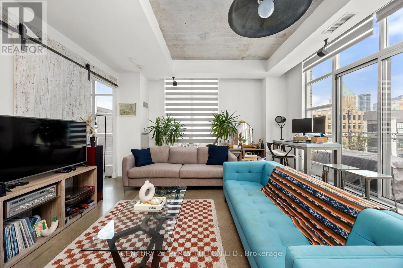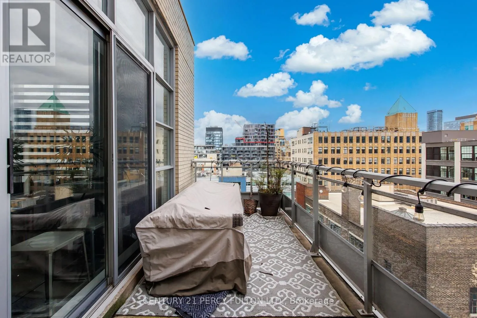 Cross Streets: Spadina & King. ** Directions: Brant & King. Welcome to Quad Lofts - where modern industrial design meets the vibrant energy of King West. Tucked away in a quiet, landscaped courtyard. Just steps from King & Spadina, this bright, spacious & fully functional 774 sq ft 1+ den offers the perfect blend of style, comfort, and unbeatable location. Soaring 10 ft exposed concrete ceilings, polished concrete floors, and floor-to-ceiling windows, dressed in elegant Douglas Hunter blinds, that fill the space with natural light. The sleek kitchen features stainless steel appliances, ample cabinetry & storage, and a clean contemporary design ideal for cooking or entertaining. The large den is a standout feature - a truly functional room perfect for a full home office & creative workspace. The airy primary bedroom includes a generous sized closet and window for more natural light. Unwind on your large 125 sq ft private outdoor terrace, with BBQ gas line, and take in the quiet courtyard views - a peaceful retreat right in the heart of downtown. Building amenities include concierge, gym, party/meeting room, and bike storage, in this pet-friendly, boutique, & architecturally acclaimed community. With unbeatable walk, transit, and bike scores, you're steps from top & trendy restaurants, cafés, nightlife, transit, multiple beautiful parks and everything King West has to offer. A rare opportunity to own a true gem in one of downtown Toronto's most sought-after pockets. (id:27476)