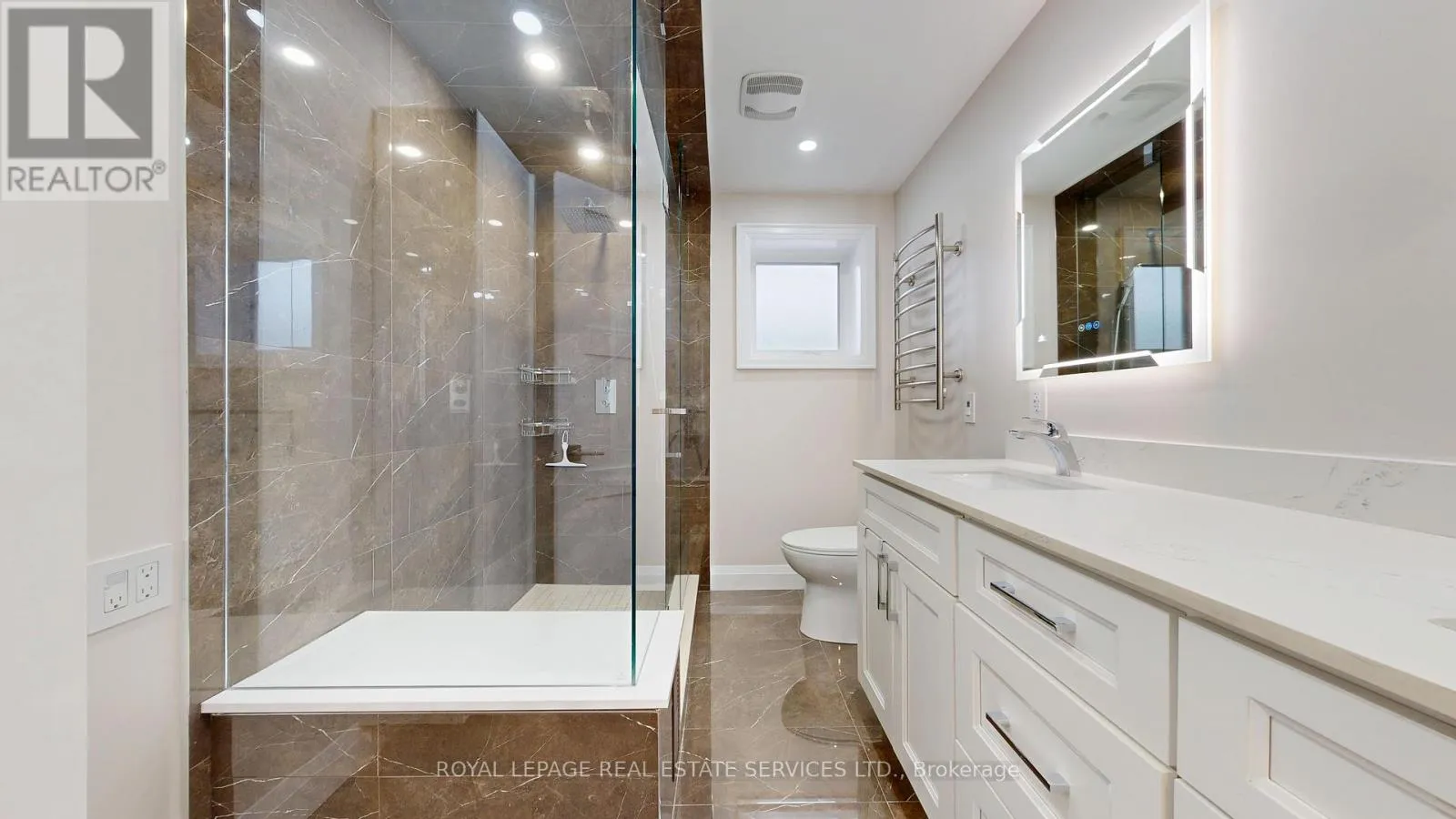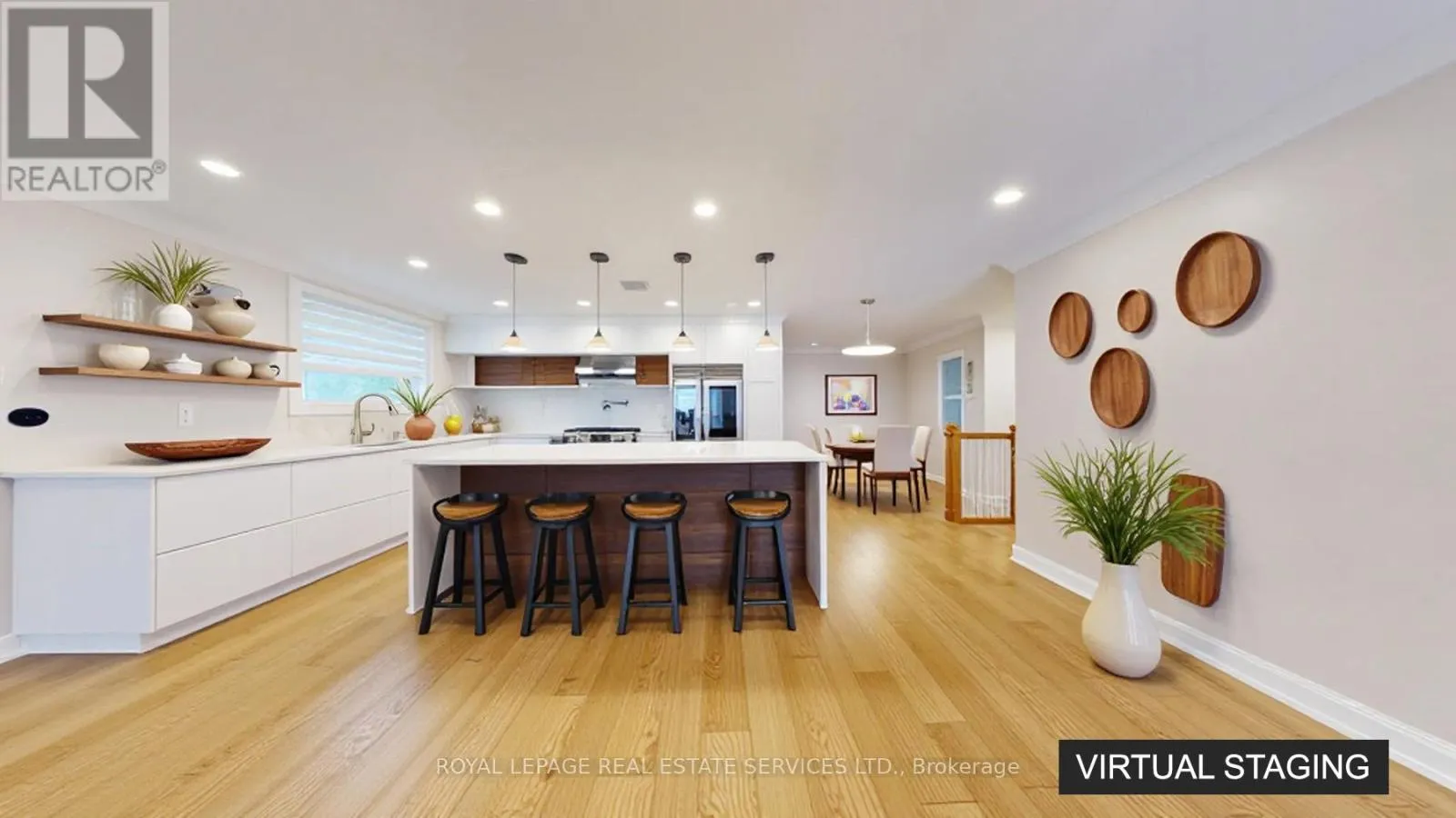 Rathburn & Renforth Home can be shown at anytime. Virtually Staged. Beautifully renovated 3 +2 bdrm, 2 bath home with new triple pane windows (2020) on a lovely, quiet cul de sac. Solid brick, detached with private double driveway and double car garage. Main floor is open concept and has hardwood floors. Stunning kitchen with a large white Quartz Island. Stainless steel appliances include gas burners and oven, pot filler, microwave, dishwasher and Fridge with water dispenser. Enjoy the heated floors at the entrance, side door, kitchen and both bathrooms. Bathroom towel racks in both bathrooms are heated. Primary bdrm has a huge walk-in closet. Light filtered Zebra Blinds and California Blinds on main floor windows. Side door opens to a covered deck with lights and fan and large, private fenced rear yard. Basement has roughed in kitchen by the staircase, a roughed in sauna and an extra shower in the Laundry/Utility Rm. Rec room with electric fireplace. Roof (2021). Home Inspection Available. (id:27476)