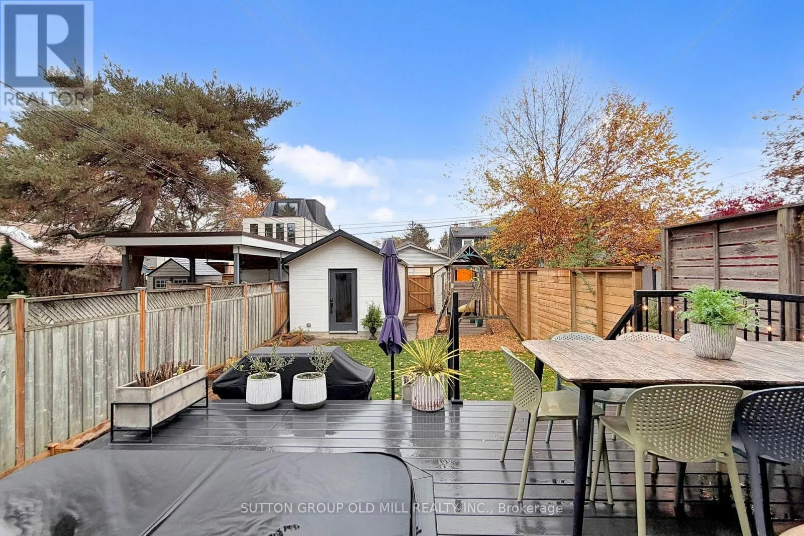 Cross Streets: Jane/St. John's. ** Directions: west of Jane, south of Dundas. Welcome to Humbercrest Blvd! This beautifully renovated 3-bedroom, 2-bathroom home is fully move-in ready with high-quality finishes throughout. The bright, stylish main floor offers a cozy living room with a gas fireplace, a dining room overlooking the backyard, and a 2020 chef's kitchen with a walk-out to a private outdoor space. New hardwood floors were installed in 2025. The underpinned basement, renovated in 2023, features rare 8'4" ceilings, radiant heated floors, and an additional bedroom with a built-in Murphy bed-bringing the total to four bedrooms. The heated single-car garage (2022) sits on one of the best laneways in the neighbourhood and accommodates a full-size SUV. A laneway housing report indicates strong potential for a future in-law suite or rental unit, with the opportunity to build a laneway home close to the maximum size permitted in Toronto. A pre-inspection report confirms extensive maintenance and upgrades. The 2018 composite deck offers generous space for seating and dining, along with a sunken 2018 hot tub. Located in Upper Bloor West Village, the home is steps to shops, TTC, schools, and parks, and sits within the coveted Baby Point Club catchment and near a highly rated French immersion elementary school. The Baby Point Club offers tennis, games day, euchre and trivia nights, lawn bowling, and more for a modest fee. This quiet, family-friendly neighbourhood provides easy access to downtown, the airport, the Junction, and Bloor Street. Simply move in and enjoy the benefits of this exceptional street. Additional recent updates include a 2023 boiler, 2023 tankless hot water heater, 2024 front-yard landscaping, new fence on south side 2024, roof reshingled 2019, ductless a/c in primary 2023. Current owners have parked one car in front of the house on the parking pad (not permitted but curb is cut) and their 2nd car behind the garage for the 10 years they've owned the property without issue. The garage is currently used for storage and a gym. (id:27476)