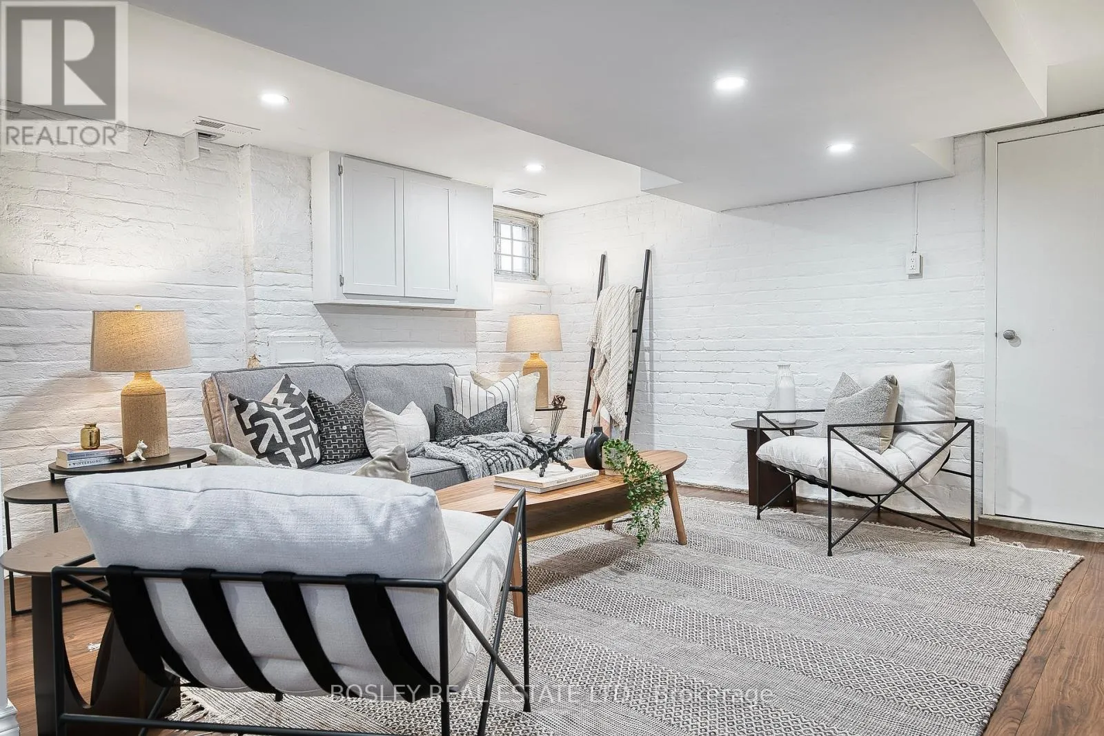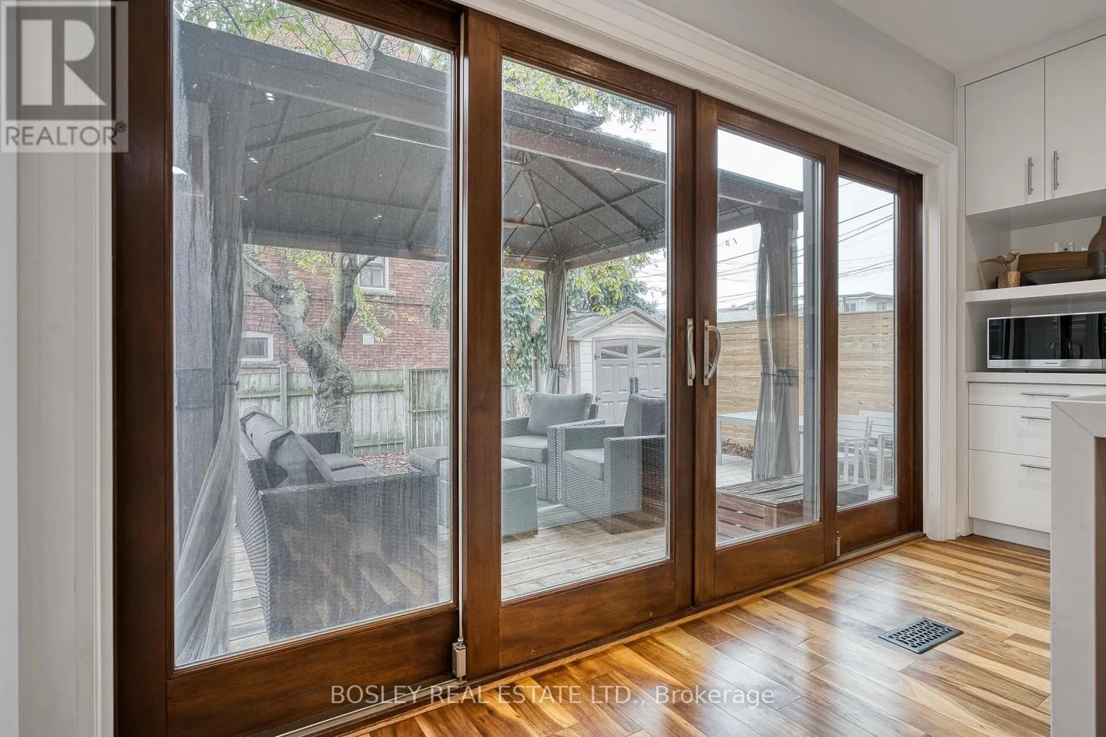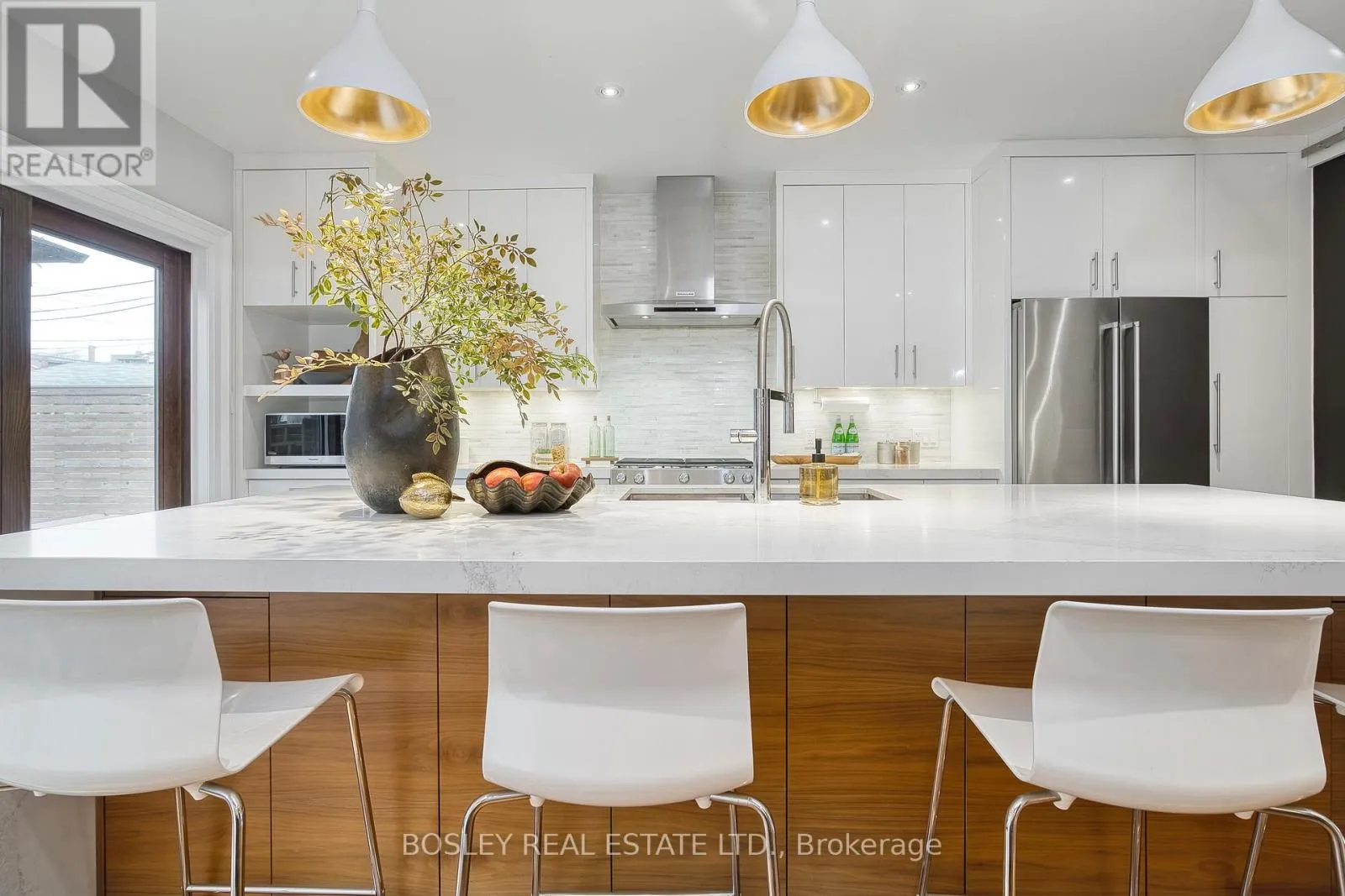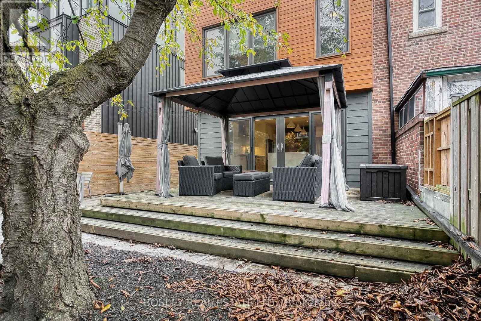 Dufferin and Dundas Larger than it looks - an impressive 29 ft wide! This beautifully renovated 2-storey semi in sought-after Little Portugal blends modern style with original charm. Gutted to the studs and professionally extended at both the rear and upper levels, this home was completely rebuilt in 2016 with new furnace, plumbing, windows, air conditioning, and roof. The bright open-concept living and dining area retains its character with leaded-glass windows while offering a contemporary, airy layout. The stunning chef's kitchen features a large quartz island, sleek cabinetry, and wall-to-wall patio doors that open to a private backyard-ideal for entertaining. Upstairs offers three spacious bedrooms and a fully renovated 4-piece bath. The primary bedroom includes a walk-in closet with excellent potential for custom built-ins. The finished basement adds valuable living space, complete with a 4-piece bath and a generous utility/laundry room (ceiling height approx. 6'1"). Basement renovation includes interior waterproofing below grade and a backflow valve for peace of mind. Outside, enjoy a new deck with gazebo, garden shed, interlocking brick, and a new north-side fence. A rare bonus for the neighbourhood: a private driveway with parking for two cars. Stylish, spacious, and move-in ready-this exceptional home is not to be missed! (id:27476)