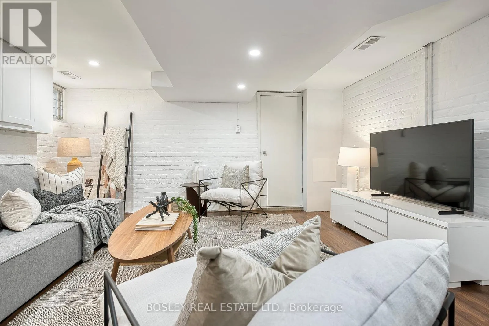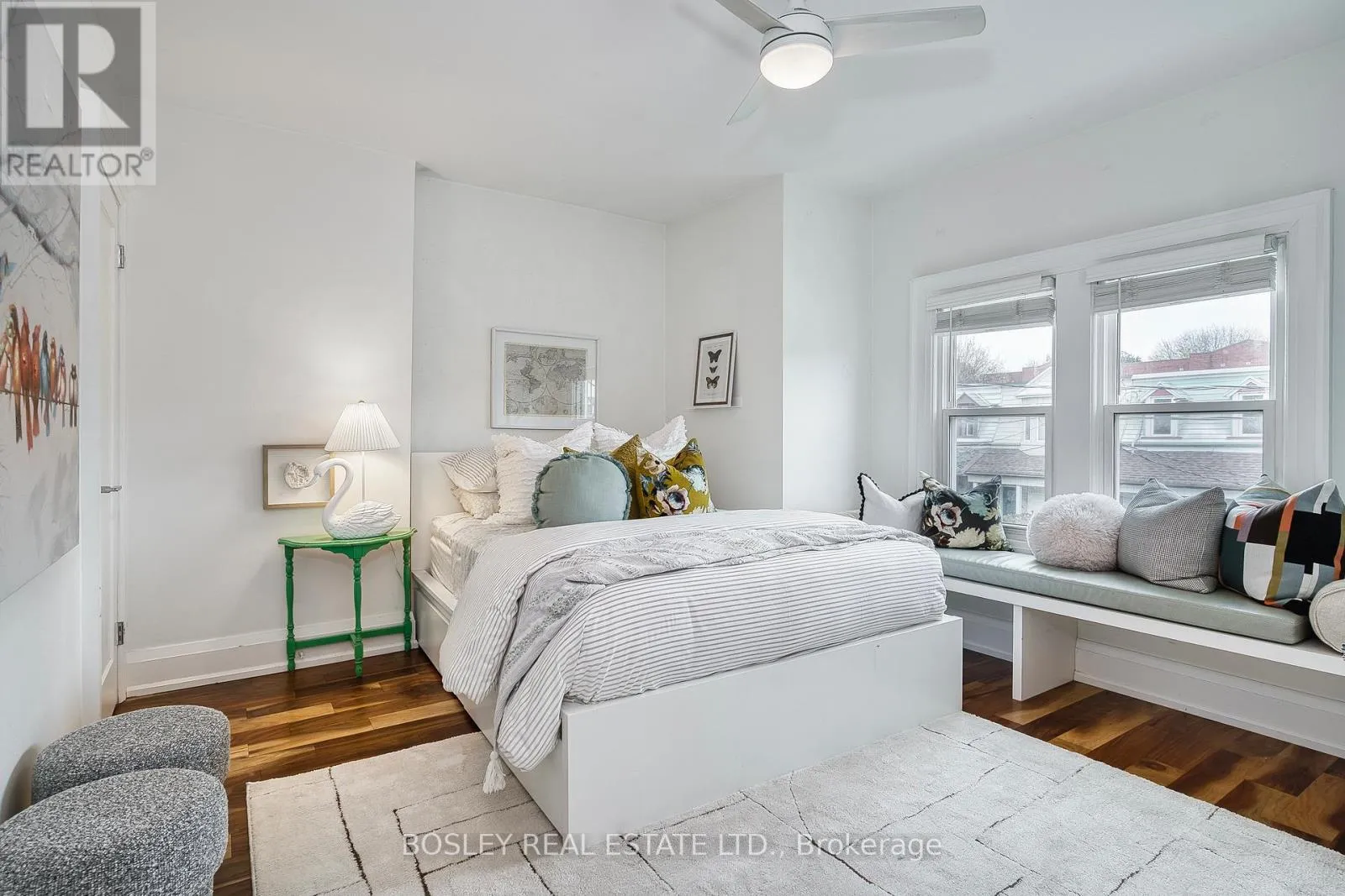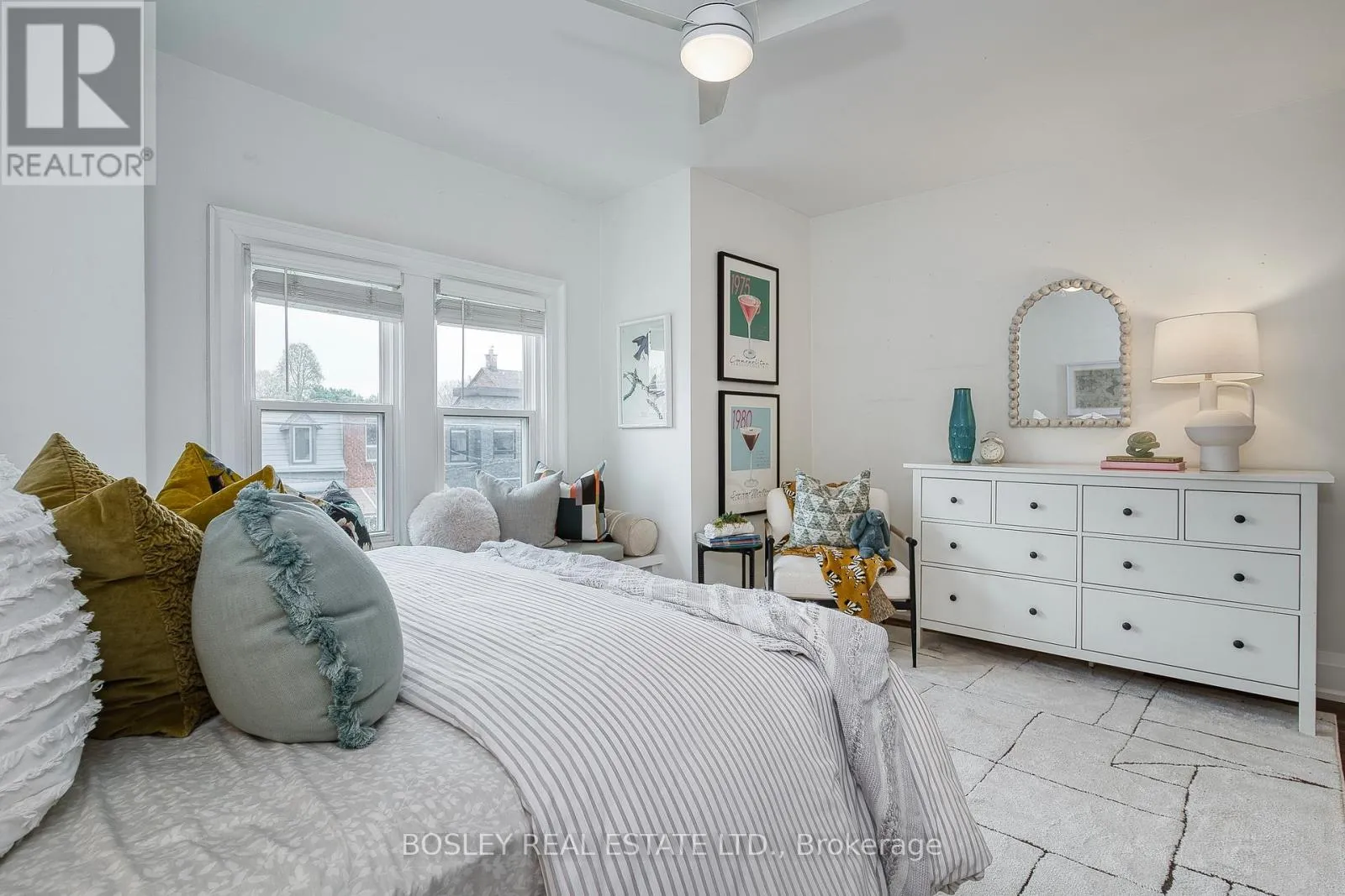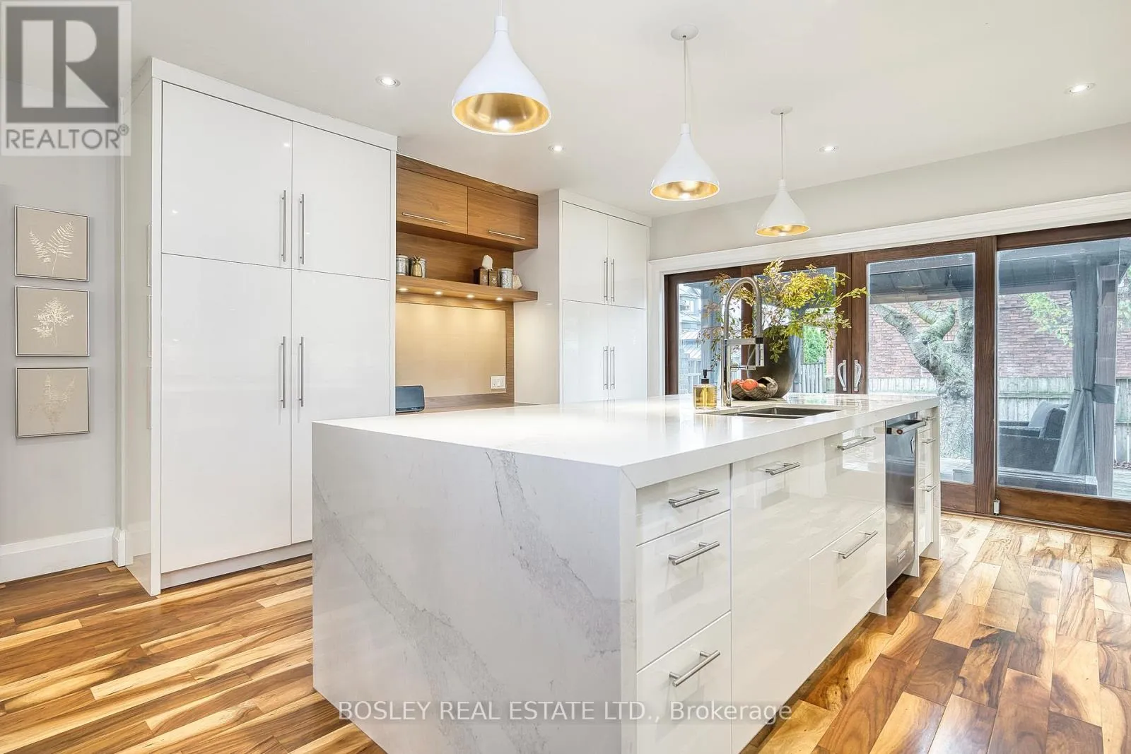 Dufferin and Dundas Larger than it looks - an impressive 29 ft wide! This beautifully renovated 2-storey semi in sought-after Little Portugal blends modern style with original charm. Gutted to the studs and professionally extended at both the rear and upper levels, this home was completely rebuilt in 2016 with new furnace, plumbing, windows, air conditioning, and roof. The bright open-concept living and dining area retains its character with leaded-glass windows while offering a contemporary, airy layout. The stunning chef's kitchen features a large quartz island, sleek cabinetry, and wall-to-wall patio doors that open to a private backyard-ideal for entertaining. Upstairs offers three spacious bedrooms and a fully renovated 4-piece bath. The primary bedroom includes a walk-in closet with excellent potential for custom built-ins. The finished basement adds valuable living space, complete with a 4-piece bath and a generous utility/laundry room (ceiling height approx. 6'1"). Basement renovation includes interior waterproofing below grade and a backflow valve for peace of mind. Outside, enjoy a new deck with gazebo, garden shed, interlocking brick, and a new north-side fence. A rare bonus for the neighbourhood: a private driveway with parking for two cars. Stylish, spacious, and move-in ready-this exceptional home is not to be missed! (id:27476)