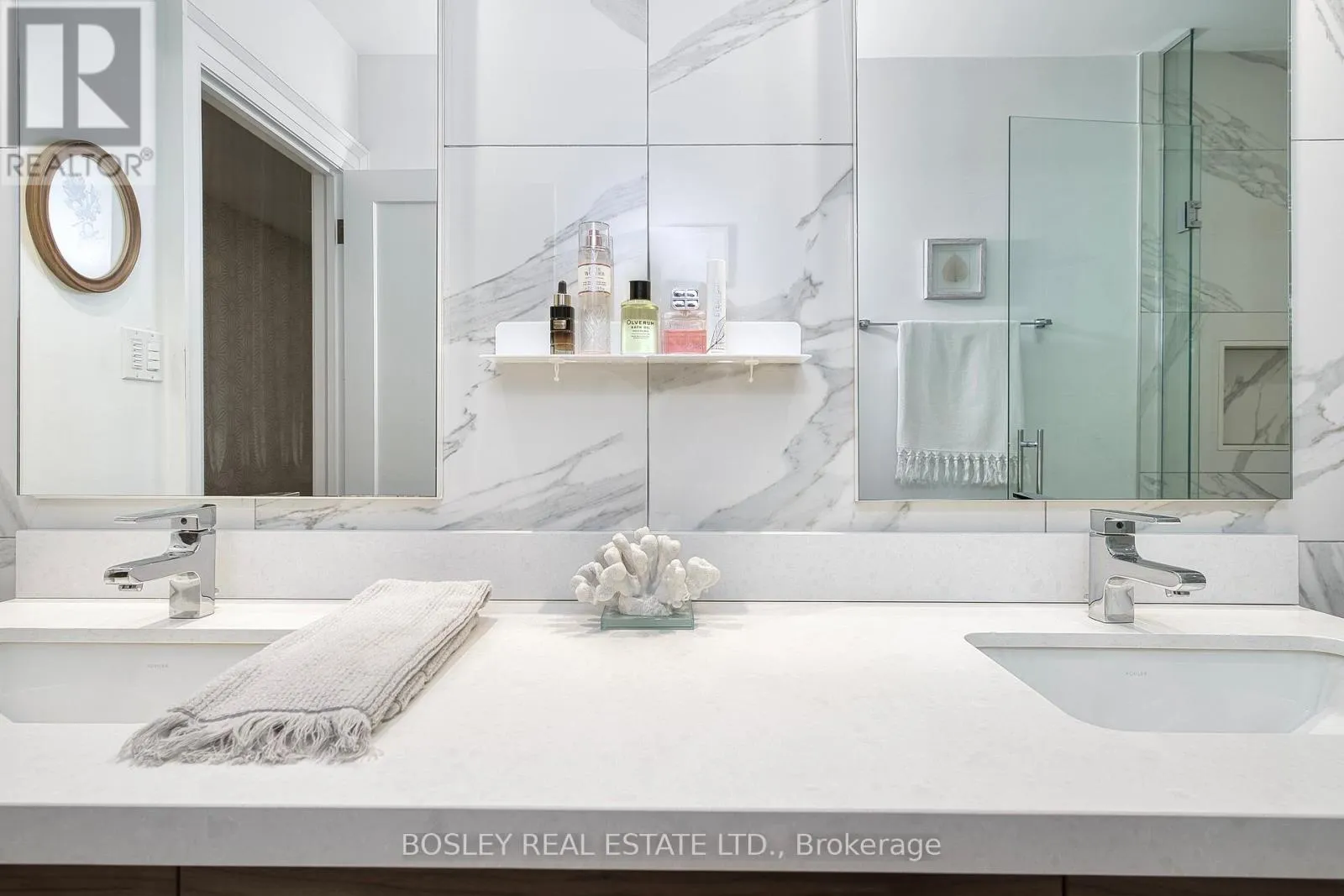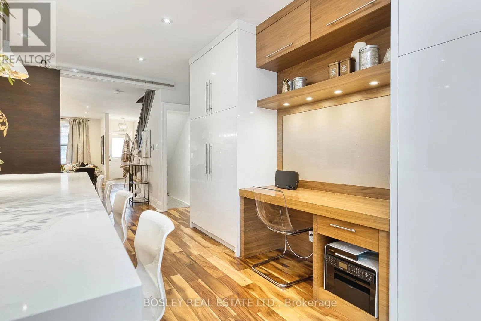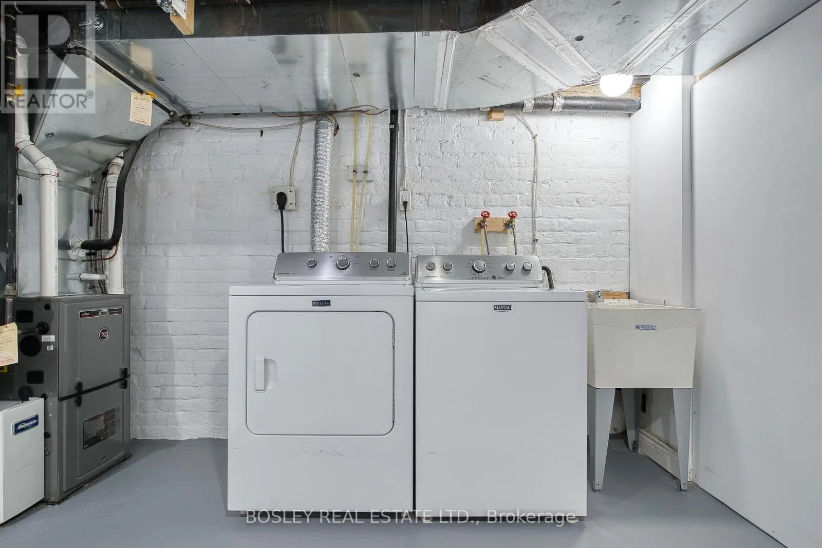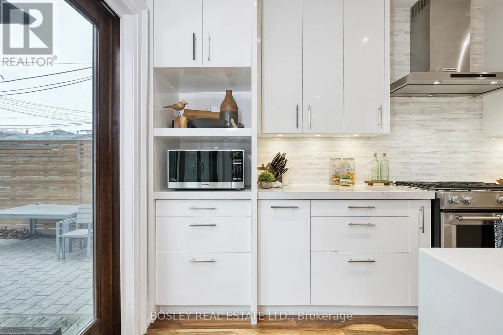 Dufferin and Dundas Larger than it looks - an impressive 29 ft wide! This beautifully renovated 2-storey semi in sought-after Little Portugal blends modern style with original charm. Gutted to the studs and professionally extended at both the rear and upper levels, this home was completely rebuilt in 2016 with new furnace, plumbing, windows, air conditioning, and roof. The bright open-concept living and dining area retains its character with leaded-glass windows while offering a contemporary, airy layout. The stunning chef's kitchen features a large quartz island, sleek cabinetry, and wall-to-wall patio doors that open to a private backyard-ideal for entertaining. Upstairs offers three spacious bedrooms and a fully renovated 4-piece bath. The primary bedroom includes a walk-in closet with excellent potential for custom built-ins. The finished basement adds valuable living space, complete with a 4-piece bath and a generous utility/laundry room (ceiling height approx. 6'1"). Basement renovation includes interior waterproofing below grade and a backflow valve for peace of mind. Outside, enjoy a new deck with gazebo, garden shed, interlocking brick, and a new north-side fence. A rare bonus for the neighbourhood: a private driveway with parking for two cars. Stylish, spacious, and move-in ready-this exceptional home is not to be missed! (id:27476)