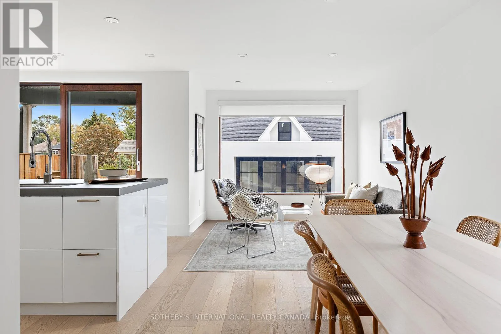 Cross Streets: Mimico Avenue and Lakeshore Blvd W. ** Directions: Follow Your GPS. An architect's own residence. Recently rebuilt from ground up with over $700K in renovations and 2,200+ sq. ft. of refined living space featuring all-new electrical, plumbing, mechanical, and structural systems. Designed for multi-generational living, sophisticated live-work use, every element executed with artistry & precision. Custom Bauhaus windows & doors flood the interiors with natural light, revealing soaring ceilings, warm wood & sculptural layers of concrete & tile. The open main level unfolds to a private deck and lush lawns, with a chef's kitchen anchored by an 8-foot Laminam island & Miele appliances designed for entertaining, conversation & cooking. A private main-floor salon, complete with decorative fireplace & powder room, offer an intimate space for reading, quiet reflection, or evening gathering w friends. A sculptural white oak staircase, bathed in natural light from a vertical window, leads to the upper level where calm and proportion define the private quarters. Three bedrooms with custom rift-cut white oak cabinetry are anchored by a spa-inspired bath with rain shower, antique clawfoot tub, double vanity & private water closet - a true sanctuary of quiet luxury. The lower level expands the home's flexibility featuring a self-contained studio suite w kitchen & bath - ideal for extended family/guests/or creative workspace. A 600 sq.ft. Modern Coach House showcases 15ft ceilings,a loft & accordion glass doors that dissolve the boundary between indoors & out. Radiant-heated concrete floors (roughed in) bring warmth and comfort, while a wet room & partial kitchenette allow for the perfect atelier, retreat, or studio. With commercial zoning (buyer to verify intended use), the property offers exceptional flexibility & future opportunity. Set on a tree-lined street in Mimico's coveted lakeside enclave, minutes to Waterfront, Parks, Schools, Montessori Daycare, Mildenhall Montessori School, Birds & Beans Café, San Remo Bakery, Groceries, Bus, GO Station (id:27476)