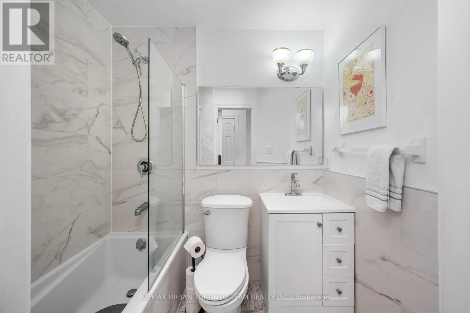 Coxwell/ Dundas Welcome to 50 Ashland Avenue, a beautifully updated 3-bedroom, 4-bathroom home on a quiet, family-friendly cul-de-sac beside Orchard Park in Torontos Beaches neighbourhood. A protected front entrance opens to a spacious foyer with a large closet and main floor powder room. The bright, open layout features new hardwood floors on both the main and second levels, elegant marble fireplaces, and a living room walkout to the back deck. The chefs kitchen has been fully renovated with premium finishes and modern appliances, creating a space perfect for everyday living and entertaining. Five Double Door Closets Above-Grade For Extra Storage. Upstairs offers three well-appointed bedrooms with deep closets, two full bathrooms, skylights that brighten the hallway and bath, and a large linen closet. The finished basement adds versatile living space with a three-piece bathroom. Outdoors, enjoy a private patio, garage, and two additional driveway spaces. Just steps to Woodbine Beach, shops, schools, parks, and TTC routes, with downtown only 15 minutes away, 50 Ashland delivers modern living in one of Torontos most connected and welcoming communities. (id:27476)