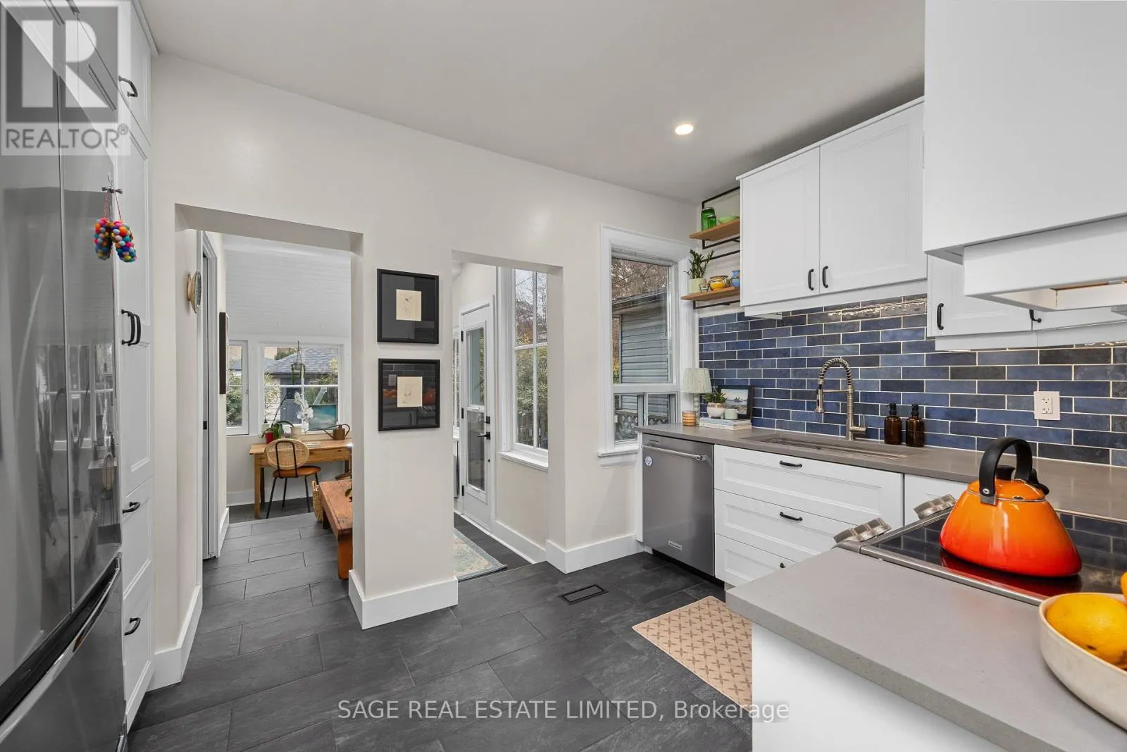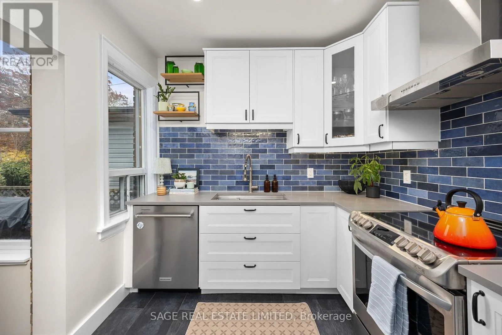 Cross Streets: Annette and Windermere. ** Directions: North of Annette on Windermere. Character You Can Feel, Comfort You Can Count On! There's a certain kind of home that just feels right the moment you walk through the door. It's not about flash or size-it's about warmth, quality & subtle charm of thoughtful design. Renovated in 2021, it offers the rare blend of preserved character & fully modernized comfort, w/ every essential updated, from wiring & furnace to central air. Before you even cross the threshold, the experience begins on the inviting front porch which doubles as a mudroom, a thoughtful touch that adds much needed everyday function. The main floor flows w/ natural light & intuitive design. The front living room is a welcoming retreat, anchored by a fully functioning wood-burning fireplace that adds both ambience & authenticity. Adjoining dining area flows easily into the renovated kitchen, which has been fully reimagined for modern life. With sleek cabinetry, stone counters, and quality appliances, this kitchen is more than just a place to cook-it's a space designed to connect. Just off the kitchen, a sun-filled flex space serves as the perfect breakfast nook, home office. Upstairs, the home continues to impress with three sweet bedrooms all with closets. The family bathroom has been renovated with a designer's touch, makes your morning routine feel just a little more elevated. The lower level adds even more living space, with a cozy, professionally renovated basement that's as functional as it is inviting. Custom built-ins add style and storage, while a fully modern laundry rm has the practical side of life equally covered. Outside the property stretches on an impressive 147 ft depth, offering rare outdoor space in this west-end pocket. Step out from the kitchen onto a large back deck, great for entertaining, summer dinners, or lazy weekend brunches. Family friendly location, just steps to one of the best elementary school in the west (King George PS). (id:27476)