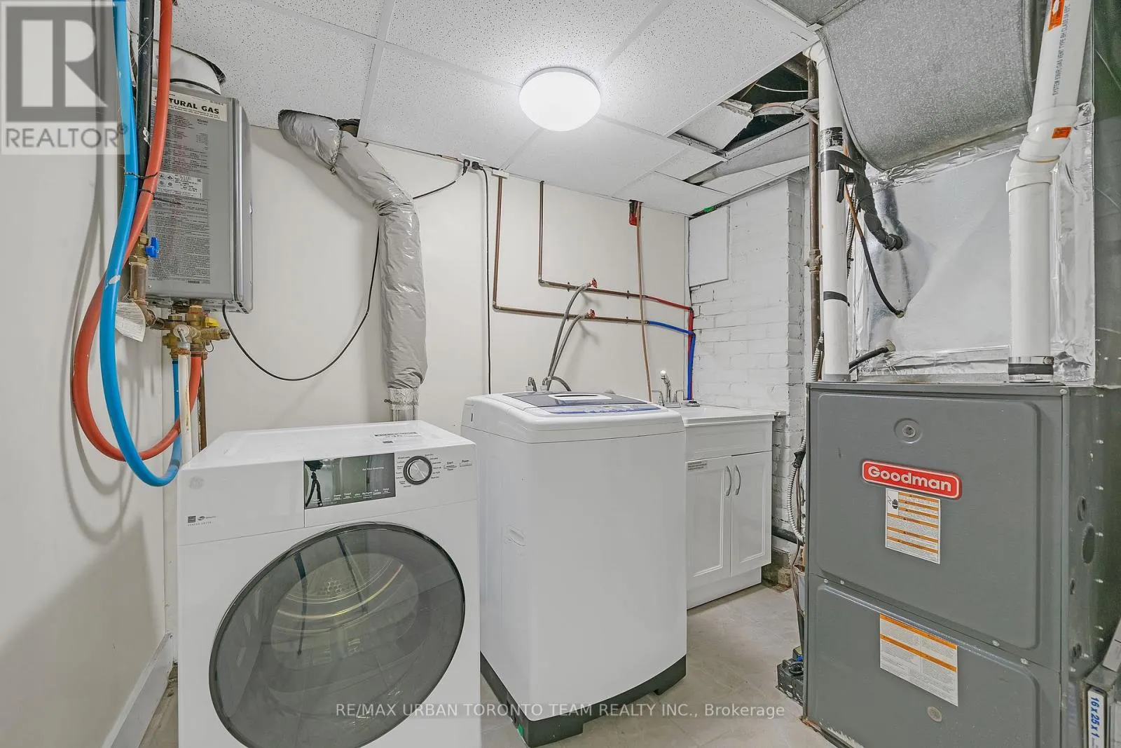 King/Sumach Welcome to 57.5 Sumach St, a fully furnished executive suite set in one of Toronto's most vibrant and charming neighbourhoods. Surrounded by the heritage streets of Cabbagetown, the green spaces of Riverdale Park and the Regent Park Athletic Grounds, and just steps from cafes, transit, and everyday conveniences, this home offers the perfect blend of urban lifestyle and upscale comfort.Inside, the property has been fully renovated from top to bottom. It features fresh paint throughout, all-new windows and a modern front door, new flooring and tiling, updated railings, refinished stairs, and enlarged closet space for added functionality. The bathrooms have been completely redesigned, and the home is equipped with a new dryer, new fridge, and upgraded curtains, blinds, and lighting throughout. Additional improvements include a soundproofed common wall, beautifully refinished interior brickwork, new carpeting on the basement stairs, all interior doors replaced, brand new fencing, upgraded plumbing, and newly completed landscaping that elevates the curb appeal.This executive residence combines thoughtful upgrades with an unbeatable location, creating a turnkey home in the heart of one of Toronto's most desirable communities. (id:27476)