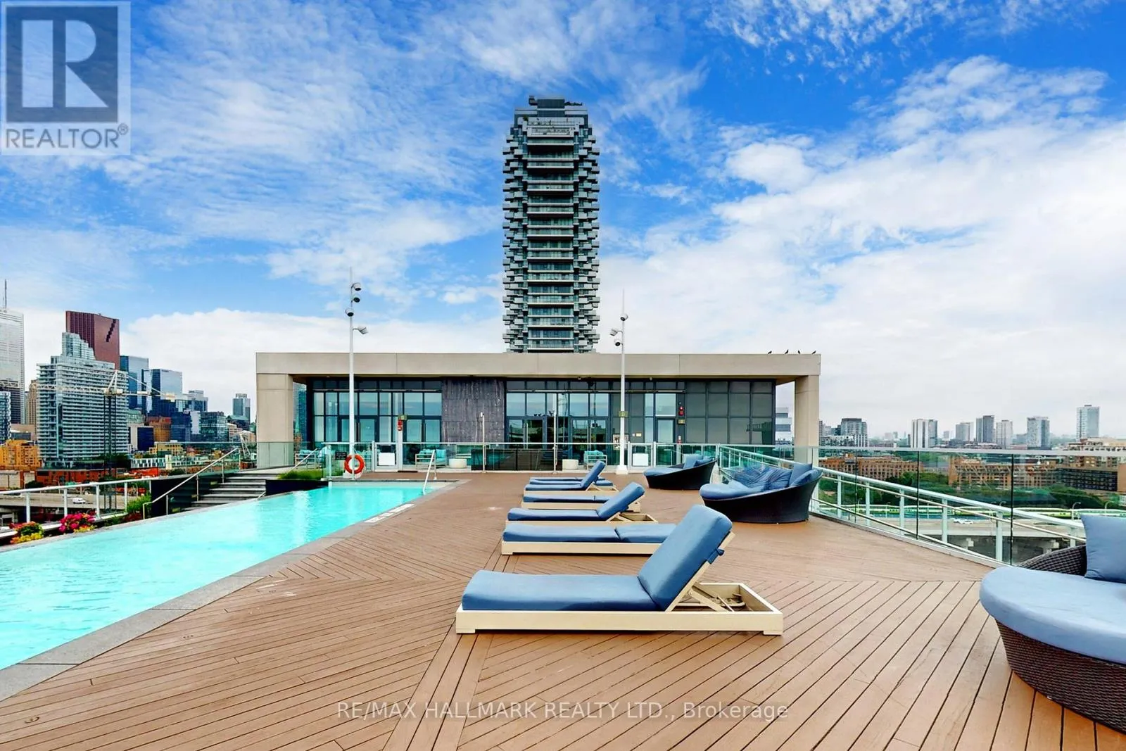 Queen's Quay E & Sherbourne LUXURY CONDO LIVING ALONG TORONTO'S WATERFRONT!!! Located in the heart of Toronto's waterfront community-an impeccably master-planned area right by the water's edge. This 548 Sq.Ft. open-concept unit features 10-foot ceilings throughout, allowing for plenty of natural light. The primary bedroom includes a semi-4-piece ensuite bathroom and his/her mirrored closets. The living room opens onto a balcony, perfect for relaxing or entertaining. The modern, high-end kitchen boasts top-of-the-line built-in appliances and a quartz countertop. Locker Included. Enjoy breathtaking amenities such as a rooftop infinity pool, lounge, party room, fully-equipped gym, yoga studio, theatre room, library, and billiards room. The building also offers 24-hour concierge and security. Steps to the lake, parks, and the Harbourfront Boardwalk. Within walking distance to Union Station, Sugar Beach, Distillery District, St. Lawrence Market, George Brown College, ferry terminal, and with easy access to DVP and Gardiner Expressway. This home has a 99 walk score and is move-in ready. A must-see! (id:27476)