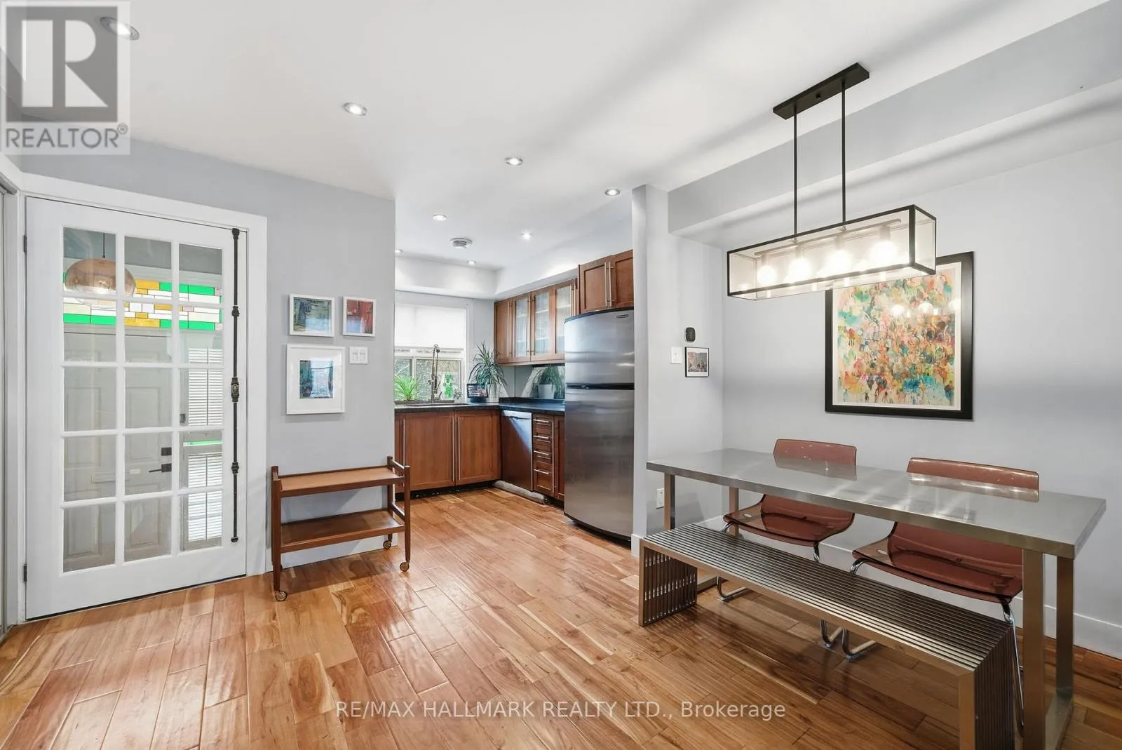 One Way North From Shuter Discover this stunning, executive freehold townhouse in South Cabbagetown- an exceptional opportunity to enjoy urban living with suburban comforts. Embrace a 15-minute city lifestyle in Toronto with this meticulously maintained home featuring rare amenities and modern updates.The property includes an attached garage with parking for one vehicle (and a driveway for a second car) and two outdoor spaces-perfect for relaxing or entertaining. Renovated for style and functionality, major updates include a new roof, renovated bathrooms, seamless hardwood flooring throughout, new garage door, landscaped and fenced backyard, and contemporary interior stairs with stylish new handrails and glass accents, along with ample storage and custom built-ins. The main floor features a large front foyer with a shoe closet and shelving, a modern kitchen flowing into an open-concept living/dining area that opens to the deck and backyard. A rare urban oasis- an outdoor space for family and furry friends to relax. Low-maintenance landscaping makes it easy to enjoy without added chores. The basement offers direct garage access, extra indoor space, and a roughed-in bathroom, ideal for future customization. Upstairs, the family-friendly second floor has two bright bedrooms separated by a semi-ensuite bathroom. The primary suite is a private retreat with a full bathroom and a private rooftop terrace-perfect for enjoying coffee or winding down with a glass of wine in the evening.The walk, bike and transit scores reflect the lifestyle focused location! Only steps to the Distillery District, Toronto Metropolitan University, and transit-including streetcars and a future Ontario Line station-this home puts Toronto's best at your doorstep. In 15 minutes, access Hospital Row, Yonge-Dundas Square, Eaton's Centre, and the Financial District. Blending modern design, renovations, and suburban features, this property offers a rare lifestyle in an unbeatable location! Welcome Home. (id:27476)
