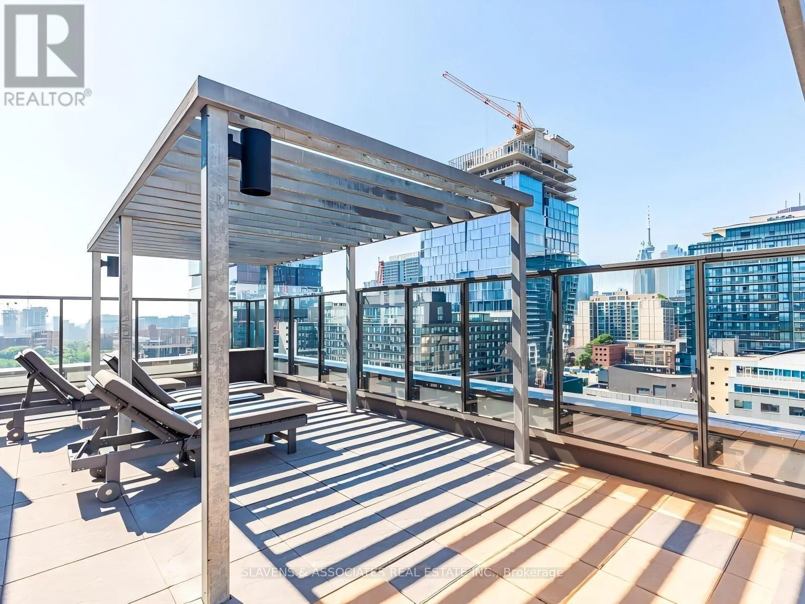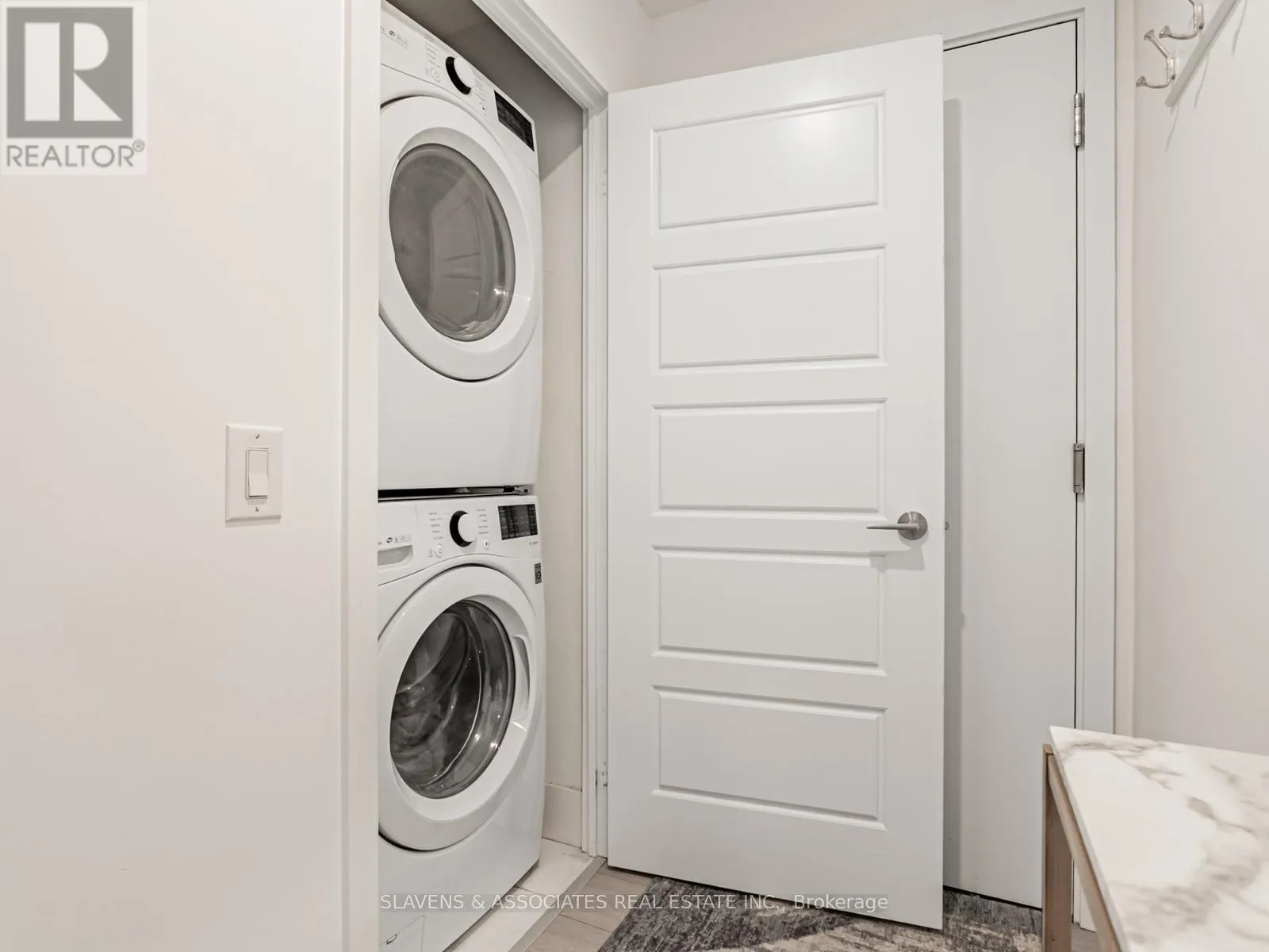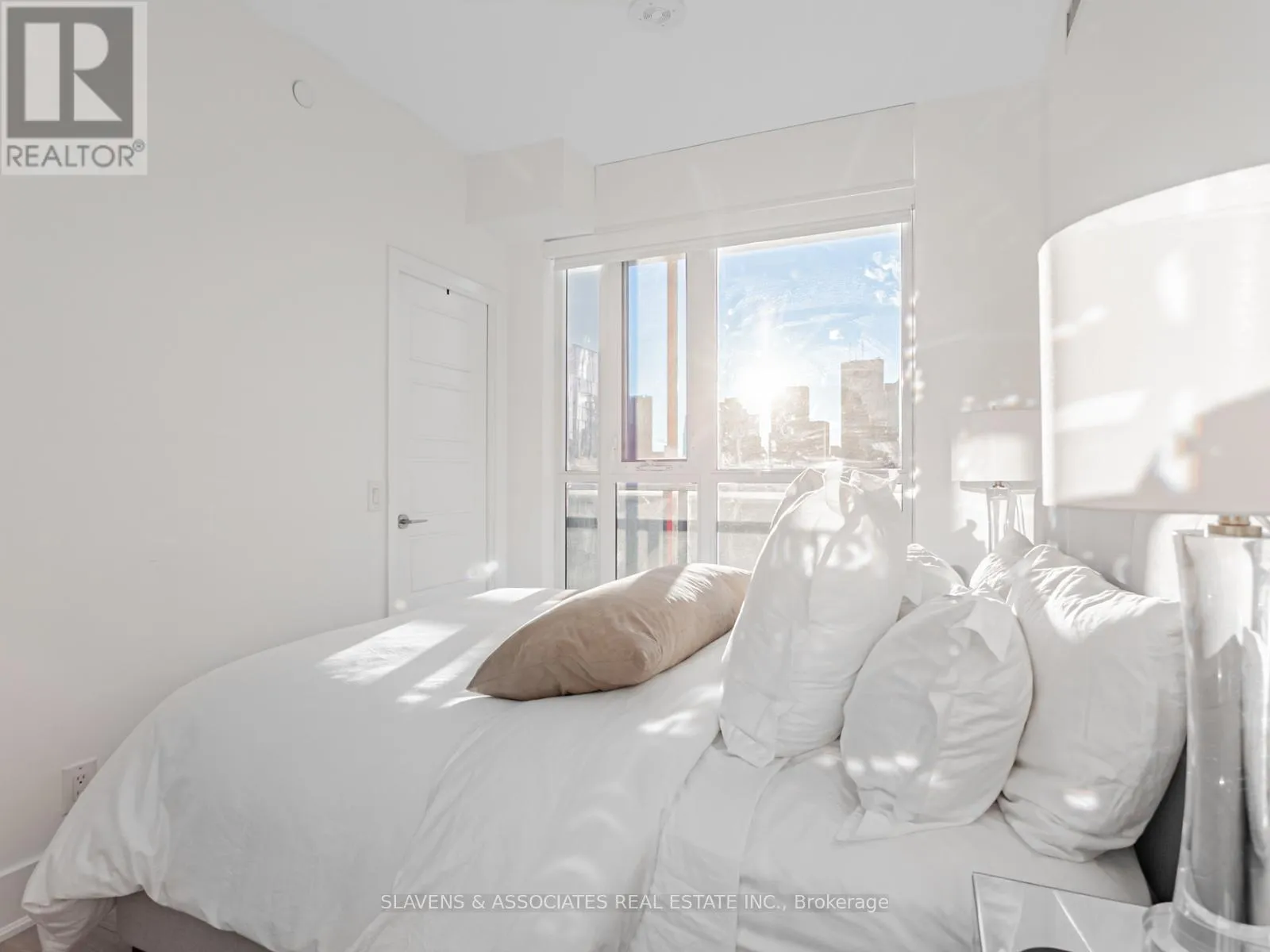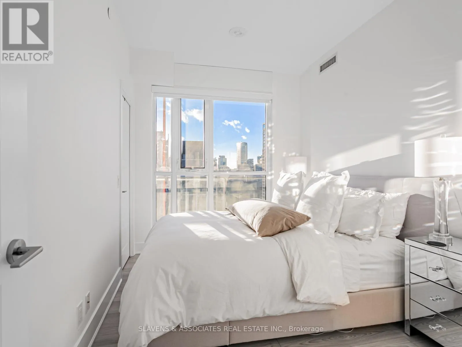 Parliament/Dundas Welcome to East United, where smart design and skyline views define this modern city retreat. This well-planned 2-bedroom, 1-bathroom corner suite makes excellent use of space, featuring a wraparound balcony with sweeping sunset views and clear CN Tower sightlines from both bedrooms. Inside, enjoy an open-concept layout with built-in Bosch appliances, sleek finishes, custom closets throughout for optimized storage, and a bright living area framed by floor-to-ceiling windows. The bedrooms are cozy and inviting, while the spa-inspired bathroom adds a touch of calm and luxury. Owner-occupied since original occupancy and thoughtfully maintained. Some furnishings are available for a turnkey option. Residents have access to exceptional amenities, including a beautifully equipped fitness and yoga studio, rooftop terrace with BBQs, 24-hour concierge, and party room. Ideally located near the Distillery District, St. Lawrence Market, and downtown core. (id:27476)