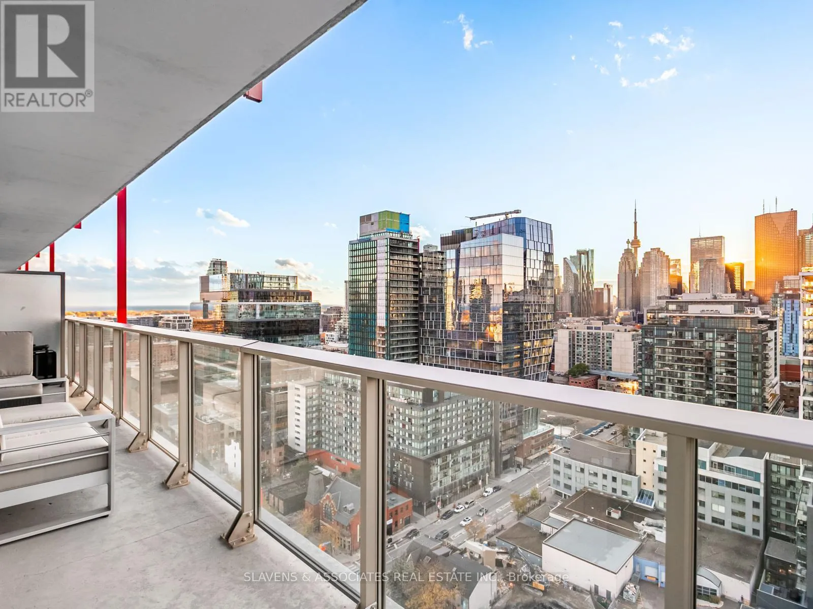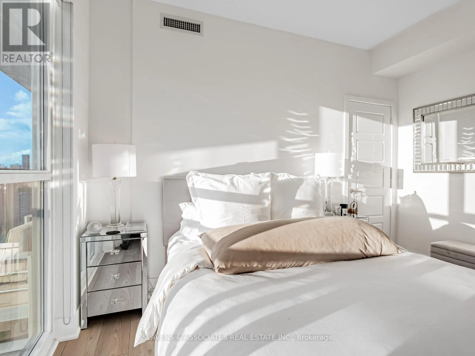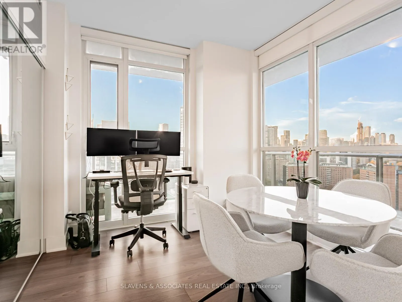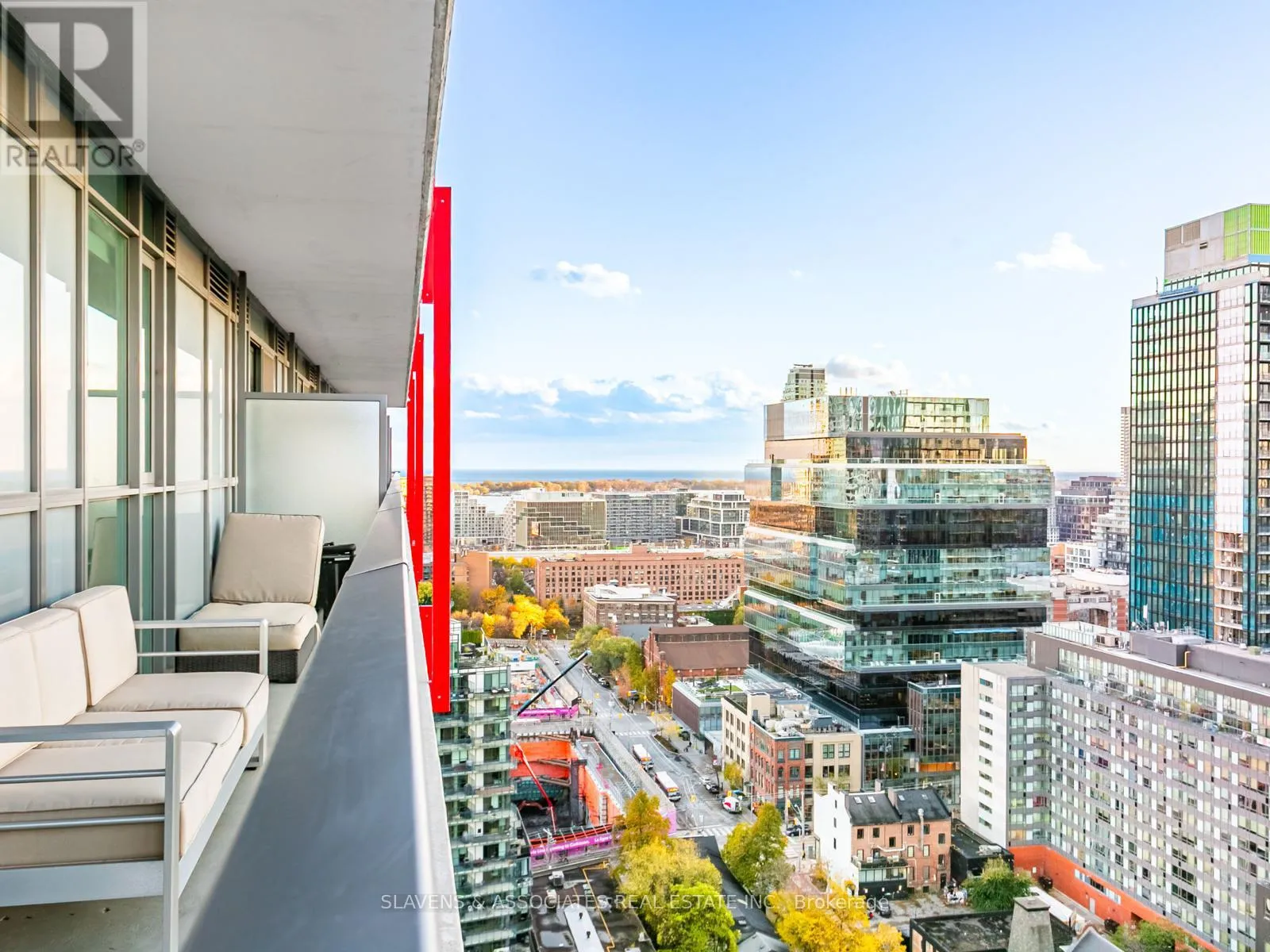 Parliament/Dundas Welcome to East United, where smart design and skyline views define this modern city retreat. This well-planned 2-bedroom, 1-bathroom corner suite makes excellent use of space, featuring a wraparound balcony with sweeping sunset views and clear CN Tower sightlines from both bedrooms. Inside, enjoy an open-concept layout with built-in Bosch appliances, sleek finishes, custom closets throughout for optimized storage, and a bright living area framed by floor-to-ceiling windows. The bedrooms are cozy and inviting, while the spa-inspired bathroom adds a touch of calm and luxury. Owner-occupied since original occupancy and thoughtfully maintained. Some furnishings are available for a turnkey option. Residents have access to exceptional amenities, including a beautifully equipped fitness and yoga studio, rooftop terrace with BBQs, 24-hour concierge, and party room. Ideally located near the Distillery District, St. Lawrence Market, and downtown core. (id:27476)