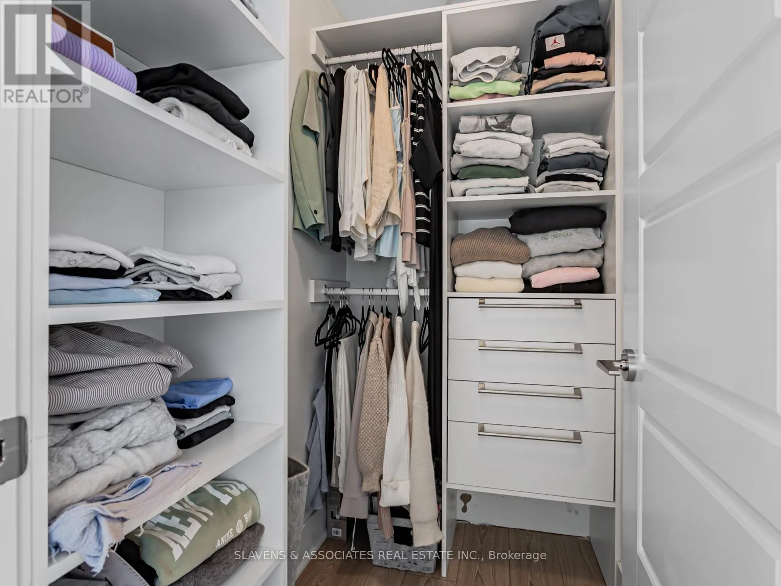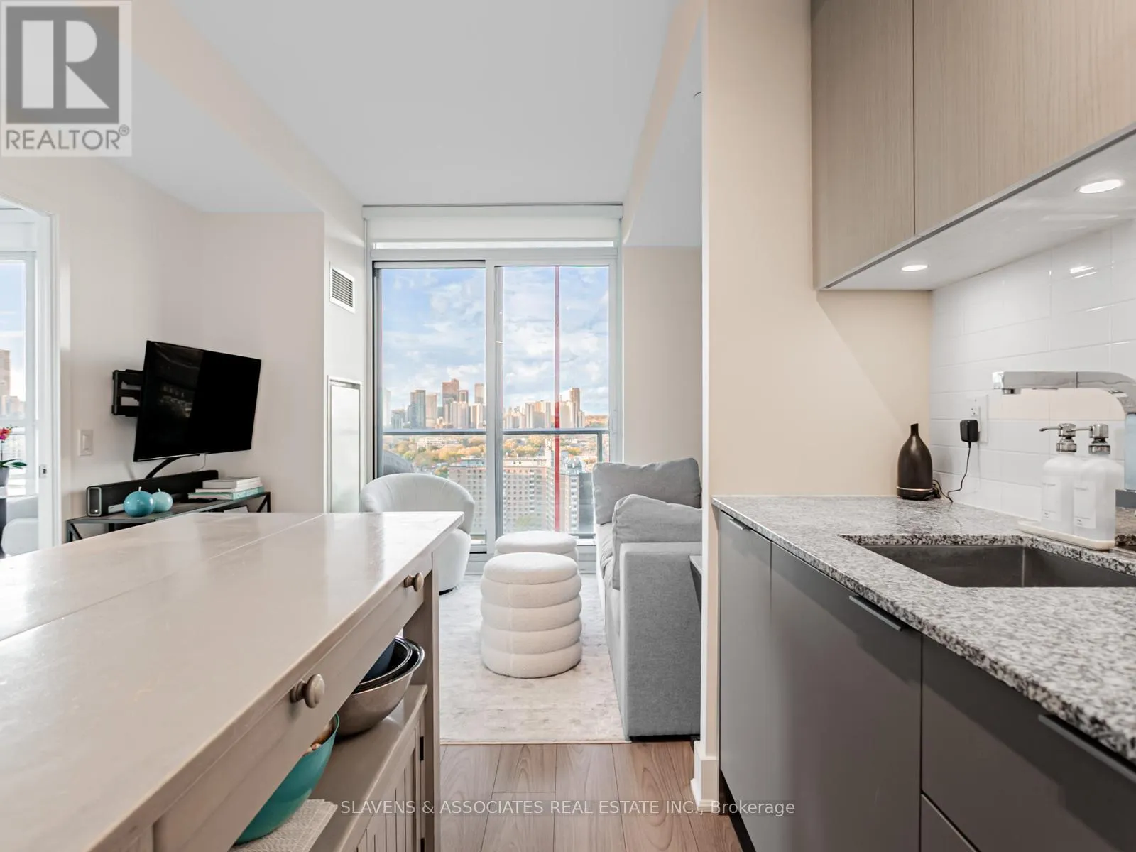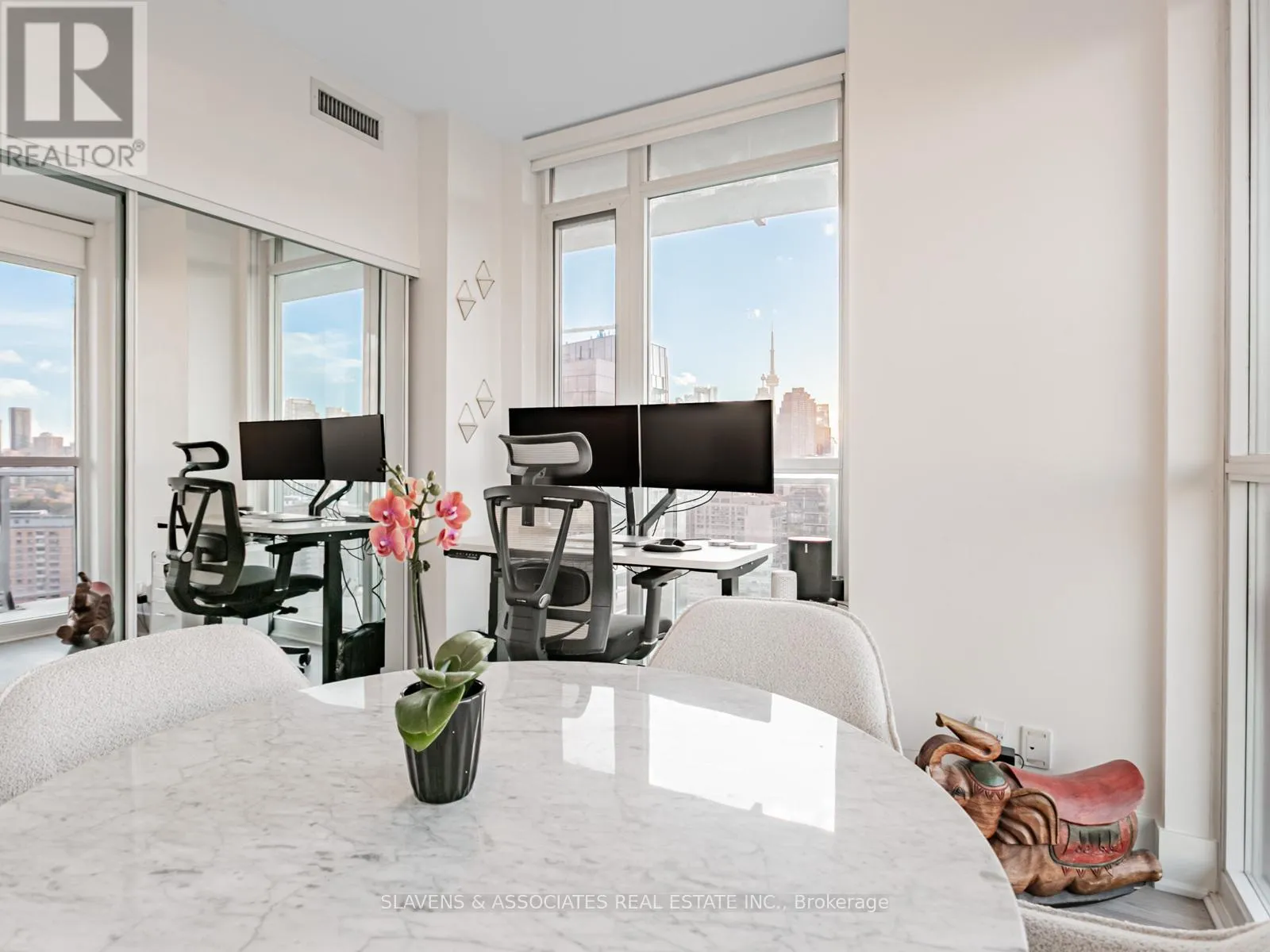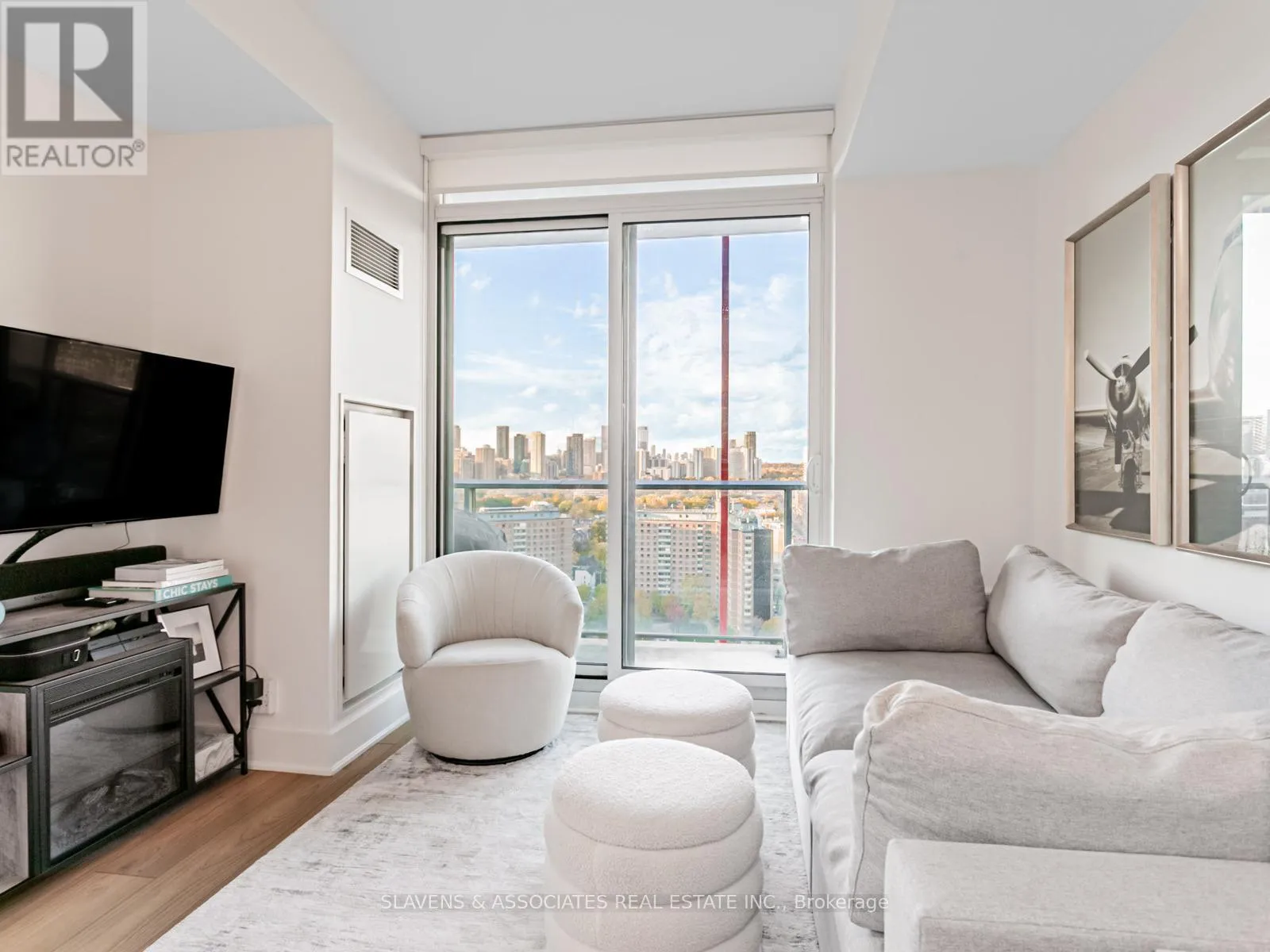 Parliament/Dundas Welcome to East United, where smart design and skyline views define this modern city retreat. This well-planned 2-bedroom, 1-bathroom corner suite makes excellent use of space, featuring a wraparound balcony with sweeping sunset views and clear CN Tower sightlines from both bedrooms. Inside, enjoy an open-concept layout with built-in Bosch appliances, sleek finishes, custom closets throughout for optimized storage, and a bright living area framed by floor-to-ceiling windows. The bedrooms are cozy and inviting, while the spa-inspired bathroom adds a touch of calm and luxury. Owner-occupied since original occupancy and thoughtfully maintained. Some furnishings are available for a turnkey option. Residents have access to exceptional amenities, including a beautifully equipped fitness and yoga studio, rooftop terrace with BBQs, 24-hour concierge, and party room. Ideally located near the Distillery District, St. Lawrence Market, and downtown core. (id:27476)