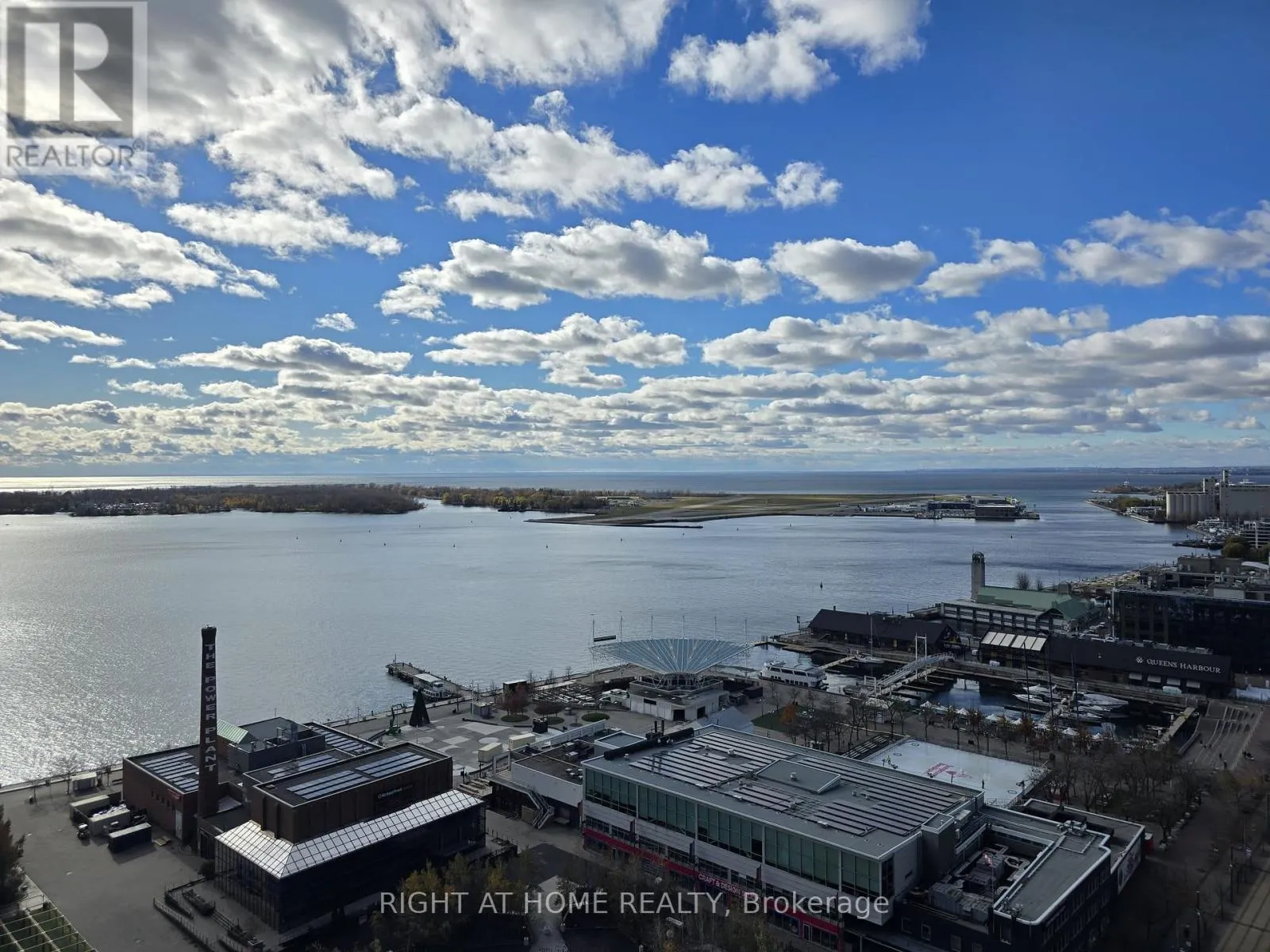 Cross Streets: York St & Queens Quay W. ** Directions: Google Maps. Welcome to Water Club II - South Tower, one of Toronto's premier waterfront residences. This stunning one-bedroom suite offers a breathtaking, unobstructed 180 southwest panorama of Lake Ontario, the Toronto Islands, the harbour, and nightly sunsets through expansive floor-to-ceiling windows. A bright, airy open-concept layout with 9 ft ceilings, elegant laminate flooring, granite kitchen counters with breakfast bar, stainless steel appliances, and a spacious bedroom with generous closet space creates an inviting and luxurious living experience elevated by the remarkable view. Live directly on the Queens Quay promenade in the heart of the Harbourfront with unrivalled access to waterfront parks, the marina, cultural programming at Harbourfront Centre, the boardwalk, bike/jogging paths, the ferry terminal, restaurants, cafés, and vibrant year-round amenities. Exceptional convenience: Farm Boy, Longo's, Loblaws, Starbucks, transit, the PATH, Union Station, Financial District, Scotiabank Arena, Rogers Centre, and Billy Bishop Airport are all within a short walk, making this one of the most connected and desirable locations in the city. A rare advantage in today's rental market: all utilities are included-heat, hydro, water, and air conditioning-offering outstanding value and predictable monthly living costs. Residents of Water Club II enjoy a superior amenity package with 24-hour concierge, an impressive indoor/outdoor pool with sundeck, fully equipped fitness centre, sauna/steam rooms, party room, billiards room, guest suites, and a landscaped rooftop terrace with BBQ areas. Experience the best of Toronto's waterfront lifestyle in a high-floor suite that delivers luxury, convenience, and spectacular lakefront living. (id:27476)