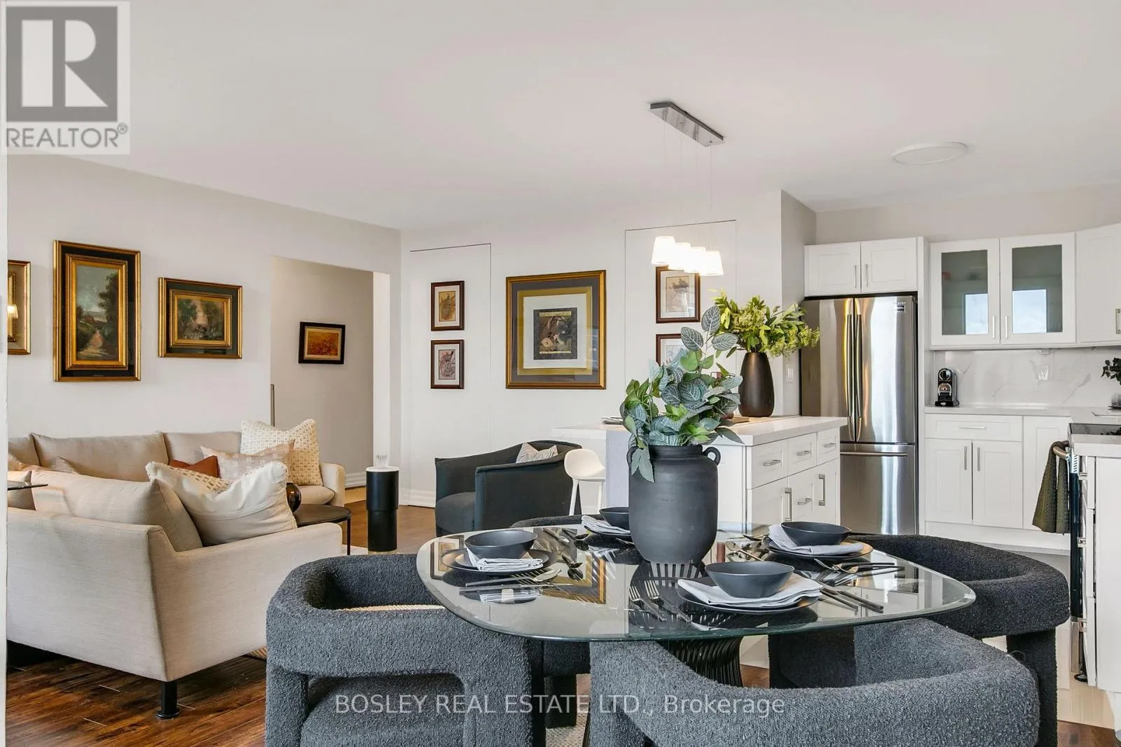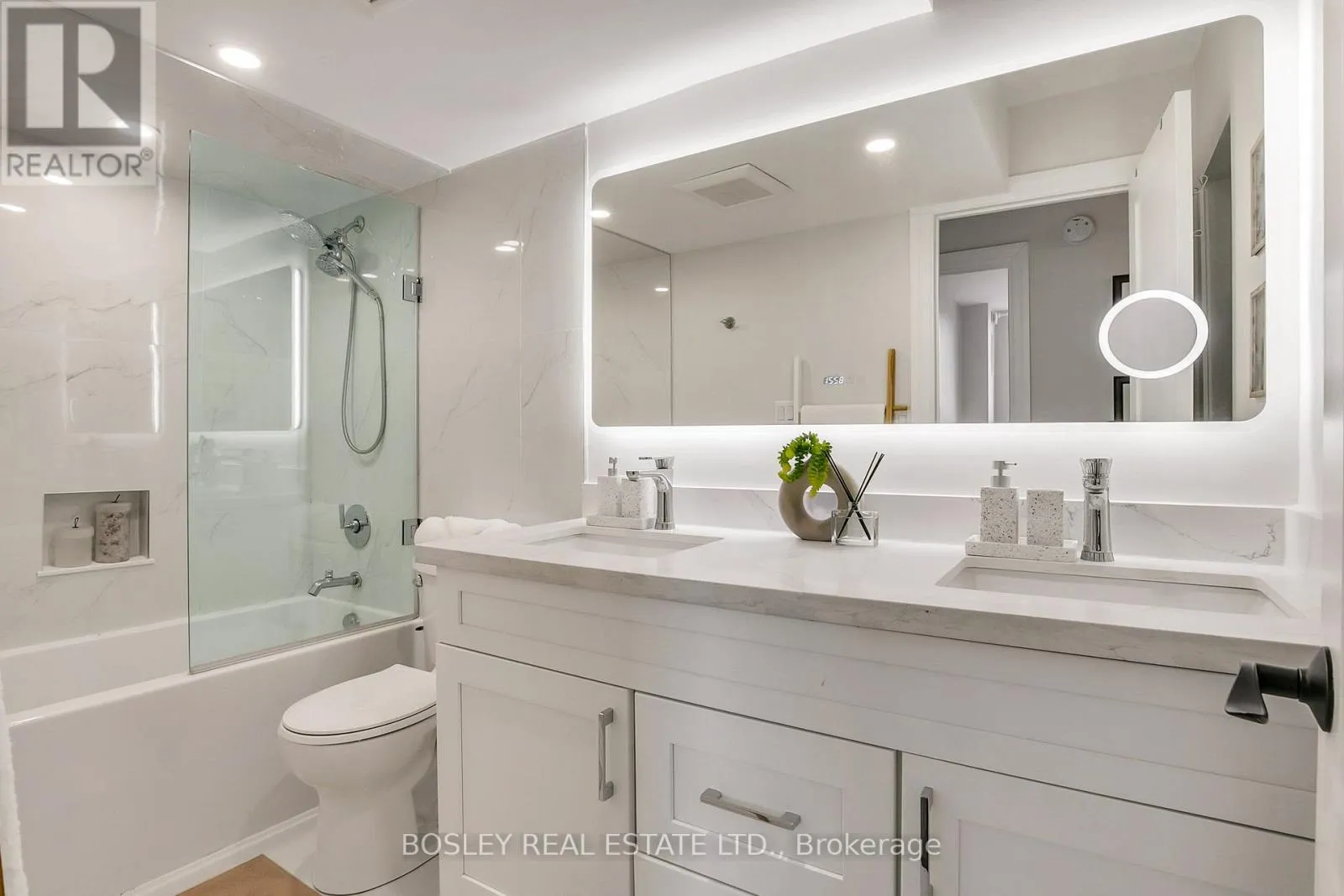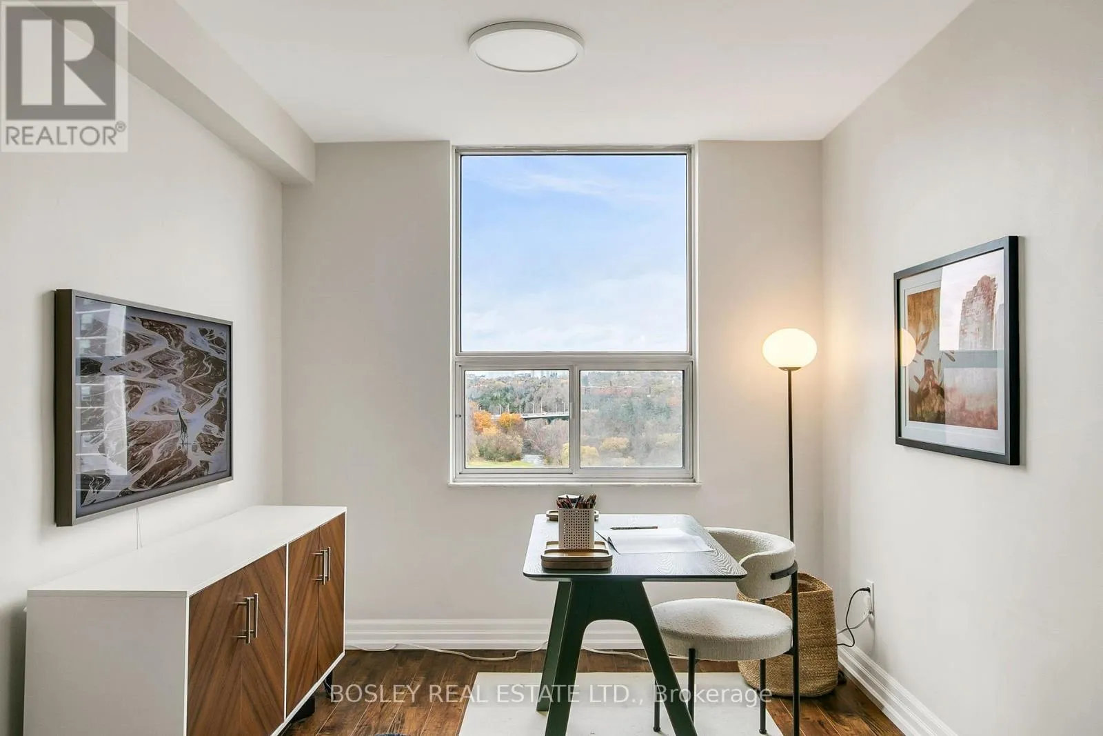 Cross Streets: Don Mills Rd. & Eglinton St. East. ** Directions: Don Mills & Eglinton St. East. Life on the Edge - of the Don Valley's lush tree canopy, fairways, and the city. Perched above lush treetops at 10 Edgecliff Golfway, Suite 1411 offers a serene vantage point overlooking golf greens, winding trails, and the natural rhythm of the Don Valley. This fully reimagined and renovated 2-bedroom plus den residence blends thoughtful design, modern comforts, and practical luxury. Every corner of Suite 1411 has been renewed: wide-plank flooring, a airy and gleaming new kitchen with custom cabinetry, quartz counters, custom island, and stainless-steel appliances; an expanded, hotel-inspired bathroom with modern fixtures and upgrades. A complete electrical transformation and new HVAC system ensure efficiency and comfort. Thoughtful touches-like reconfigured storage closet and a cleverly-concealed laundry room, both featuring hidden doorways, bring smart design to everyday routines. One parking space is included, and convenience abounds beyond 10 Edgecliff's doorstep - minutes to the Don Valley Parkway, shopping at the Golden Mile, and the cultural treasures of the Aga Khan Museum. Nestled in a park-like pocket yet perfectly connected to everything, this is where modern living meets the city + nature's edge. (id:27476)
