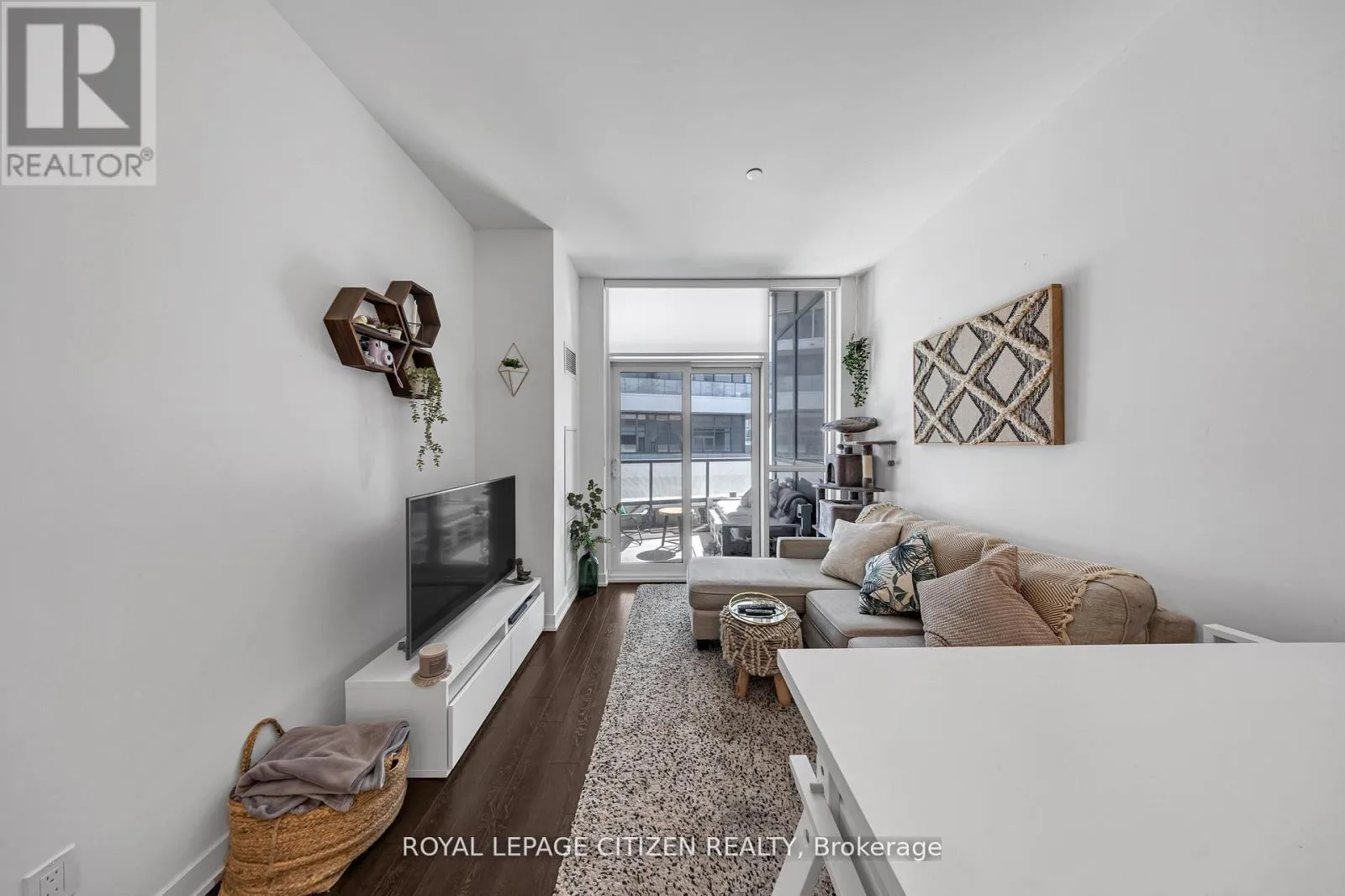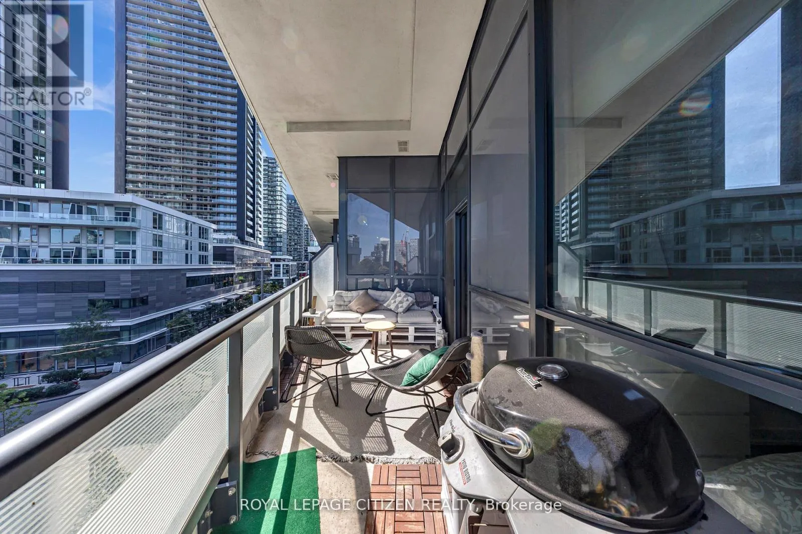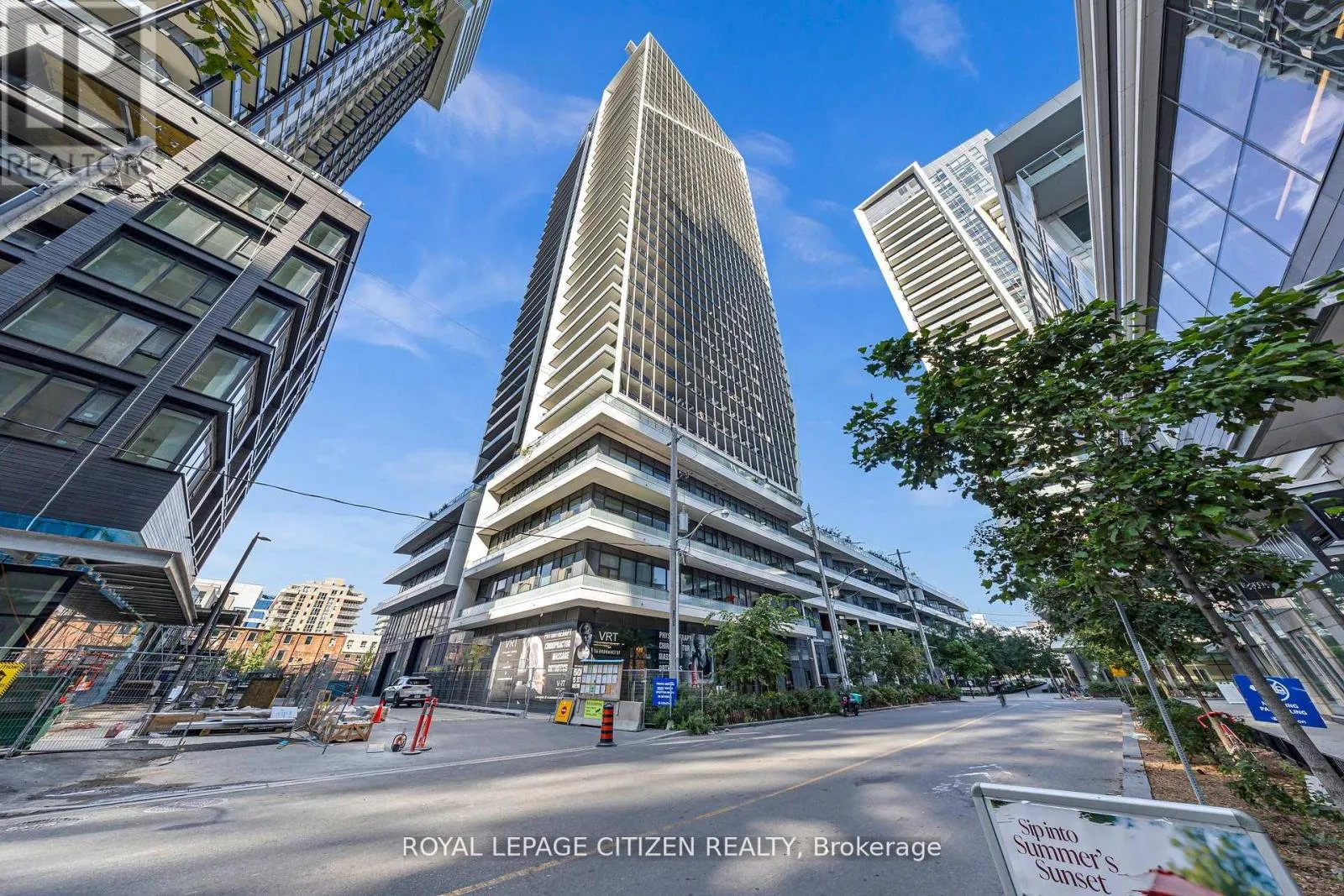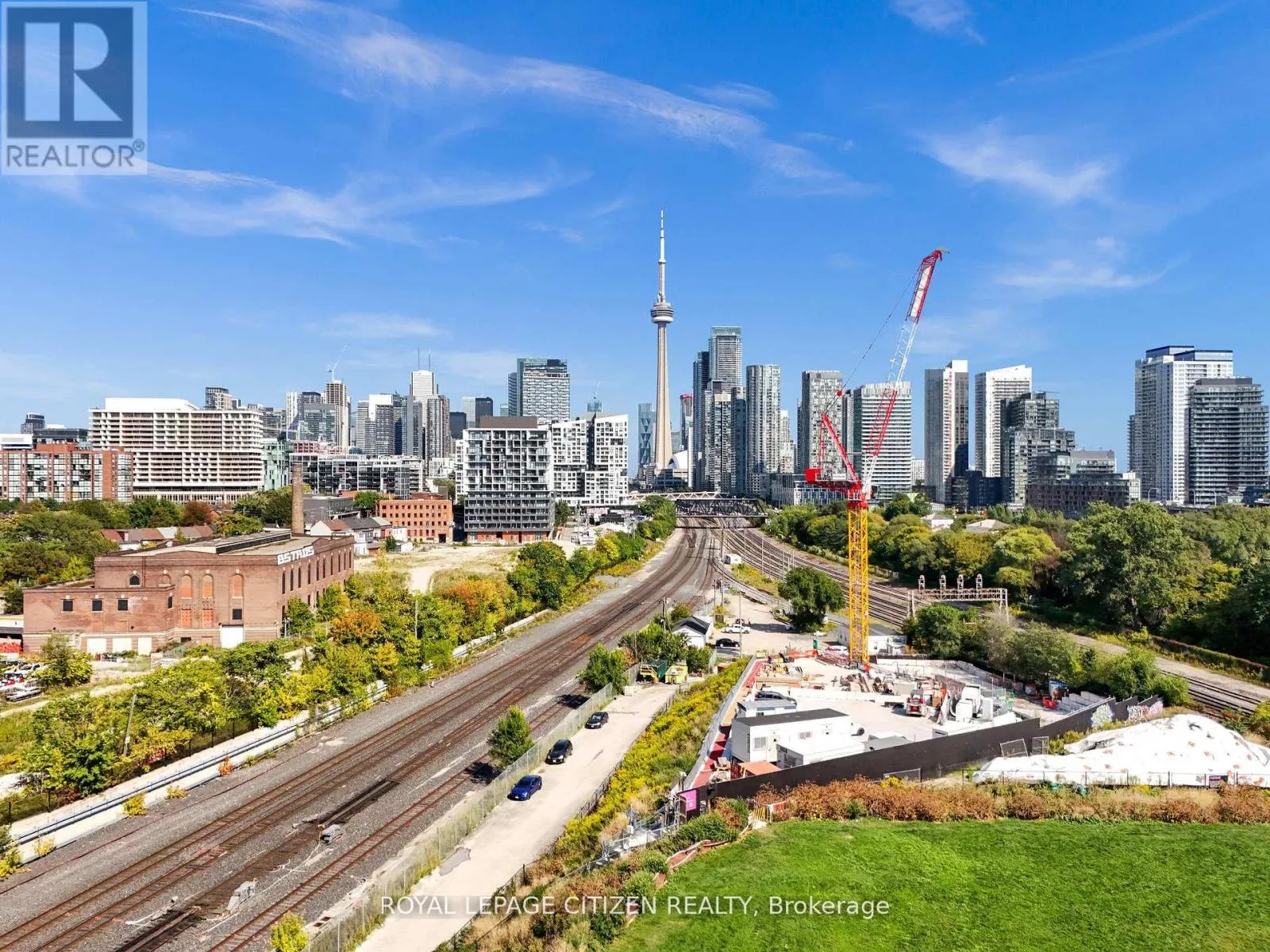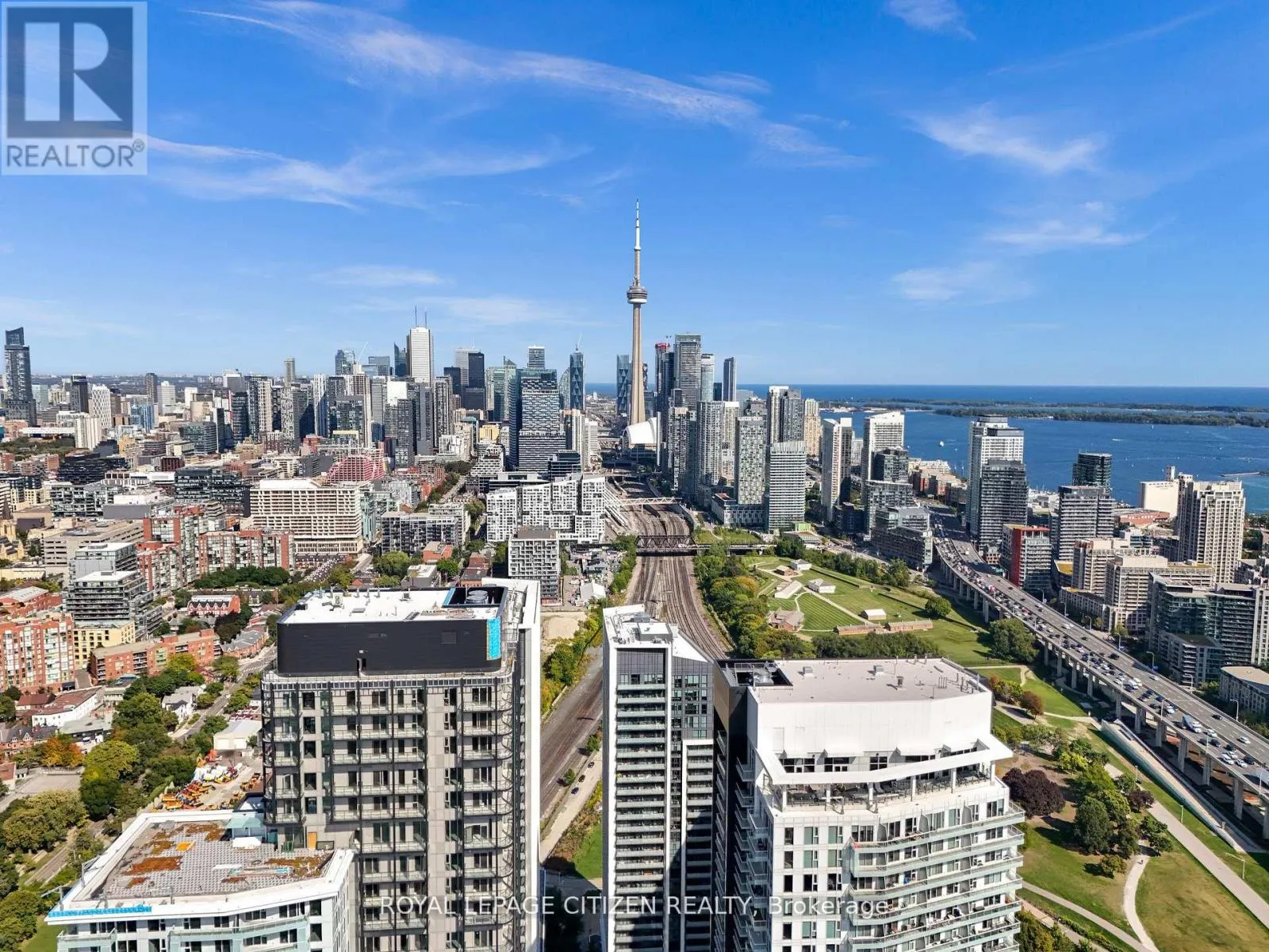 King & Strachan Stunningly designed condo just moments from Liberty Village and King West! This exceptional unit features 680 sqft. of thoughtfully laid-out living space, including a spacious den, two bathrooms, and a private balcony. This unit boasts approximately $5,000 in premium upgrades which includes laminate flooring throughout, quartz counter top, under mount lighting in kitchen and backsplash. Second washroom includes massive glass shower. This unit comes with one parking spot. Enjoy breathtaking panoramic views of the Toronto skyline, including unobstructed views of the CN Tower and Lake! (id:27476)