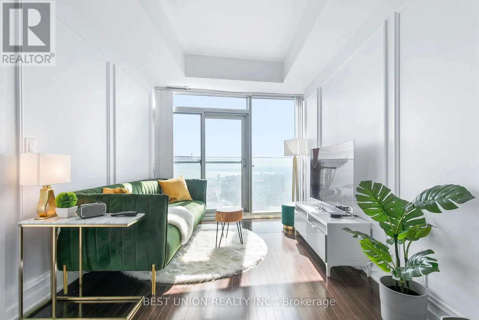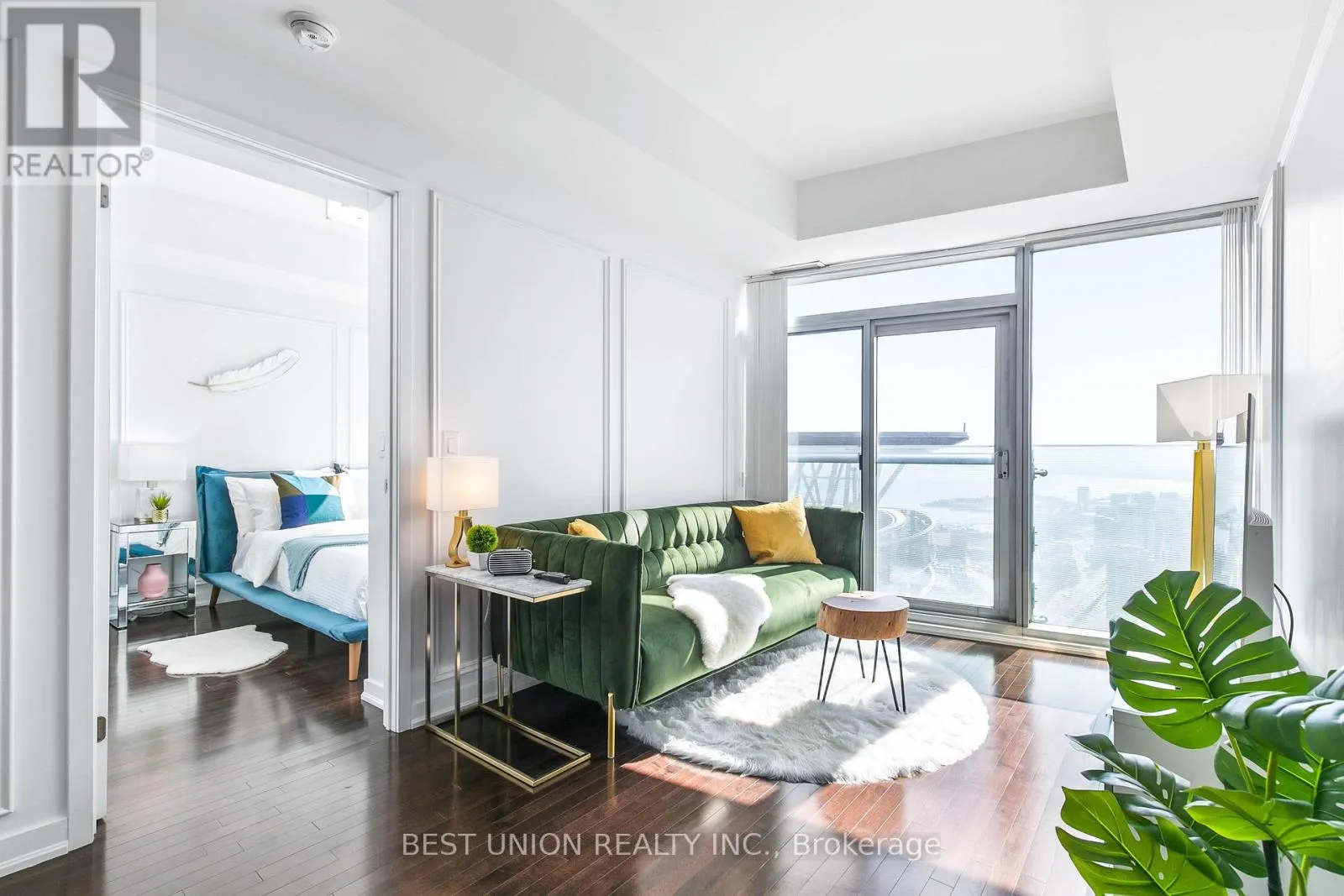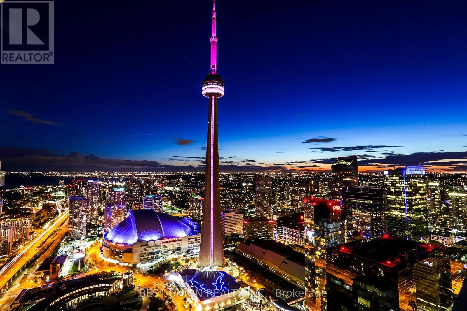 Cross Streets: York/Bremner. ** Directions: West side of York St. Welcome to ICE Condo 2 at York Centre, an inspired luxury residence combining urban living with waterfront tranquility. This rare 64th-floor unit offers 677 square feet of thoughtfully designed space featuring a premium 1+1 layout, easily convertible into a functional two-bedroom setup. Perched high above the city, the unit showcases breathtaking panoramic views of the Toronto skyline and mesmerizing city lights at night. Finished with hardwood flooring throughout, this unit includes one parking space and one locker for added convenience. Enjoy soaring 9-foot ceilings, floor-to-ceiling windows, and unobstructed west-facing views of the CN Tower and downtown core. The modern kitchen is equipped with high-end finishes, perfectly suited for contemporary lifestyles. Direct PATH access connects you effortlessly to Union Station, Rogers Centre, and other downtown landmarks. Exceptional amenities include a fitness centre, indoor pool, sauna, party room, and 24-hour concierge service. An outstanding opportunity to experience elevated living in one of Torontos most iconic developments. (id:27476)