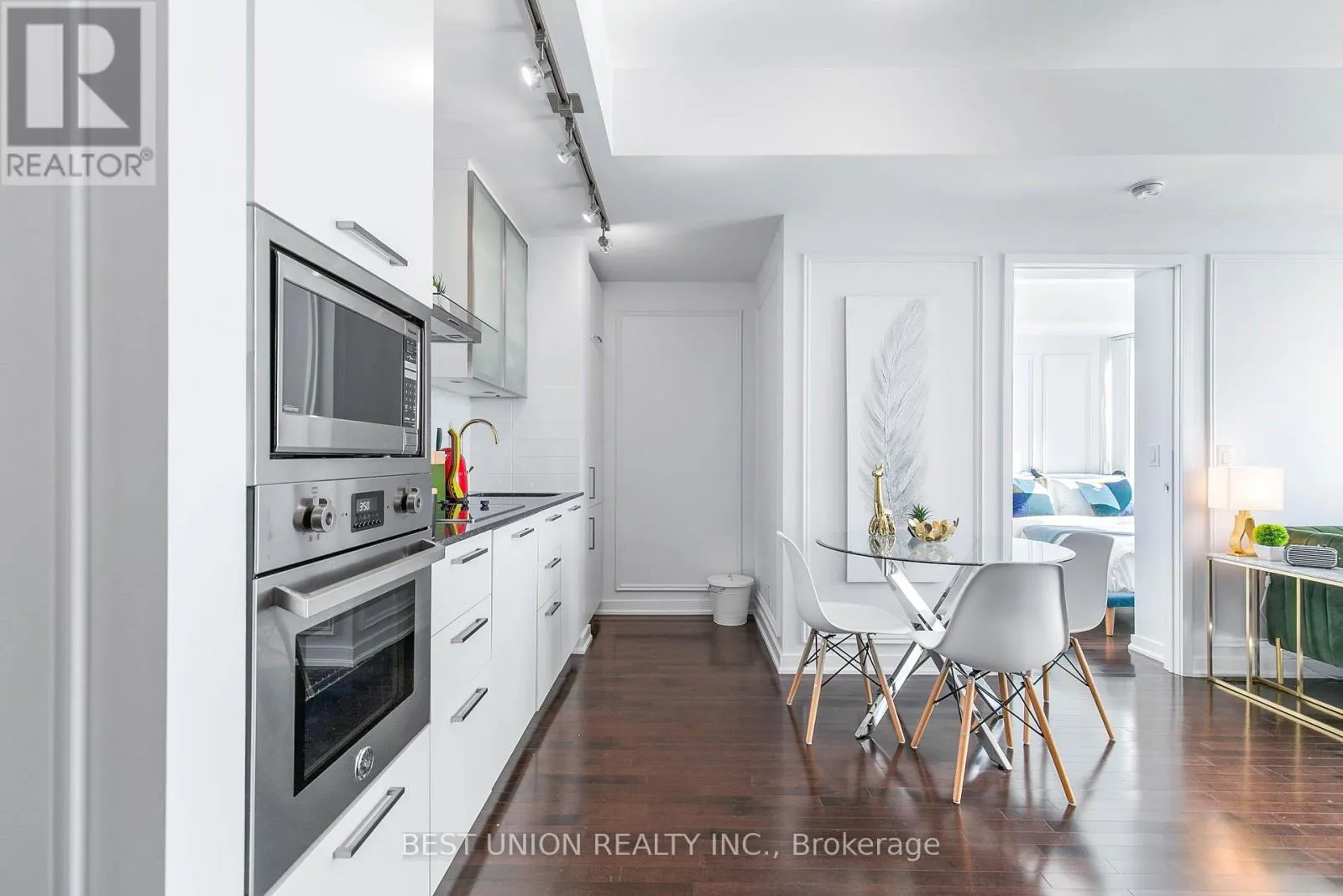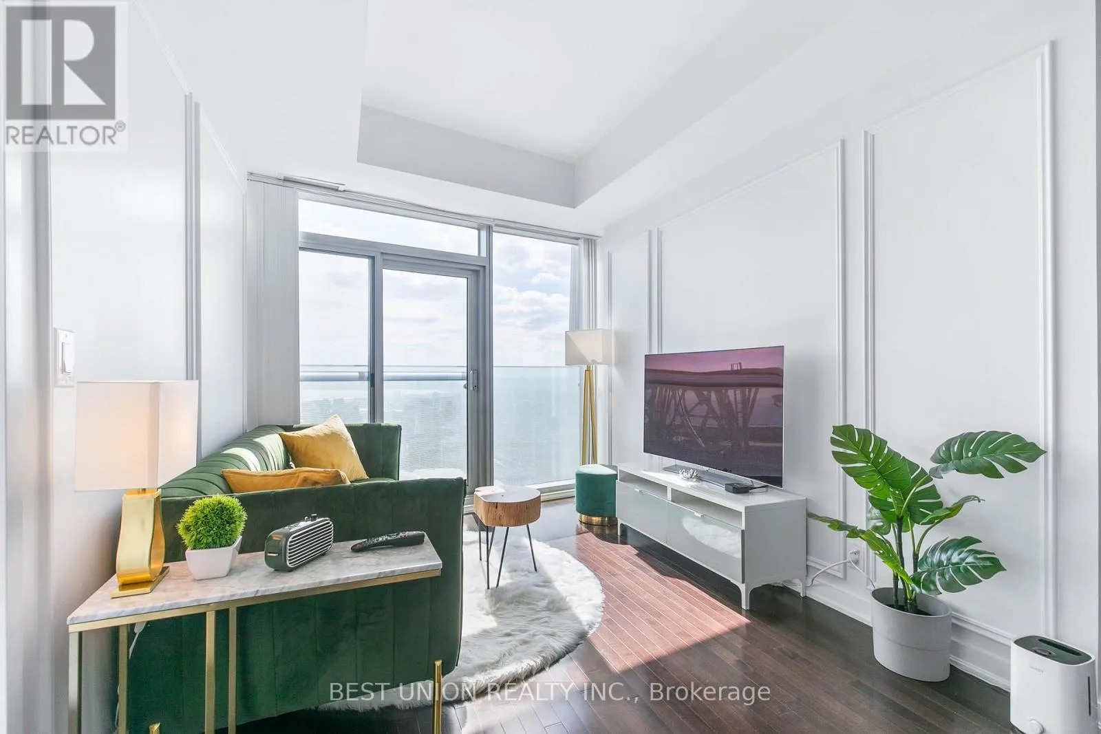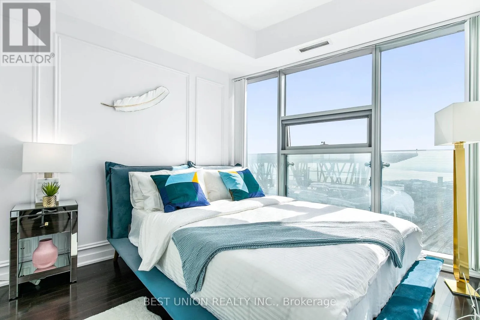 Cross Streets: York/Bremner. ** Directions: West side of York St. Welcome to ICE Condo 2 at York Centre, an inspired luxury residence combining urban living with waterfront tranquility. This rare 64th-floor unit offers 677 square feet of thoughtfully designed space featuring a premium 1+1 layout, easily convertible into a functional two-bedroom setup. Perched high above the city, the unit showcases breathtaking panoramic views of the Toronto skyline and mesmerizing city lights at night. Finished with hardwood flooring throughout, this unit includes one parking space and one locker for added convenience. Enjoy soaring 9-foot ceilings, floor-to-ceiling windows, and unobstructed west-facing views of the CN Tower and downtown core. The modern kitchen is equipped with high-end finishes, perfectly suited for contemporary lifestyles. Direct PATH access connects you effortlessly to Union Station, Rogers Centre, and other downtown landmarks. Exceptional amenities include a fitness centre, indoor pool, sauna, party room, and 24-hour concierge service. An outstanding opportunity to experience elevated living in one of Torontos most iconic developments. (id:27476)