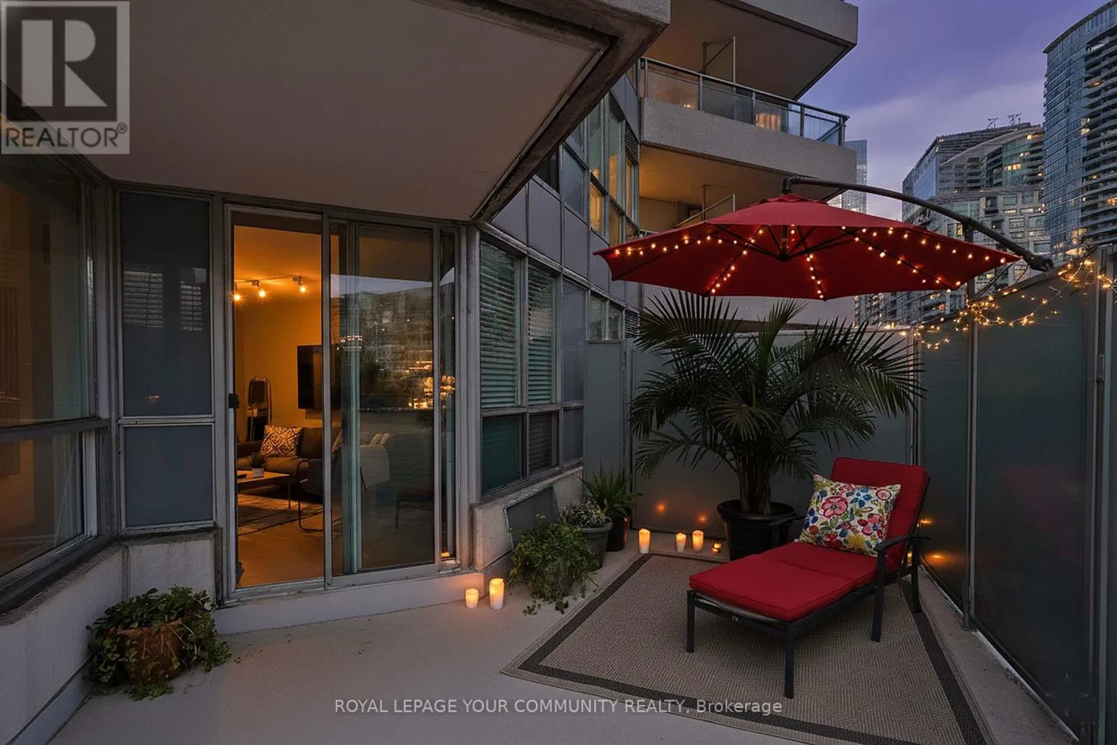 Cross Streets: Lower Simcoe St. ** Directions: West of Lower Simcoe. Experience unparalleled luxury in this meticulously updated residence, highlighted by a private, exclusive 1,000 SF terrace. Enjoy breathtaking, panoramic views of the city skyline and the lake, providing a spectacular backdrop for sophisticated entertaining and tranquil relaxation.The sleek interiors feature an updated kitchen and bathroom, along with elegant new flooring. The principal bedroom easily accommodates a king-sized bed and offers generous, mirrored closet space. Maintenance includes all utilities for a truly effortless lifestyle. Complete with ensuite laundry/storage, an external locker, and parking. Perfectly located steps from waterfront parks, trails, and transit. (id:27476)