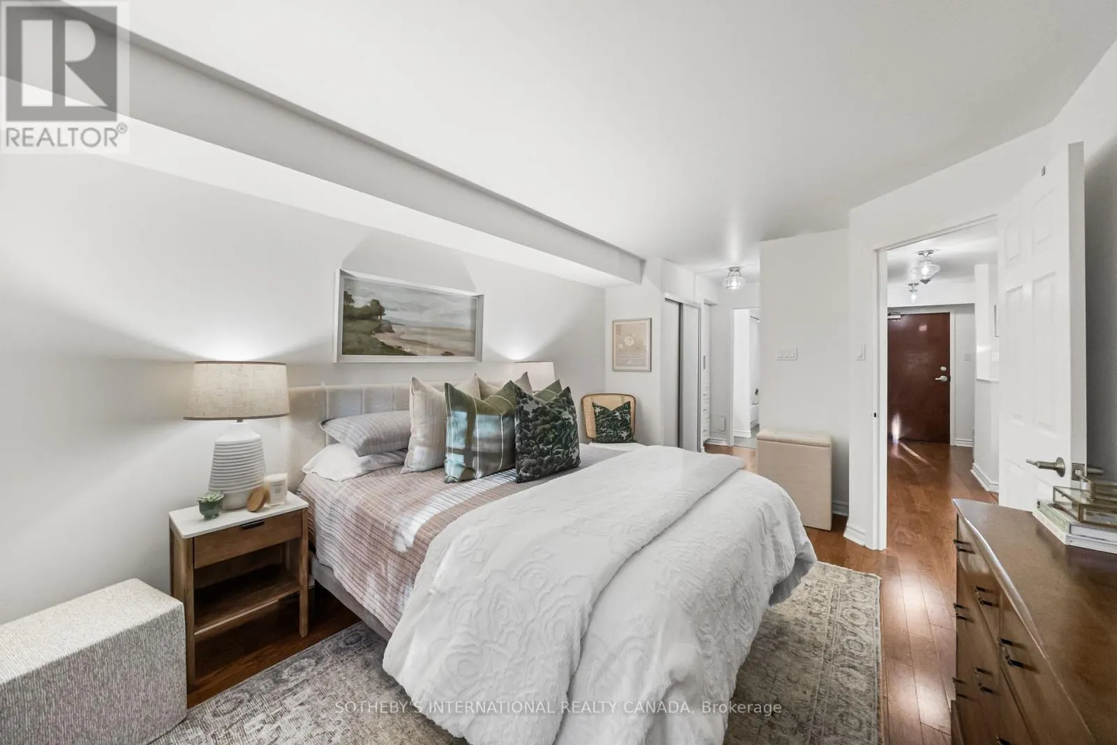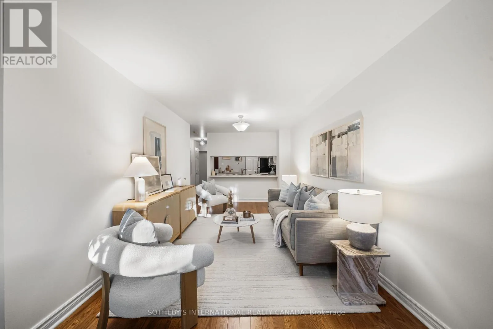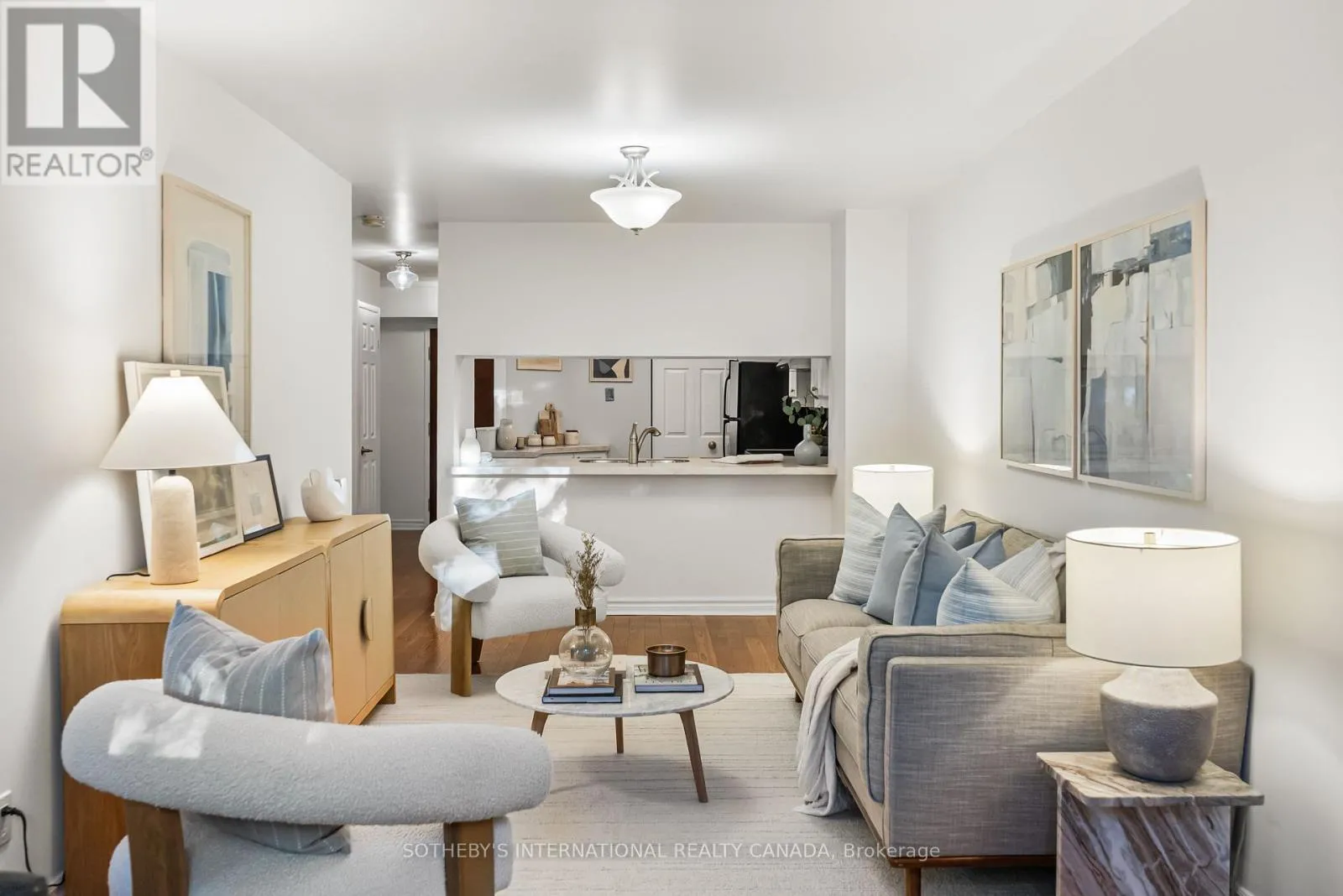 Cross Streets: Mcrae & Laird. ** Directions: Follow your GPS. Welcome to Suite 209 at The Randolph in Leaside Nestled among the treetops, this beautifully updated and exceptionally spacious one-bedroom and den offers over 850 square feet of well-planned living. Perfect for first time buyers or those looking to downsize without compromise, this suite features expansive living and dining areas, a bright sunroom-style den, and thoughtful storage throughout. The updated kitchen is both functional and inviting, complete with stainless steel appliances, and a convenient breakfast bar-ideal for casual dining or morning coffee. The large living and dining rooms easily accommodate full-sized furnishings, while the sunlit den offers the perfect spot for reading, working, or relaxing. The generous primary bedroom includes customized his-and-hers California Closet built-ins and semi-ensuite access to a well-appointed four-piece bath. A full-sized laundry room with additional storage adds to the suite's exceptional practicality. The Randolph is a quiet, boutique-style low-rise with a strong sense of community and long-term residents. Amenities include a party room, exercise room, residents' lounge and a beautiful private terrace with barbecue and lounge area. Located just steps from Leaside village and minutes from Trace Manes Park, Leaside Library, and the Eglinton Crosstown, this location can't be beat. (id:27476)