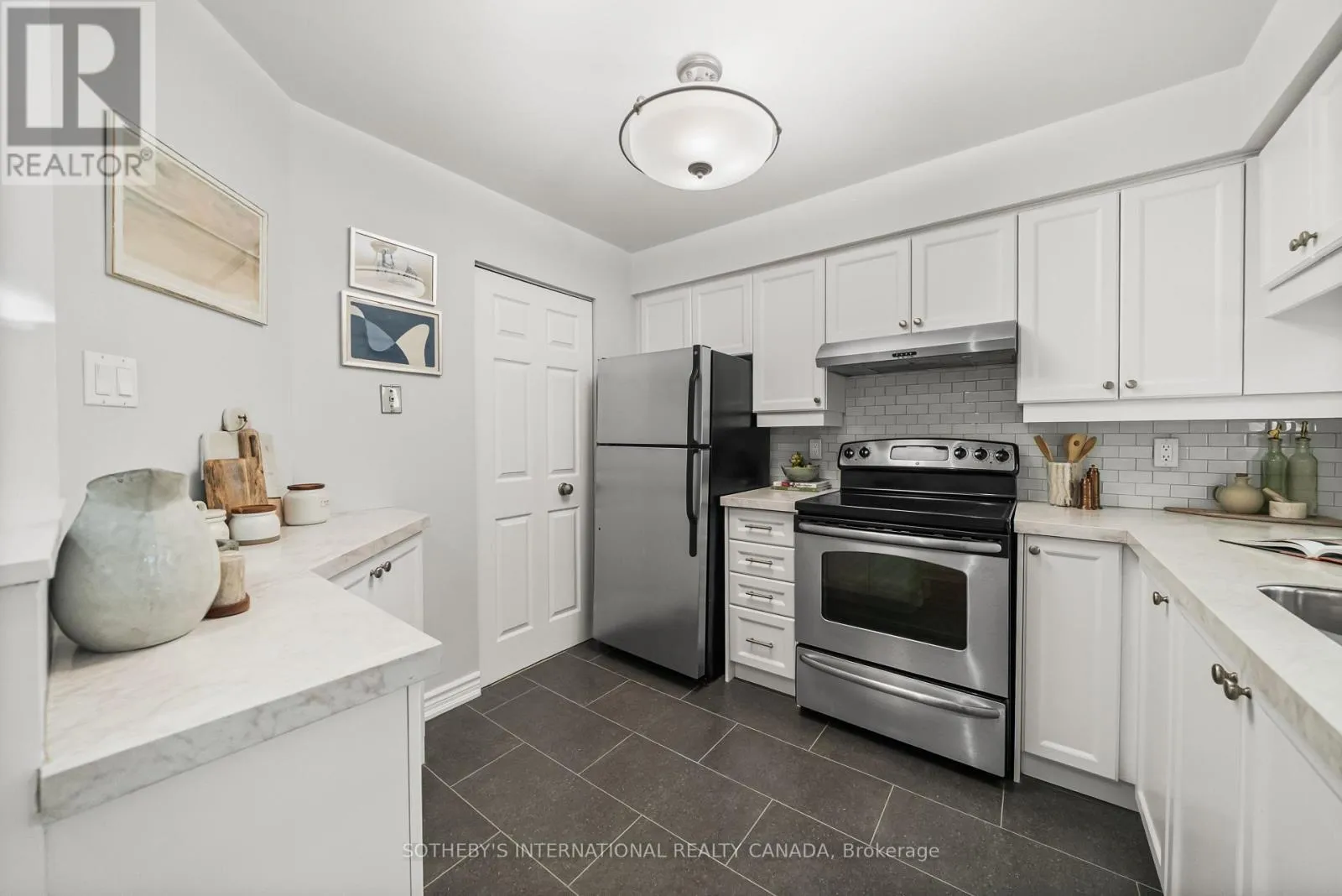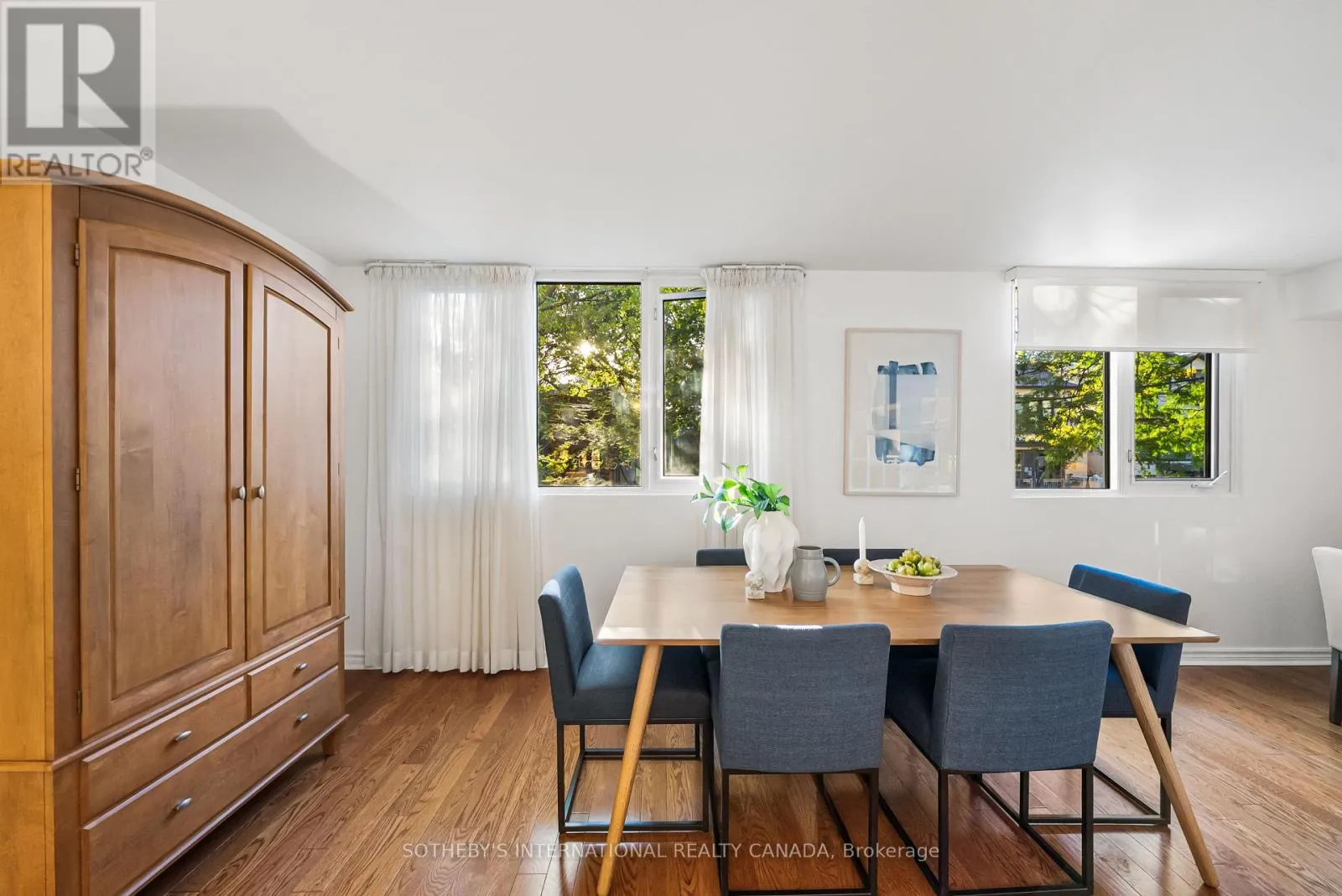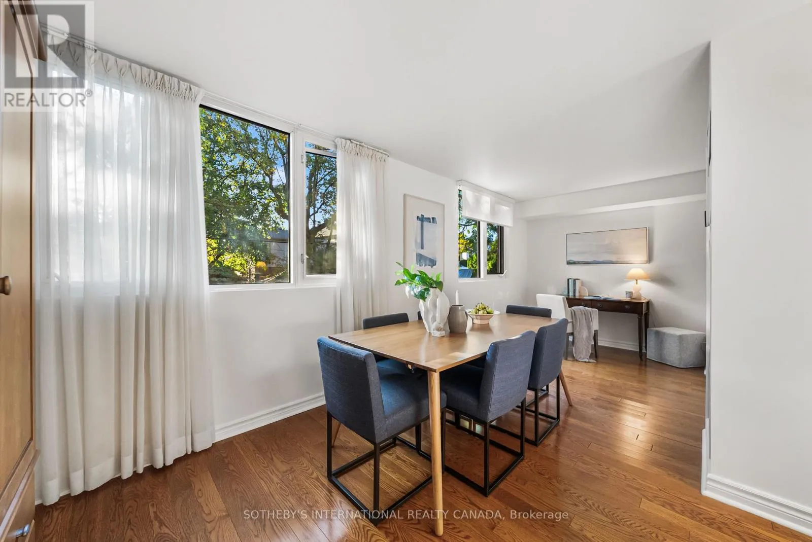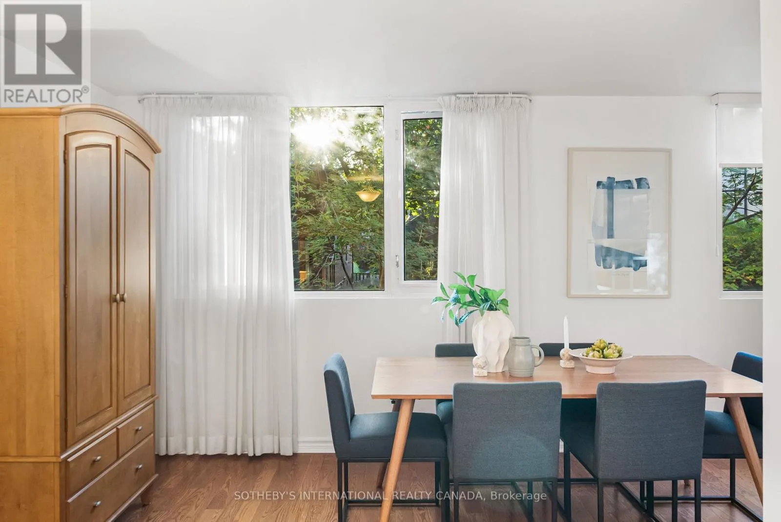 Cross Streets: Mcrae & Laird. ** Directions: Follow your GPS. Welcome to Suite 209 at The Randolph in Leaside Nestled among the treetops, this beautifully updated and exceptionally spacious one-bedroom and den offers over 850 square feet of well-planned living. Perfect for first time buyers or those looking to downsize without compromise, this suite features expansive living and dining areas, a bright sunroom-style den, and thoughtful storage throughout. The updated kitchen is both functional and inviting, complete with stainless steel appliances, and a convenient breakfast bar-ideal for casual dining or morning coffee. The large living and dining rooms easily accommodate full-sized furnishings, while the sunlit den offers the perfect spot for reading, working, or relaxing. The generous primary bedroom includes customized his-and-hers California Closet built-ins and semi-ensuite access to a well-appointed four-piece bath. A full-sized laundry room with additional storage adds to the suite's exceptional practicality. The Randolph is a quiet, boutique-style low-rise with a strong sense of community and long-term residents. Amenities include a party room, exercise room, residents' lounge and a beautiful private terrace with barbecue and lounge area. Located just steps from Leaside village and minutes from Trace Manes Park, Leaside Library, and the Eglinton Crosstown, this location can't be beat. (id:27476)