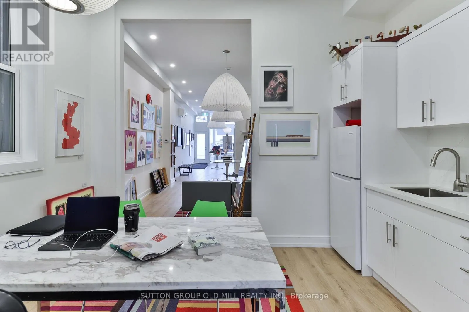 Cross Streets: Dundas / Runnymede. ** Directions: Dundas, just east of Runnymede. Rare opportunity to lease a fully renovated commercial space in a boutique setting in the heart of the Junction's most vibrant corridor. Ideal for businesses looking for a refined space in one of Toronto's most dynamic and evolving neighbourhoods. This bright 700+ sq ft main-level unit features soaring 11-foot ceilings, excellent street visibility with large front-facing windows, and prime signage opportunities to help your business stand out. On TTC bus routes (40 Junction and 71 Runnymede).Inside, you'll find a sleek kitchenette equipped with a brand new fridge and microwave, a new two-piece washroom, and one dedicated parking spot. The basement adds approx. 750 sq ft and is available and open for negotiation, offering additional storage or workspace to suit your needs. Located steps from Dundas Street West, between Baby Point and Summerhill Market to the west and the Junction Triangles restaurants and bars to the east, this space offers unmatched convenience and exposure. The best part of The Junction is its blend of historical charm, a thriving arts scene, and a vibrant community spirit, making it a destination for both professionals and their clients. (id:27476)