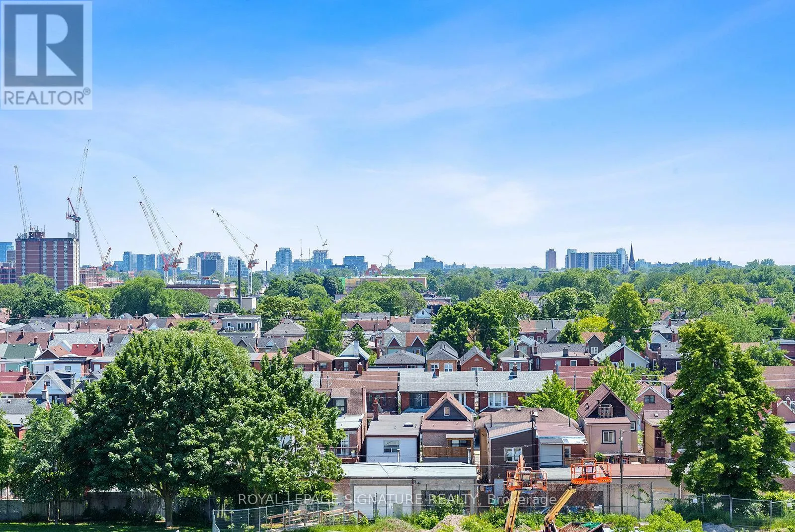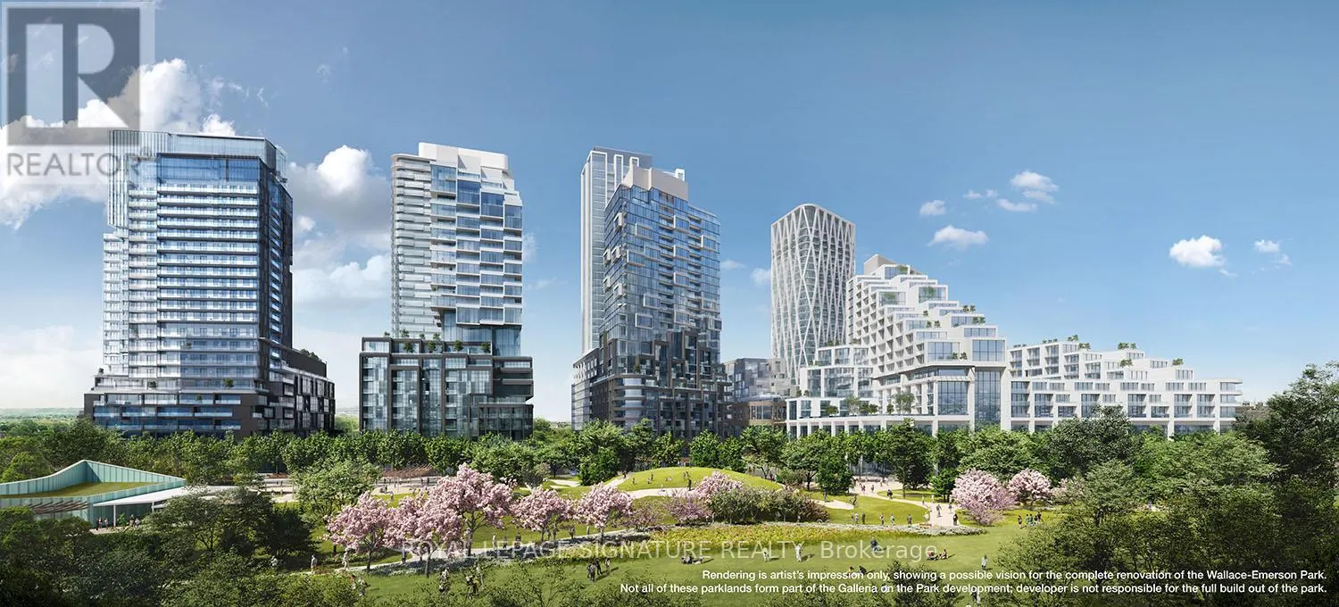 Dufferin / Dupont Available Dec. 1st at Galleria II on the Park. Bright and well laid out 821 sq.ft. split 2 bedroom, 2 bathroom with a 163 sq.ft. open air, sunny terrace with a clear view of the Downtown skyline! 1 Underground parking and 1 locker are included. Free Rogers high-speed Internet! Wood floors throughout with light airy finishes, 10' ceiling height, south view with plenty of natural light. Retail next door: FreshCo, Planet Fitness, Rexall. Next to Wallace Emerson Park with a state of the art Recreation Centre and 8 acre park expansion underway. Be a part of this stunning, brand new community that just keeps getting better over time! Condo amenities: outdoor pool, terrace, fitness zone, games room, social lounge/co-working space, kitchen/dining area, theatre room, 24hr security and visitor parking. Easy access to TTC with only a 5 min bus ride from the Bloor subway line. Foodies will love the Geary Ave culinary corridor only a few minutes walking distance away! (id:27476)