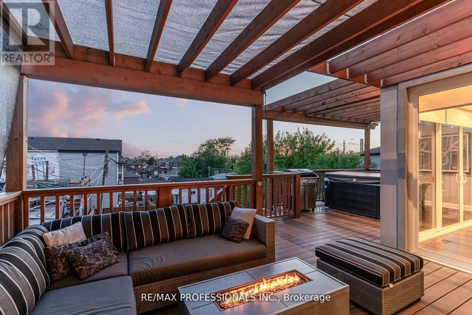 Eglinton Ave W & Calendonia Rd Welcome to this contemporary, light-filled home offering nearly 4,000 sq. ft. of beautifully finished living space. Designed with modern living in mind, it features 4+2 bedrooms and 4 full bathrooms, providing comfort, function, and flexibility for families, professionals, and multi-generational needs. The main floor showcases a bright open-concept layout with 9-ft ceilings, hardwood floors, and a stunning chef's kitchen anchored by an oversized island - perfect for gatherings and everyday living. Double patio doors extend the living and dining areas onto a spacious composite deck, creating a seamless indoor-outdoor flow. The backyard is a private retreat with multiple walkouts, a dedicated hot tub zone, separate seating area, five roll-down privacy screens, and a unique ceiling irrigation system beneath the deck that waters the landscaped garden. A main-floor office (or potential sixth bedroom) sits beside a full bathroom, ideal for guests or extended family. Upstairs, the oversized primary suite offers a spa-like ensuite and custom walk-through closet. All upstairs bedrooms feature walk-in closets and large windows, providing abundant natural light and excellent storage. The walk-out lower level features a fully self-contained 2-bedroom suite with its own entrance, patio, laundry, and lock-off zones - perfect for extended family or a high-demand rental suite ($2500/mth potential) that can significantly offset monthly mortgage costs. Additional highlights include CAT5E wiring, 200-amp service, Nest thermostat, CCTV, app-controlled garage opener, built-in surround sound, backwater valve, private drive, and a single-car garage with storage. Located steps from the new Eglinton LRT and minutes to downtown, the airport, Yorkdale, The Junction, and Stockyards, this home offers exceptional space, smart upgrades, and valuable income potential. (id:27476)